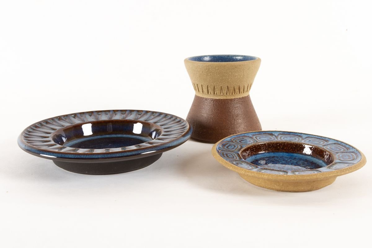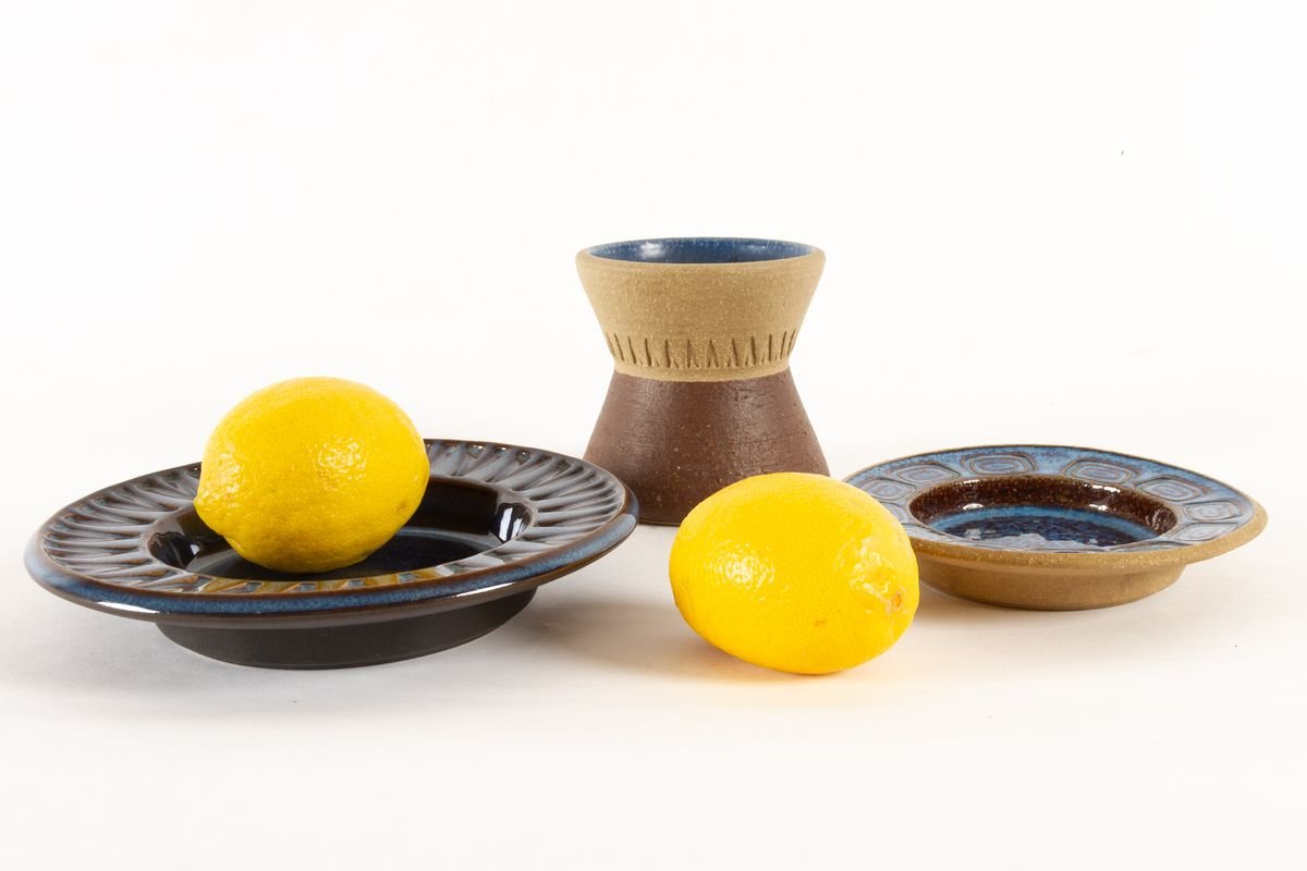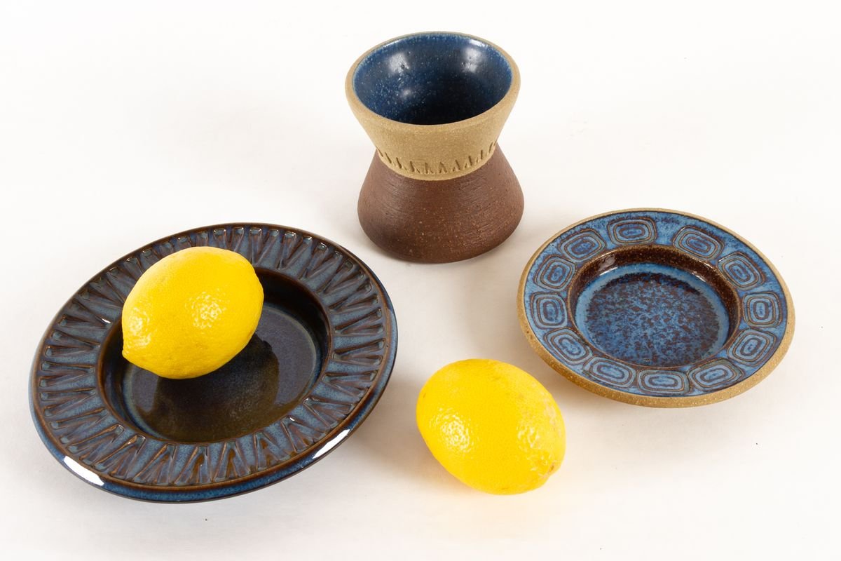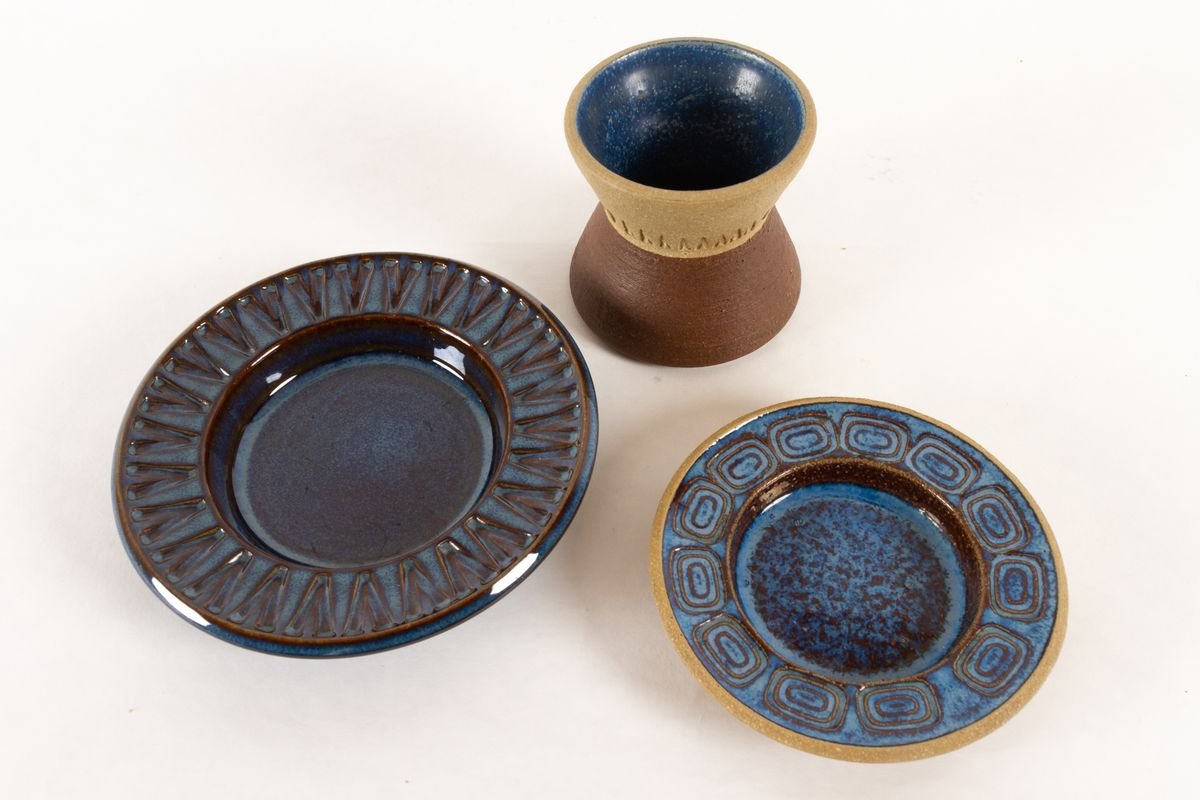 Ceniceros de cerámica esmaltada en azul de Einar Johansen para Søholm, años 60. Juego de 3