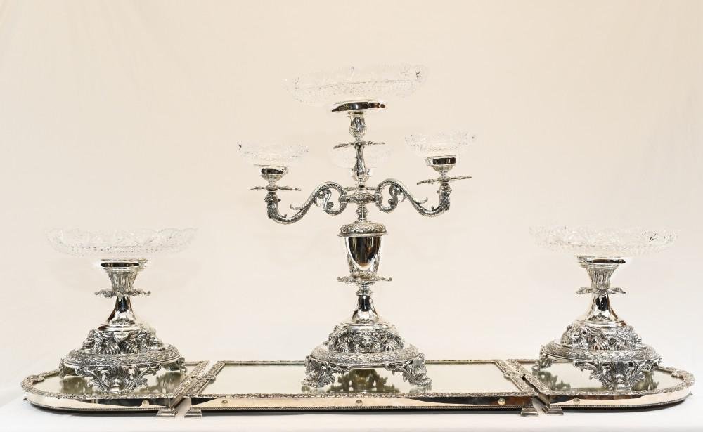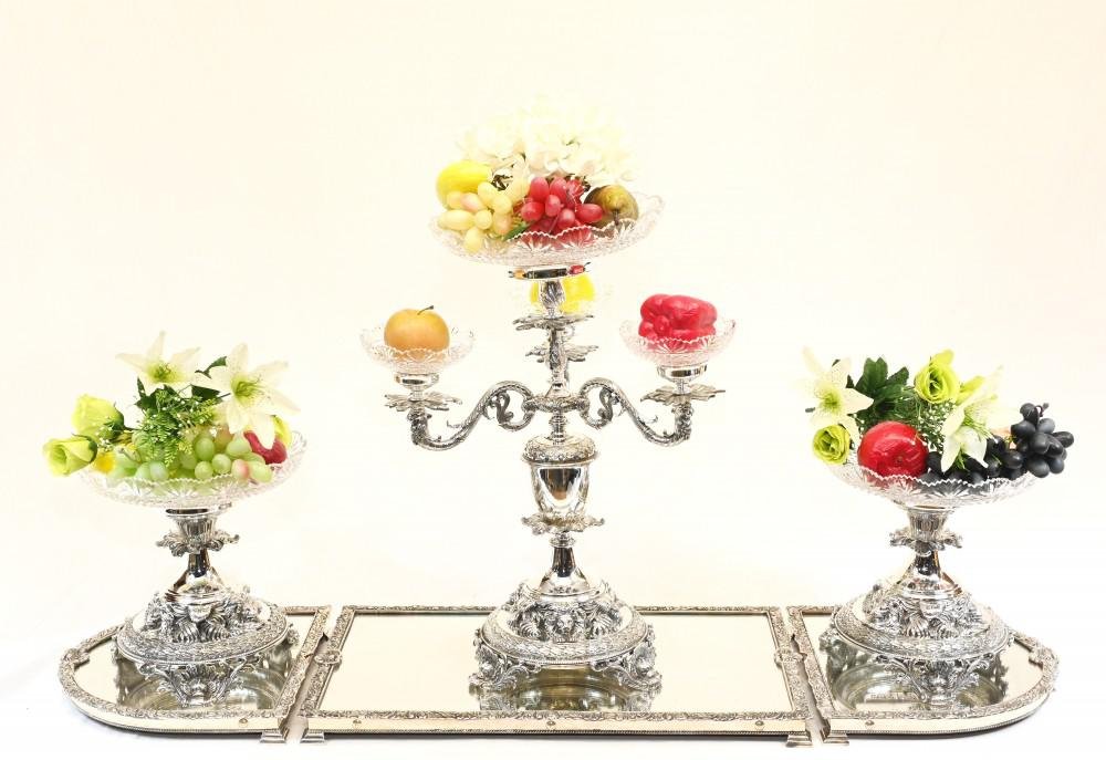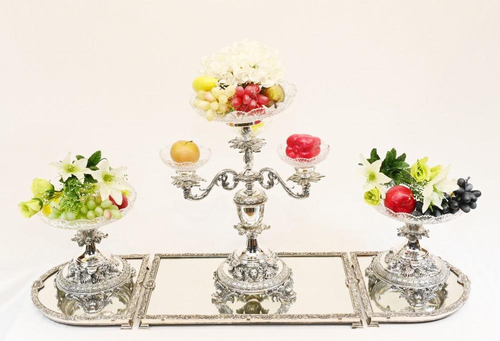 Centro de mesa bañado en plata de vidrio de Sheffield