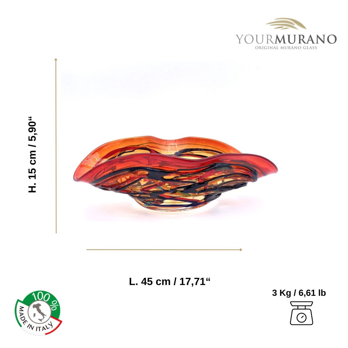 Centro de mesa de cristal de Murano rojo de YourMurano