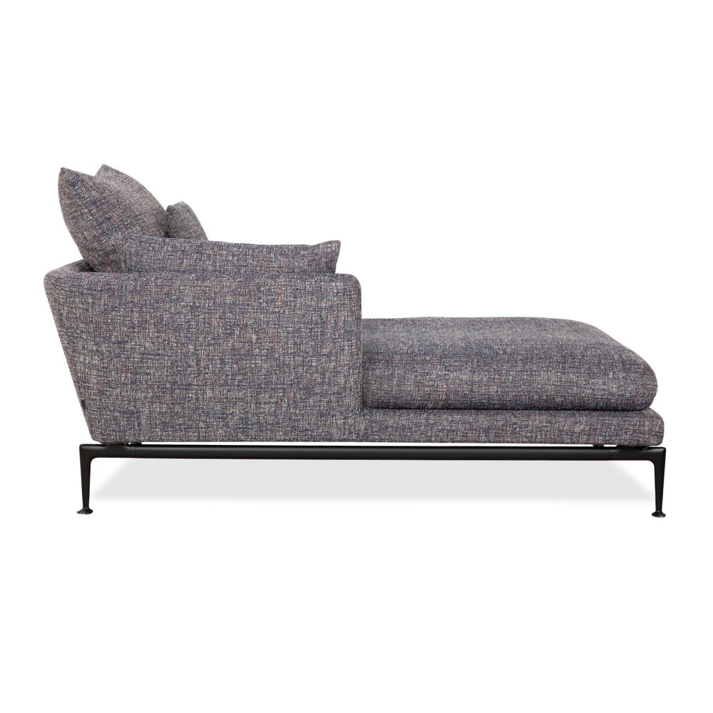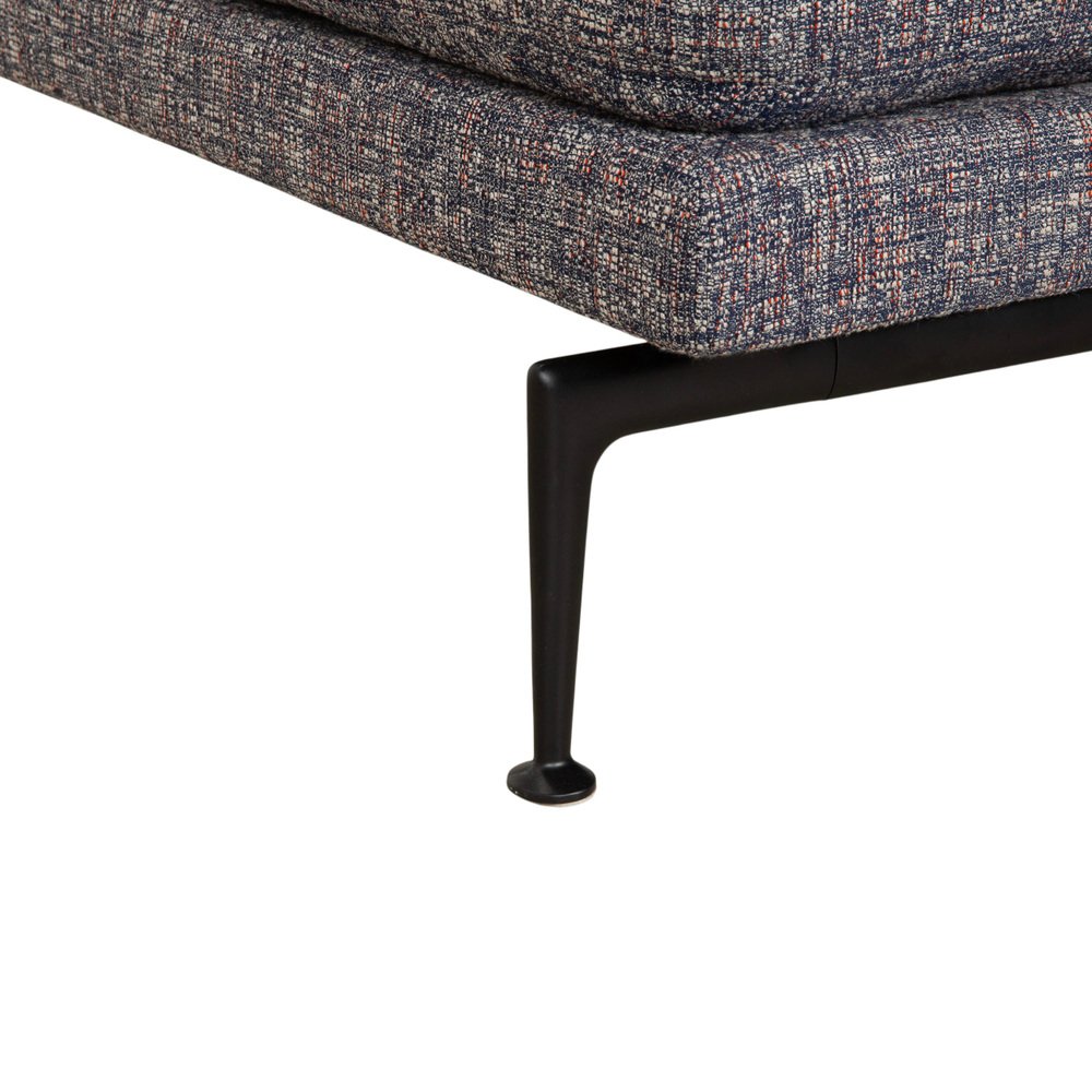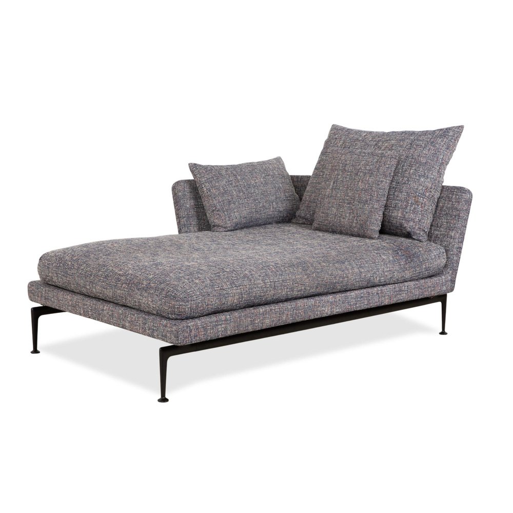 Vitra Suita Daybed: Weightless Elegance for Relaxation. with this chaise longue, you bring a masterpiece of modern design into your home. The Suita family, designed by star architect Antonio Citterio, embodies a technical lightness that combines industrial design with inviting elegance. The chaise longue is upholstered in a high-quality gray fabric whose mottled weave gives it a vibrant and deep feel – far removed from boring, uniform gray. The most striking feature is the delicate base: The slender, black metal legs are shaped so that the generously upholstered body appears to float above the floor. This "bridge" effect ensures that the piece of furniture, despite its size, doesn't overwhelm the room. The comfort is typical of Vitra: The upholstery is firm enough for healthy posture, yet soft enough for hours of relaxation. Loose back cushions in various sizes allow you to find your perfect reclining position – whether upright for reading or lying flat for a nap.
