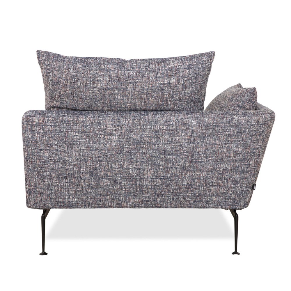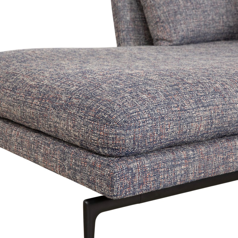 Diván Vitra Suita: elegancia ligera para relajarse. Con esta chaise longue, incorporará a su hogar una obra maestra del diseño moderno. La familia Suita, diseñada por el famoso arquitecto Antonio Citterio, encarna una ligereza técnica que combina el diseño industrial con una elegancia acogedora. La chaise longue está tapizada con un tejido gris de alta calidad cuyo tejido moteado le da un aspecto vibrante y profundo, muy alejado del aburrido y uniforme gris. La característica más llamativa es la delicada base: las esbeltas patas de metal negro están diseñadas de tal manera que el cuerpo generosamente tapizado parece flotar sobre el suelo. Este efecto «puente» garantiza que el mueble, a pesar de su tamaño, no abrume la habitación. La comodidad es típica de Vitra: el tapizado es lo suficientemente firme como para mantener una postura saludable, pero también lo suficientemente suave como para pasar horas de relax. Los cojines sueltos para el respaldo, disponibles en varios tamaños, permiten encontrar la posición reclinada perfecta, ya sea sentado para leer o tumbado para echar una siesta.