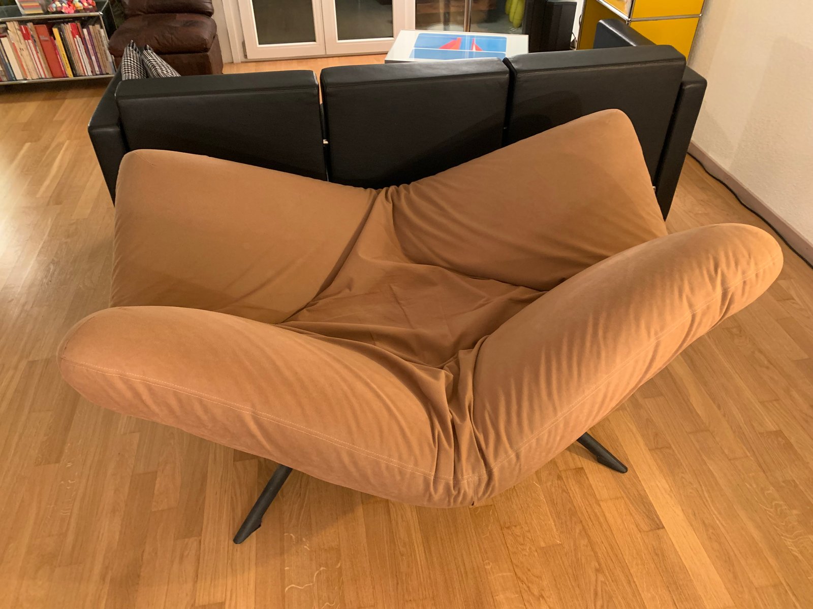 In 1951, Arflex unveiled its first piece, Zanuso’s Lady Armchair, which won the gold medal at Milan’s IX Triennale and helped catapult Arflex to international acclaim. Other successful designs by Zanuso were introduced over the years, such as the Sleep-o-matic Sofa (1951), the Martingala Armchair (1952), and the Fourline Armchair (1964).