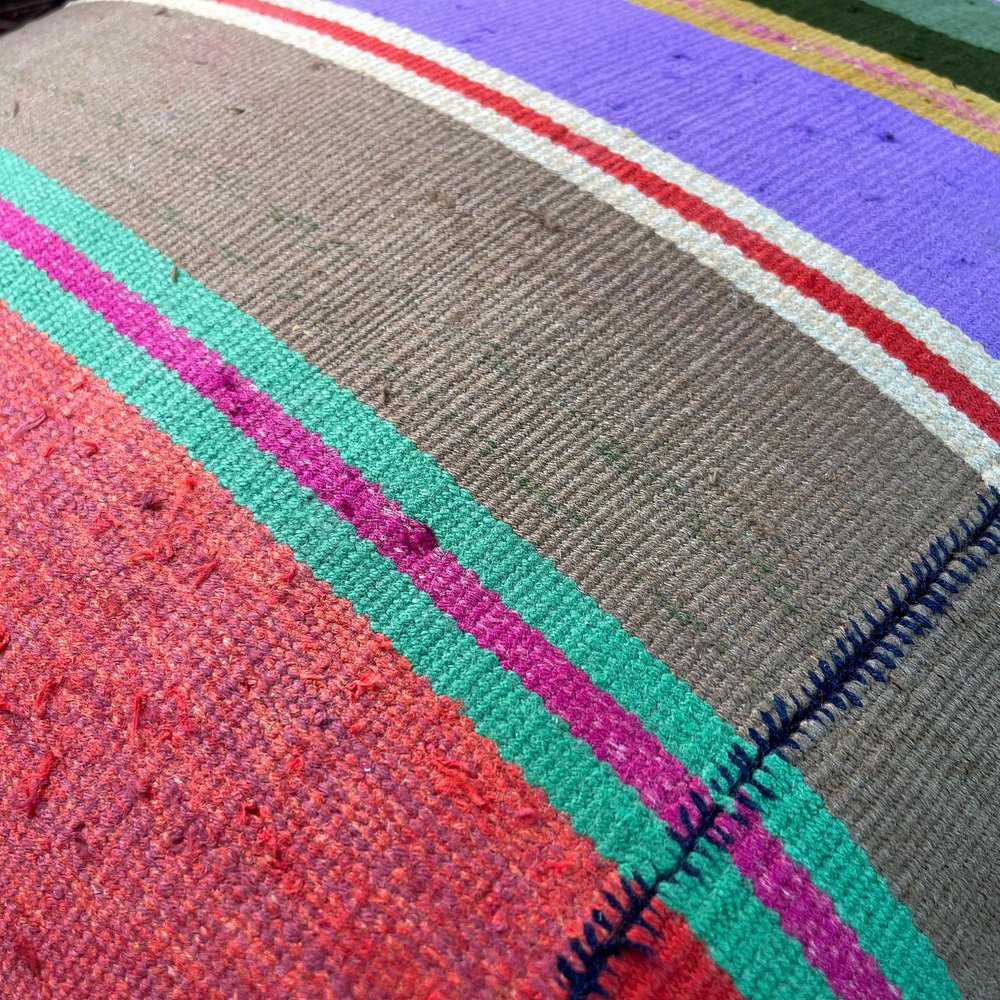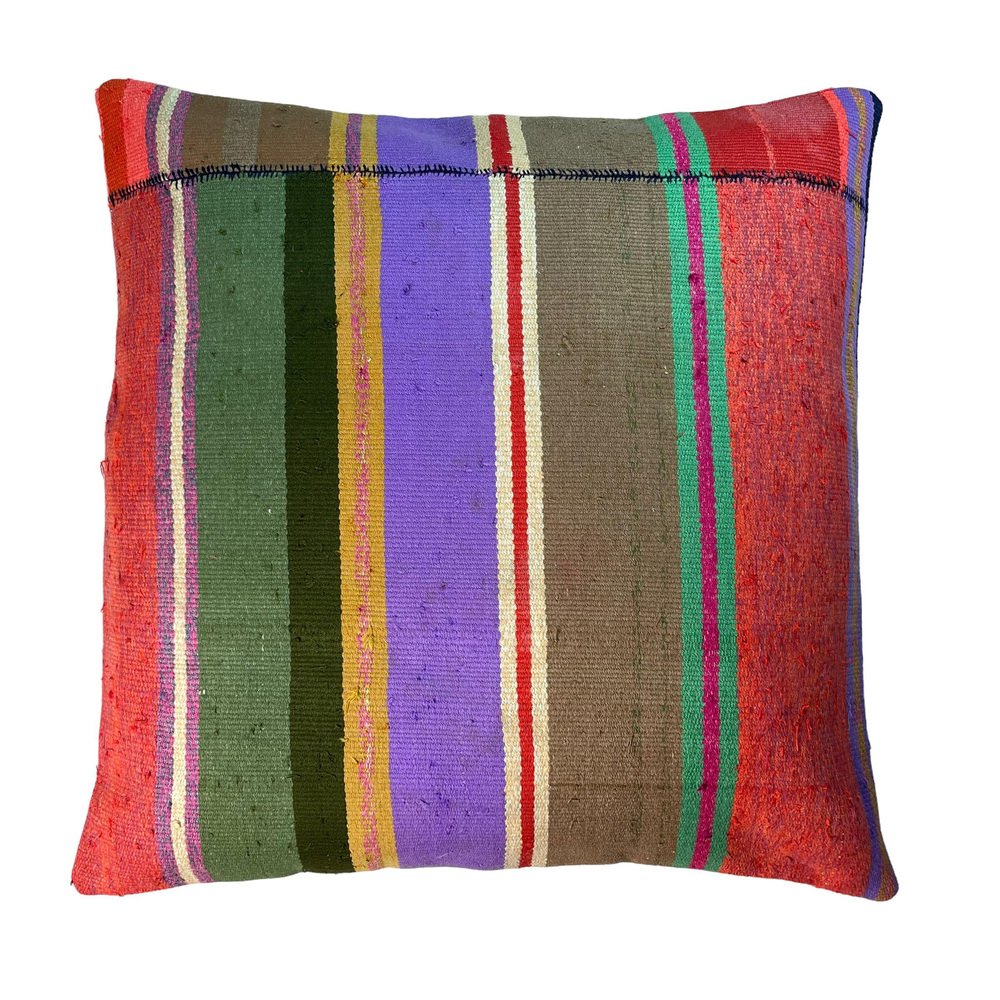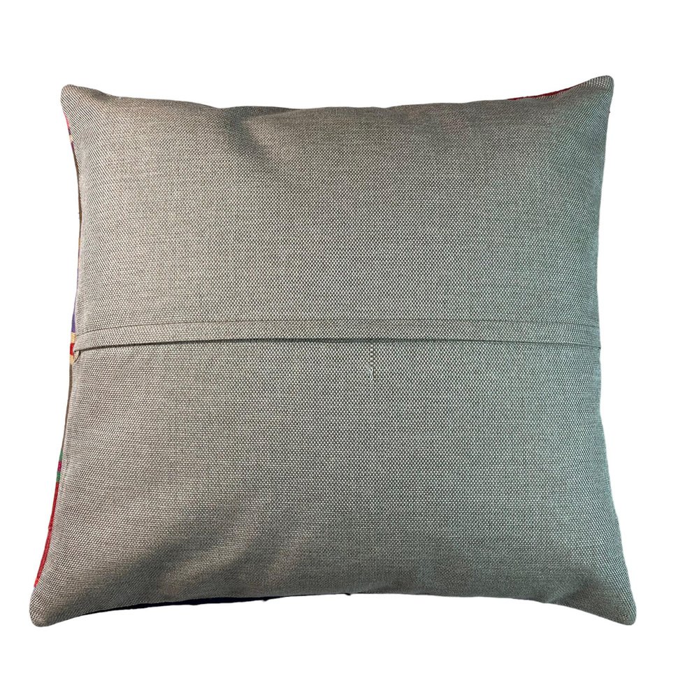 Introducing our handmade Kilim Pillow Cover, measuring 60 x 60 cm, crafted from vintage kilims from the 1970s in Turkey. This unique cushion cover is made from high-quality wool and features a heavy-duty zip with cotton fabric backing. The Kilim Pillow Cover is expertly fashioned from hand-knotted Turkish kilim rugs, colored with vegetable dyes. Due to the handmade nature of this product, slight variations may occur. - Vintage from the 1970s in Turkey - Handmade from high-quality wool - Cotton fabric backing with a heavy-duty zipper - Measures 60 x 60 cm - Fashioned from hand-knotted Turkish kilim rugs This Kilim Pillow Cover is not only a functional home decor piece, but it is also a unique work of art. The vintage nature of the kilim adds an authentic, bohemian touch to any living space. The handmade construction and high-quality materials ensure that this cushion cover is long-lasting and durable for years to come. This Kilim Pillow Cover is perfect for adding a touch of vintage bohemian style to your home decor. It can be used as an accent pillow on a bed, sofa, or meditation bench. The heavy-duty zip allows for easy insertion and removal of a pillow insert. We take pride in the construction and quality of our Kilim Pillow Cover. Each piece is handmade with high-quality wool and expertly fashioned from hand-knotted Turkish kilim rugs. We ensure that our products are ethically produced without child labor by supporting the Care & Fair initiative. Add a unique, vintage touch to your living space with our Kilim Pillow Cover. Shop now to brighten up your home with this one-of-a-kind cushion cover.
