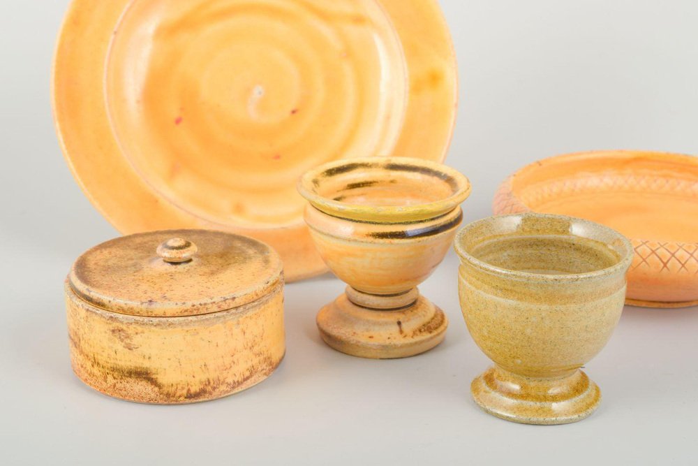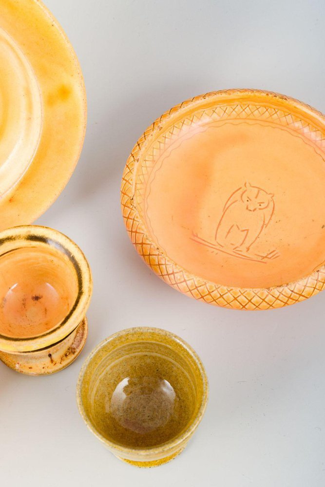 Colección de cerámica Vitage de esmalte de uranio de Kähler, años 40. Juego de 5