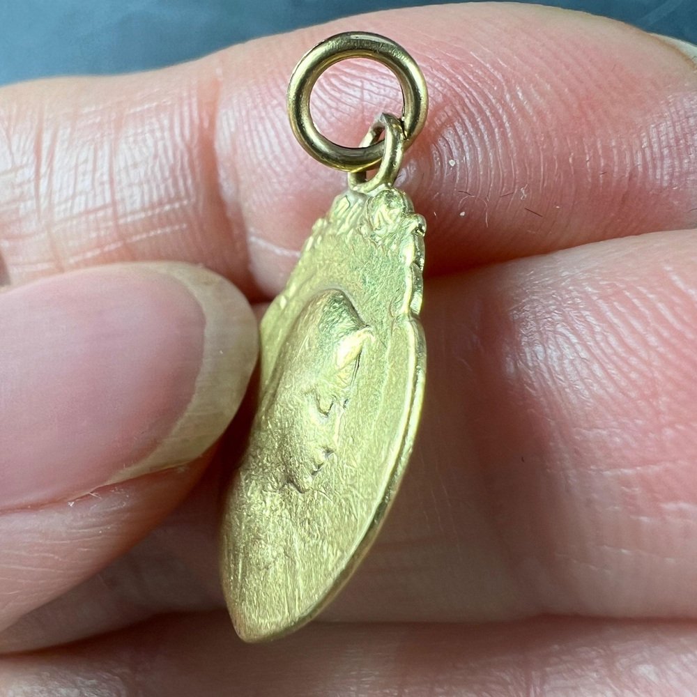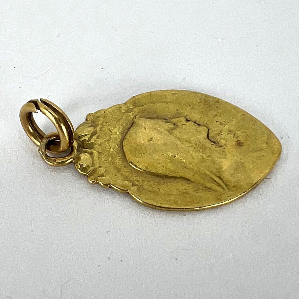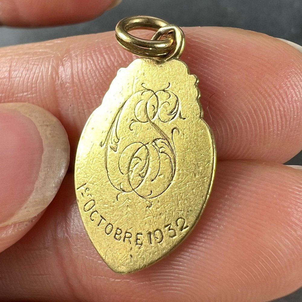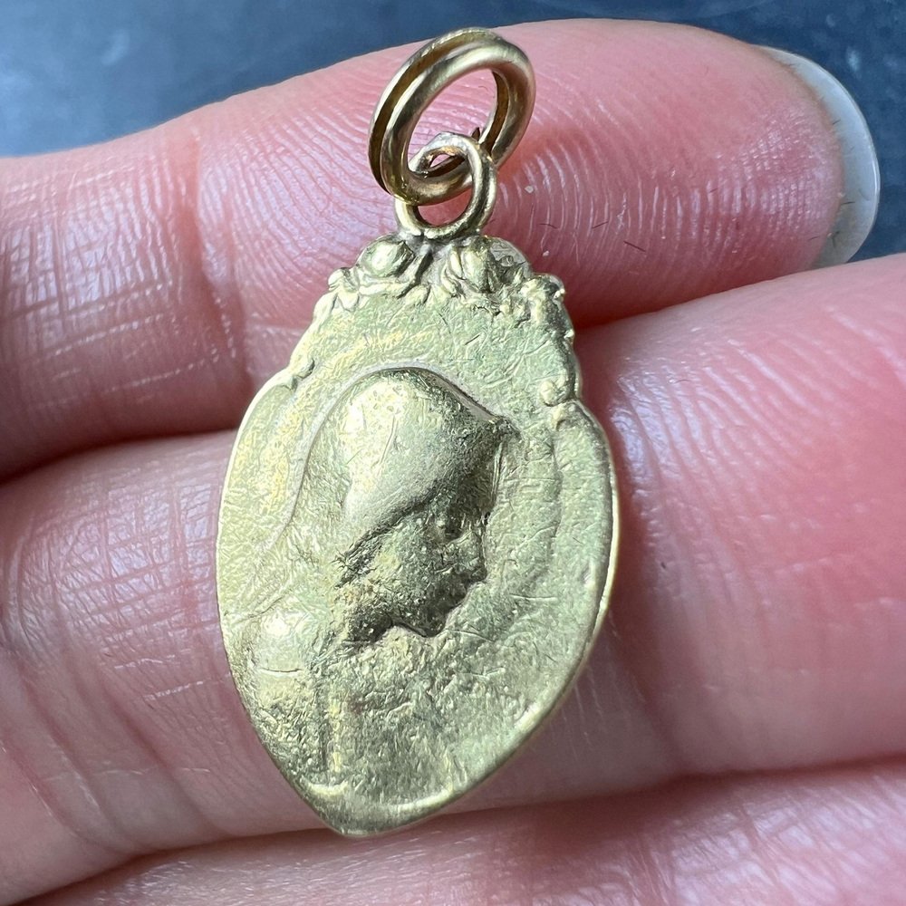 Colgante con medalla religiosa de la Virgen María francesa de oro amarillo de 18 kt, años 30