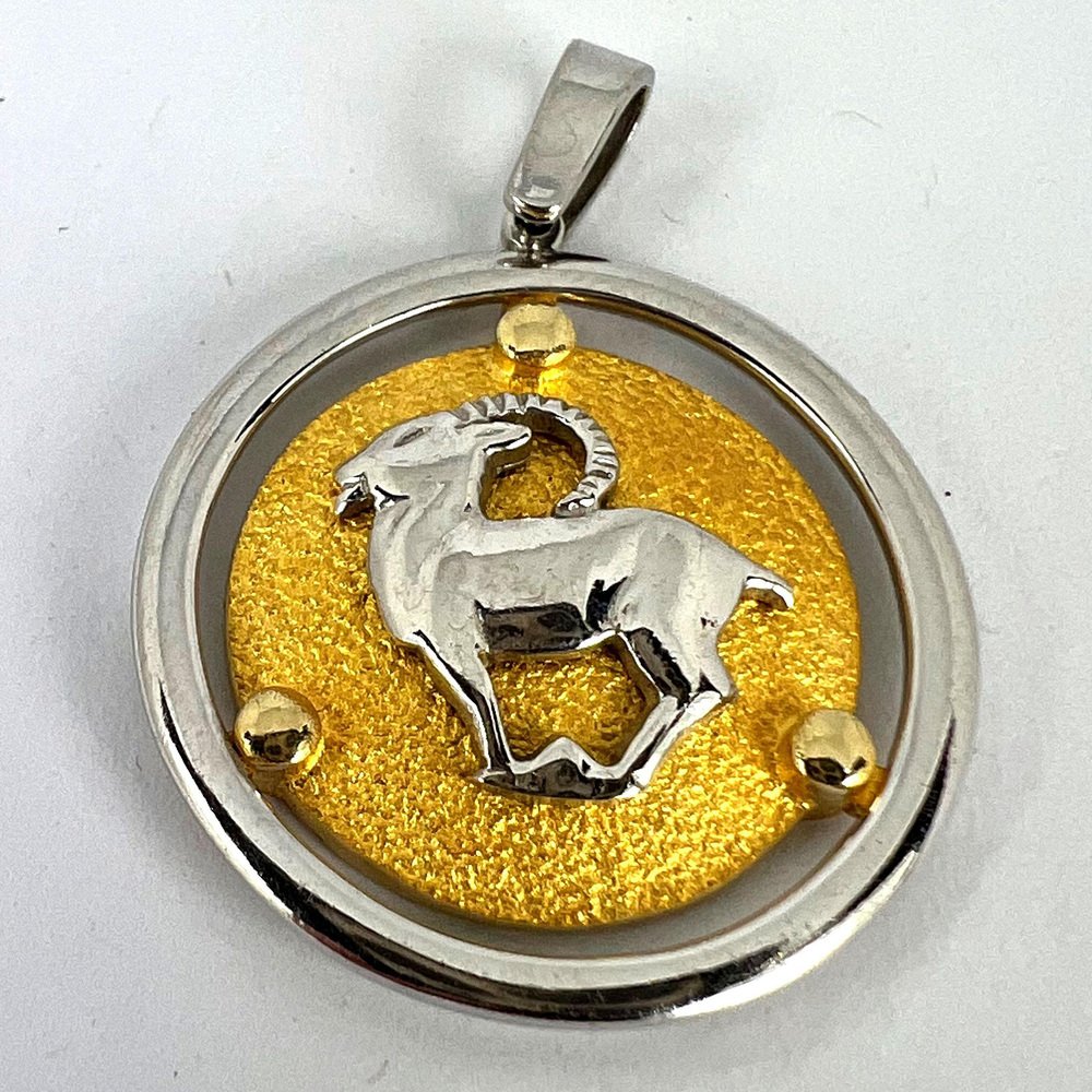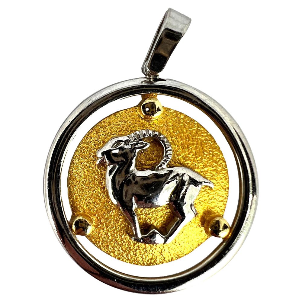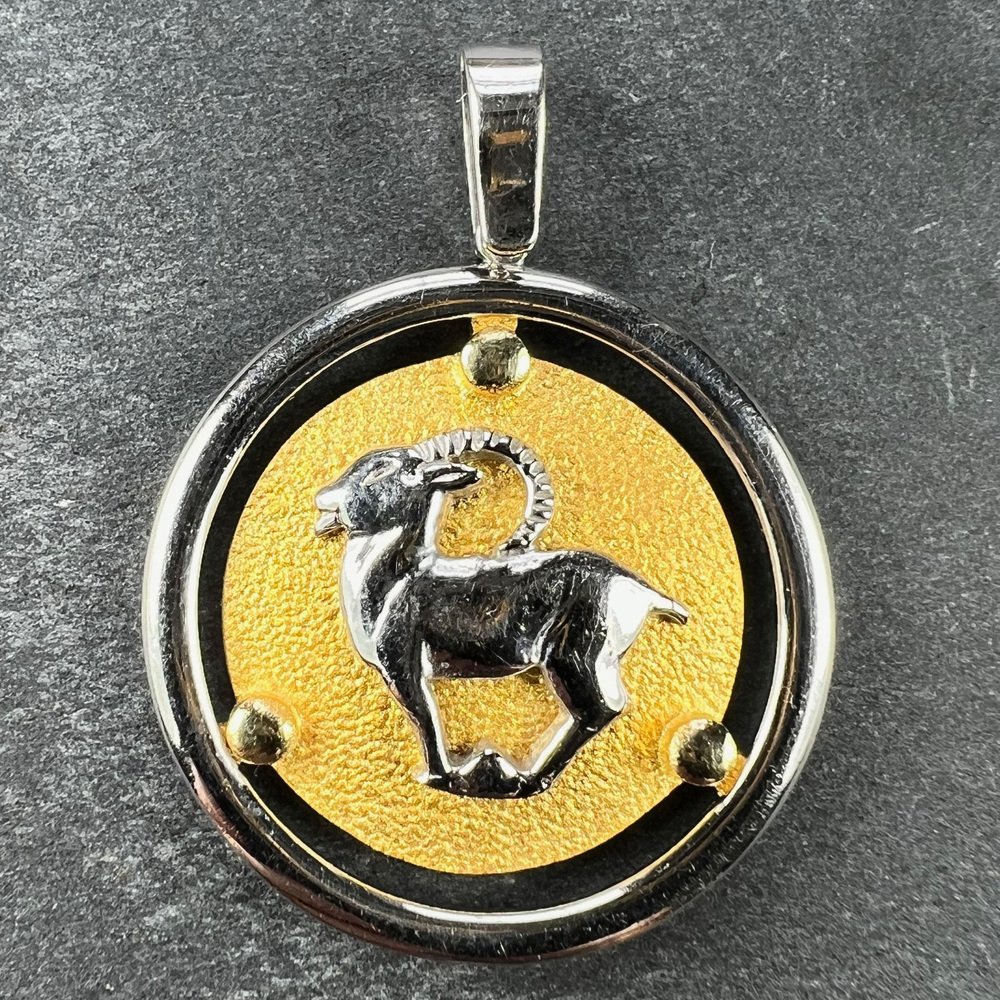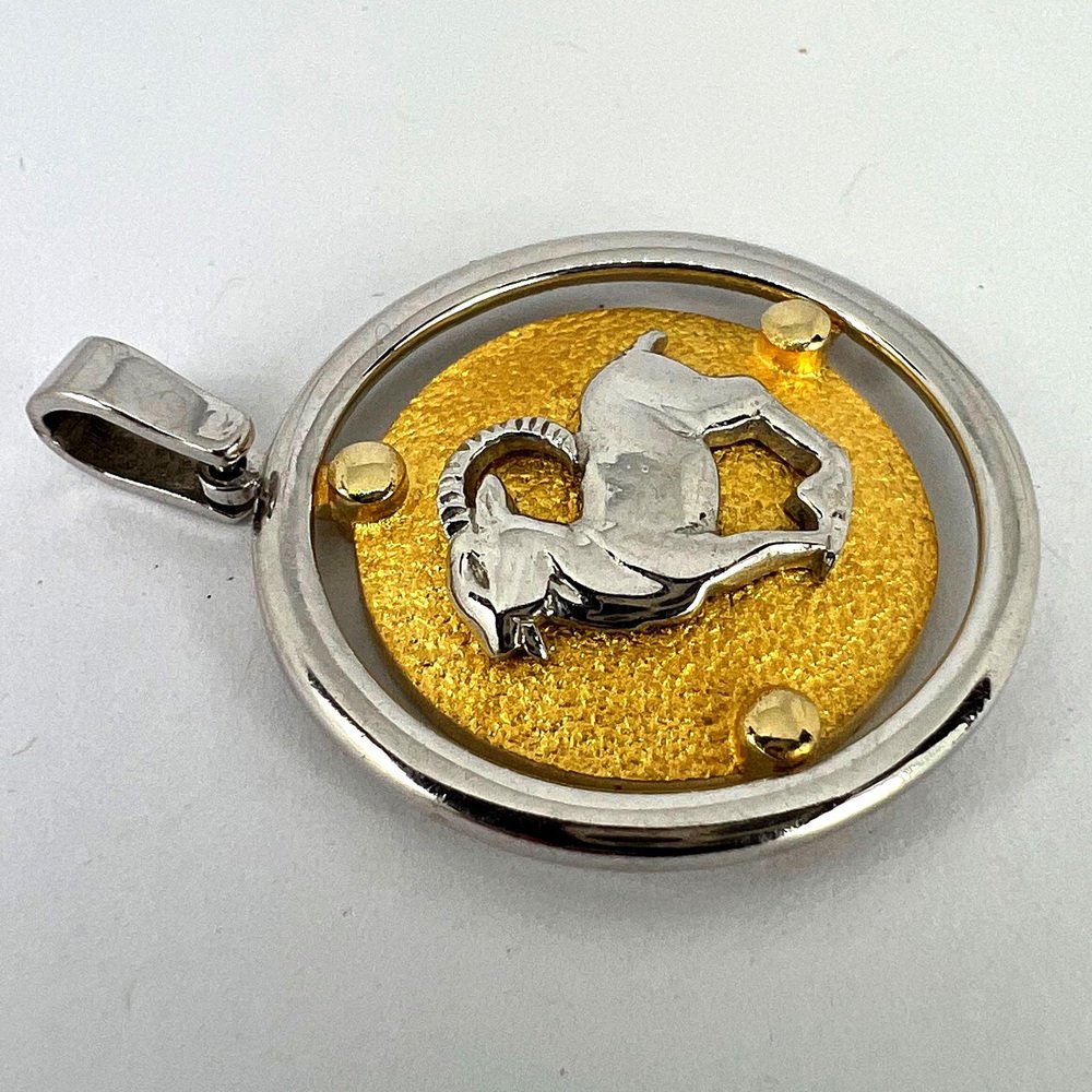 Colgante del zodiaco Capricornio en oro blanco amarillo de 14 k de Kosun, años 80