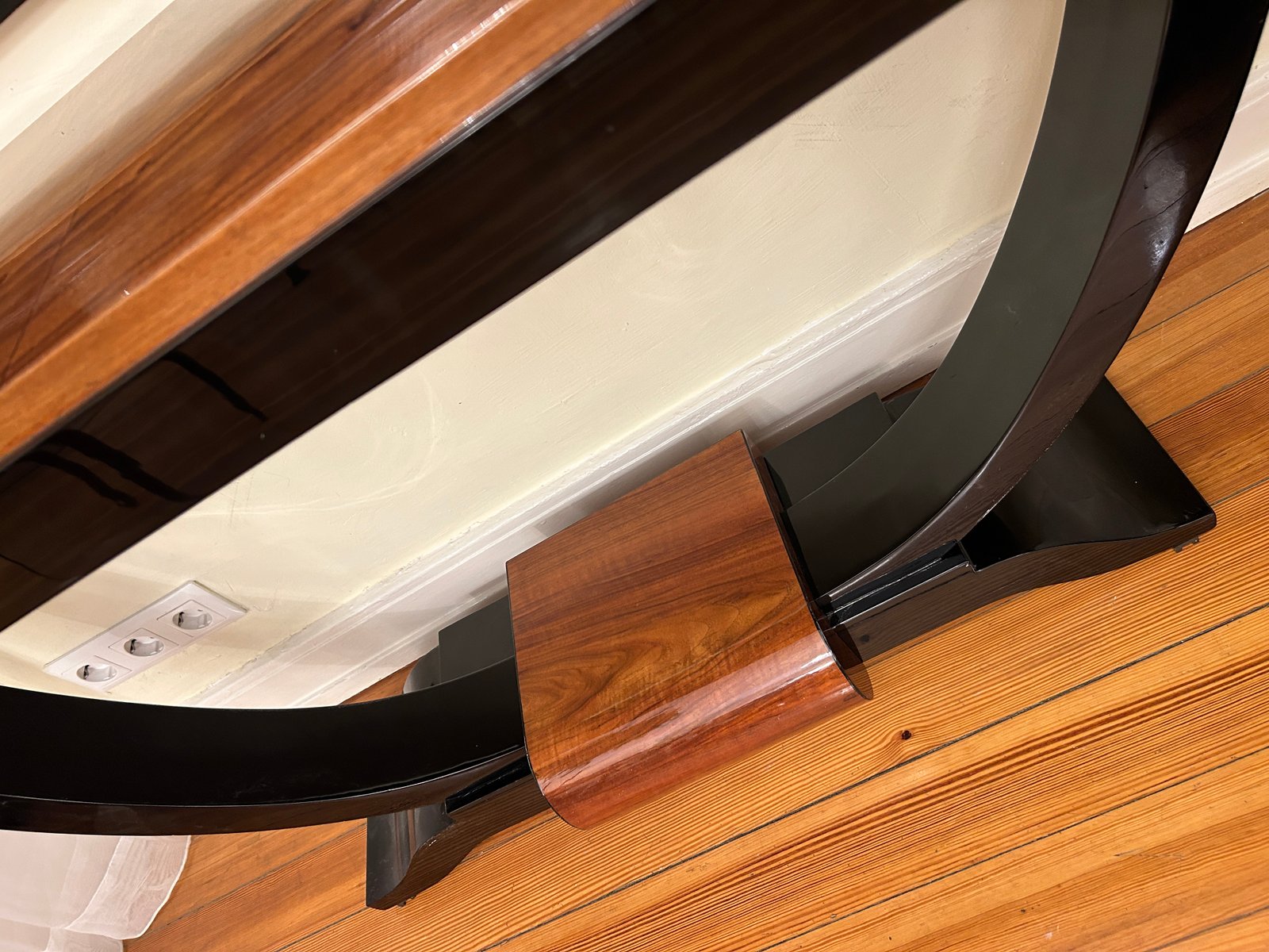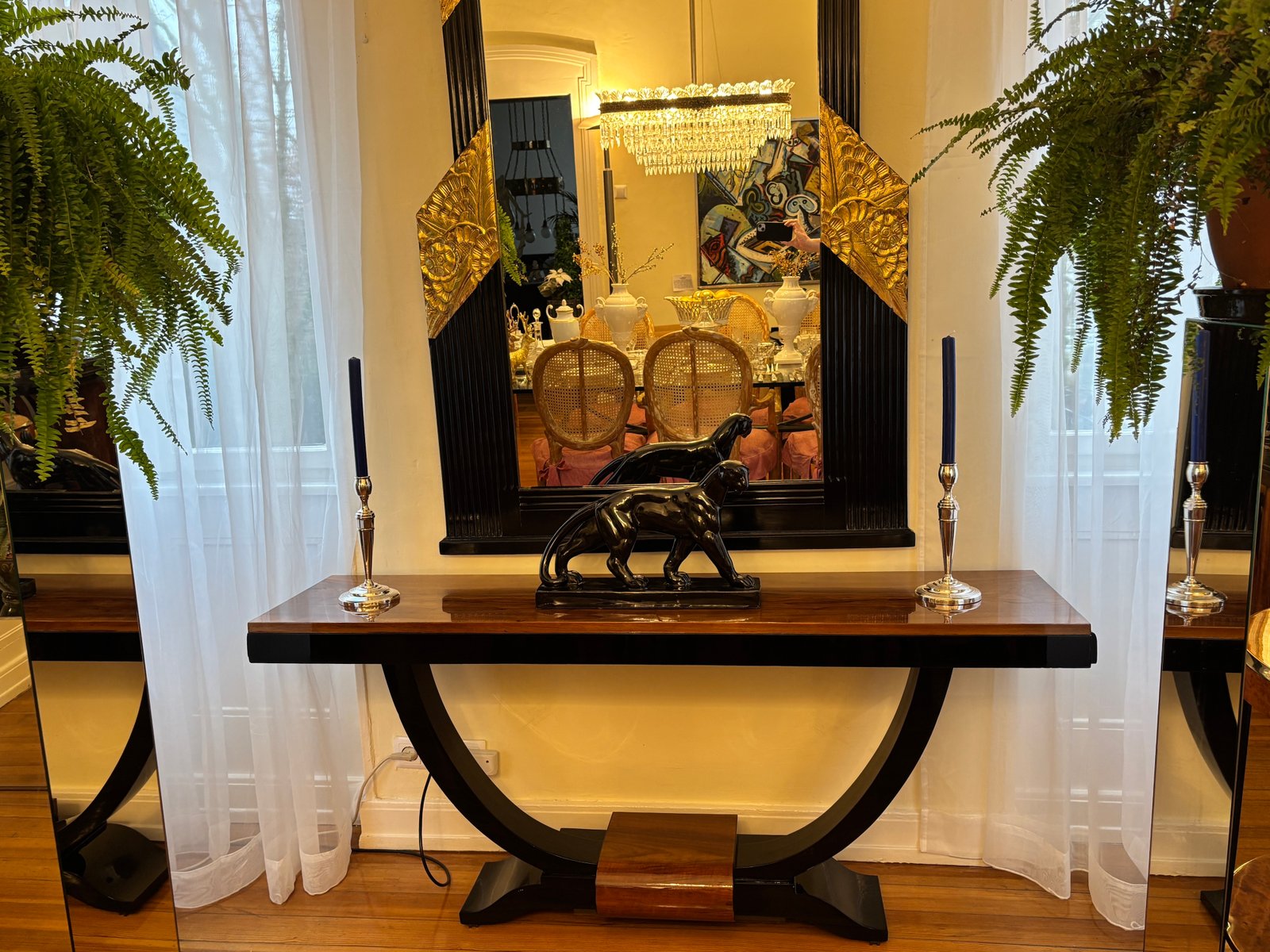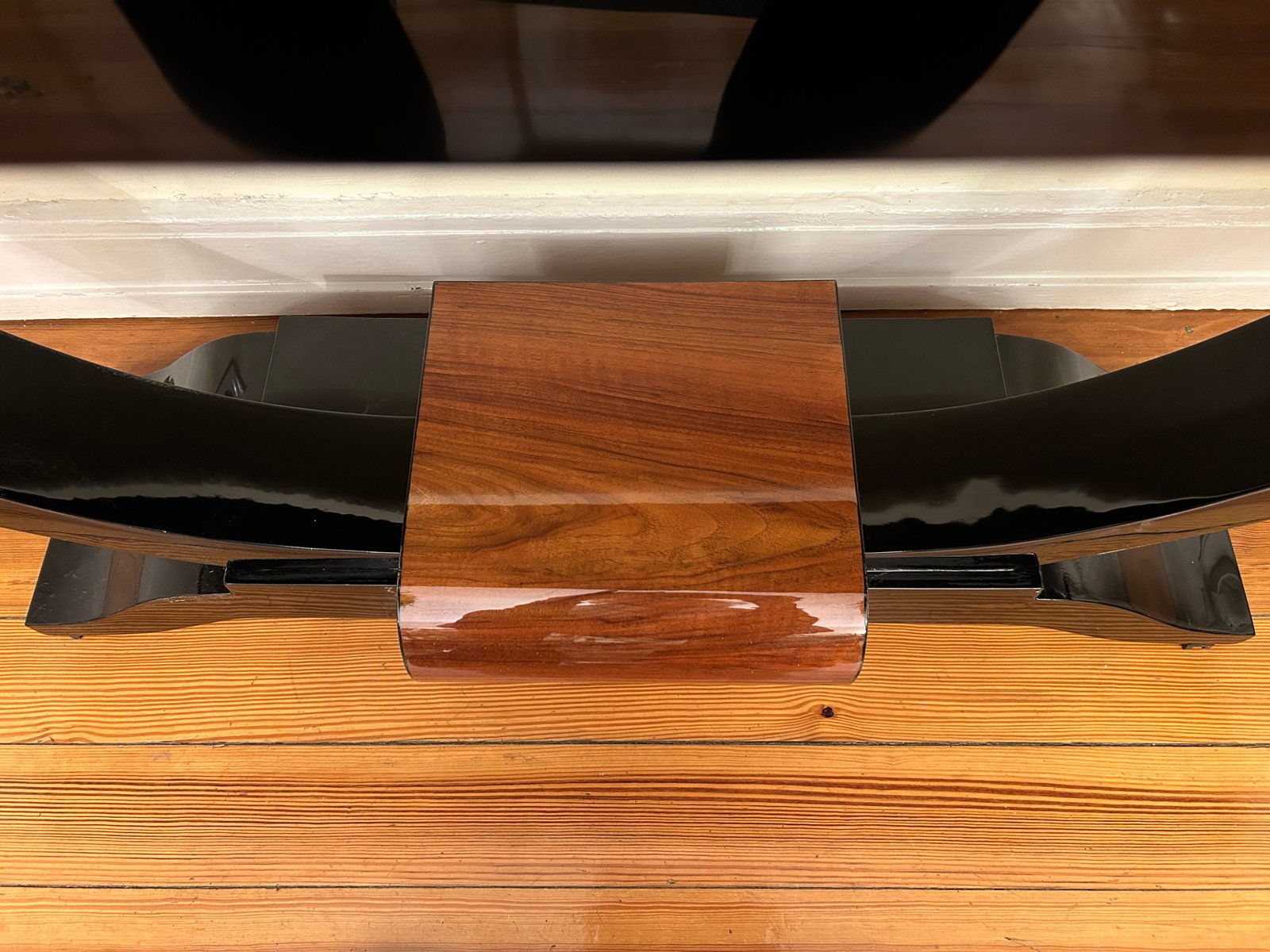 Consola Art Déco de chapa de nogal y laca negra brillante, años 20