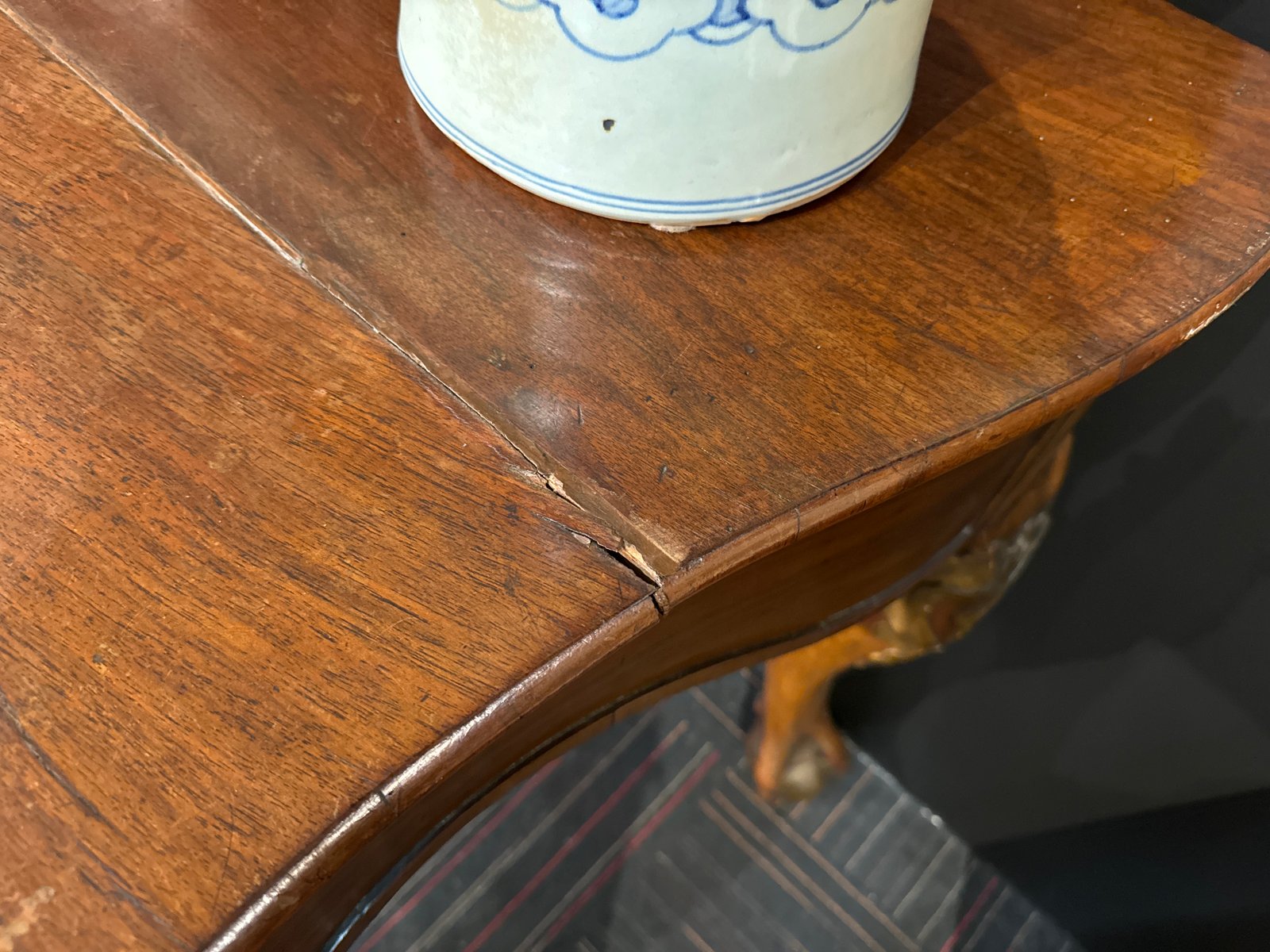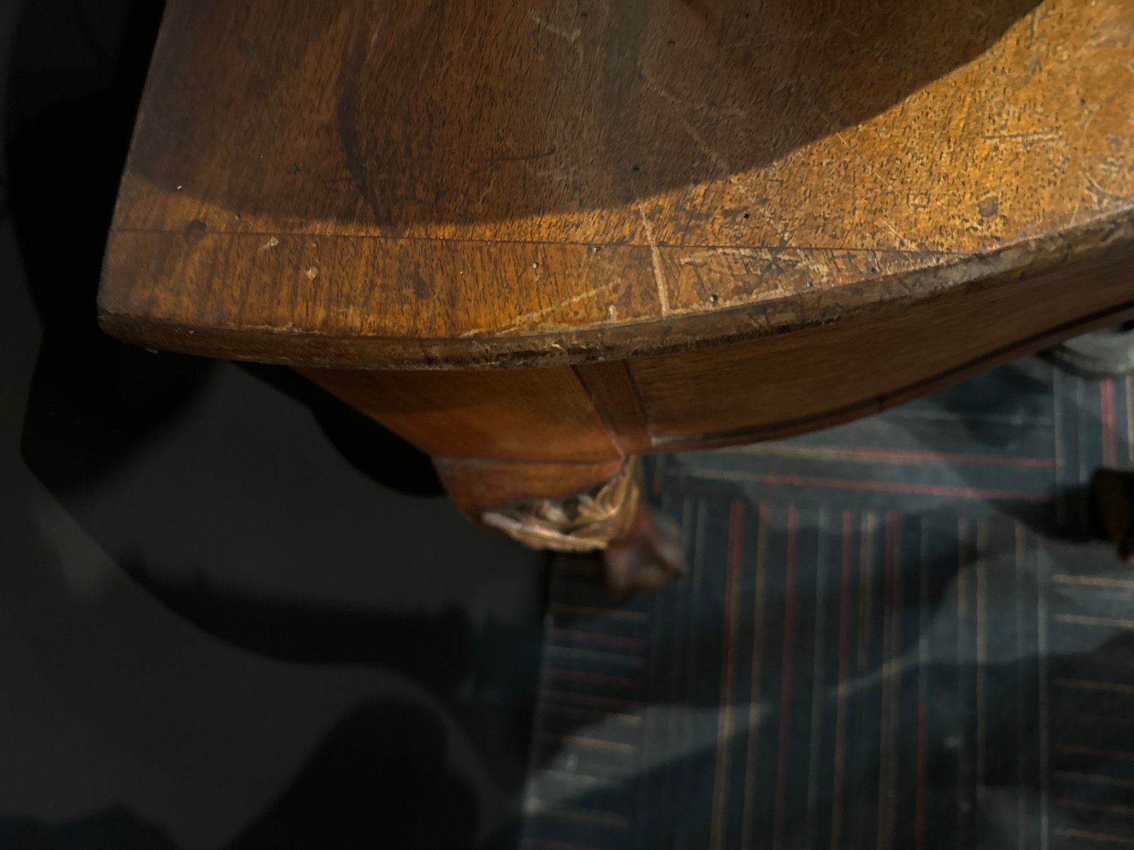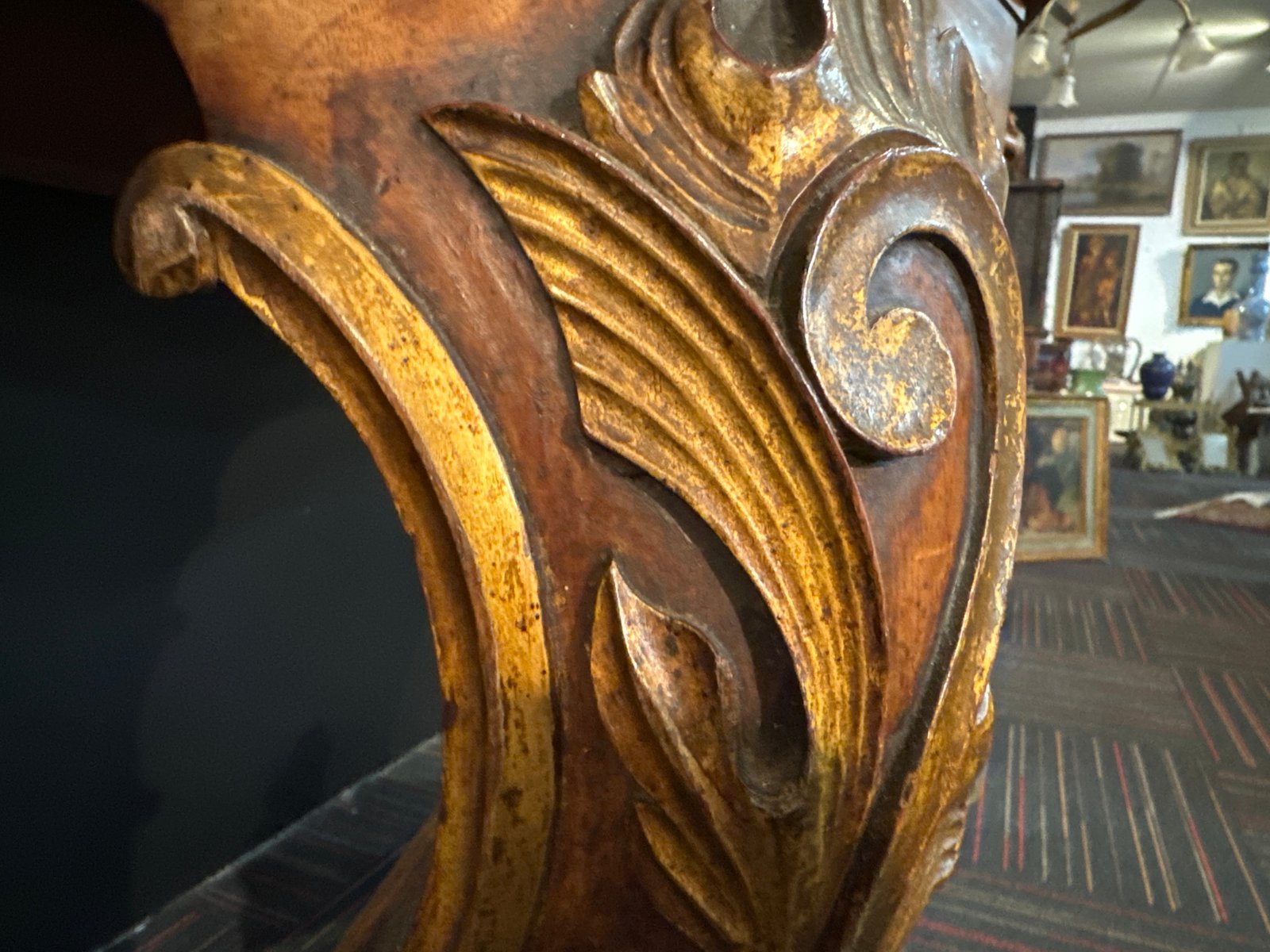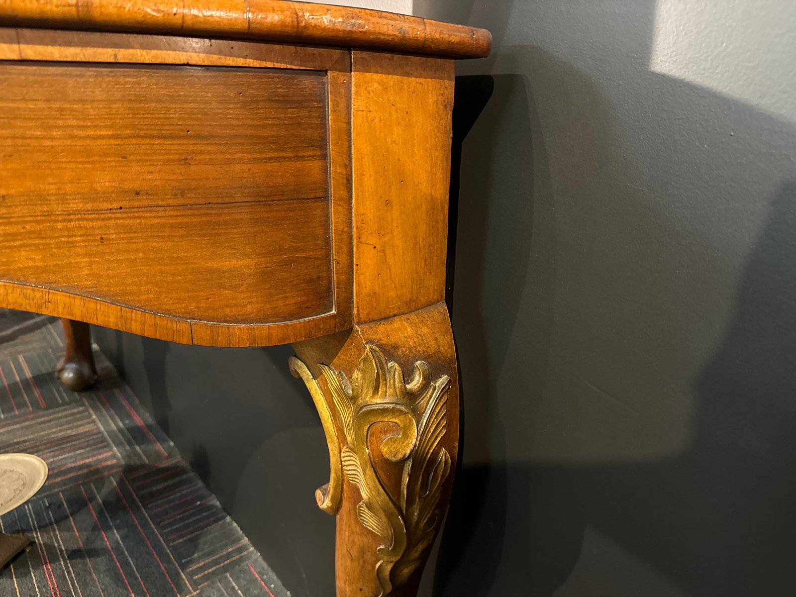 Consola inglesa grande del siglo XIX con patas esféricas rodeadas de garras y patas talladas y doradas