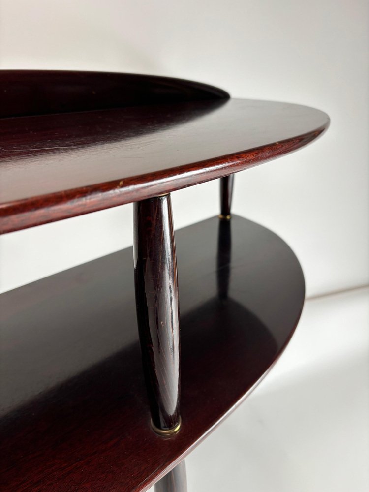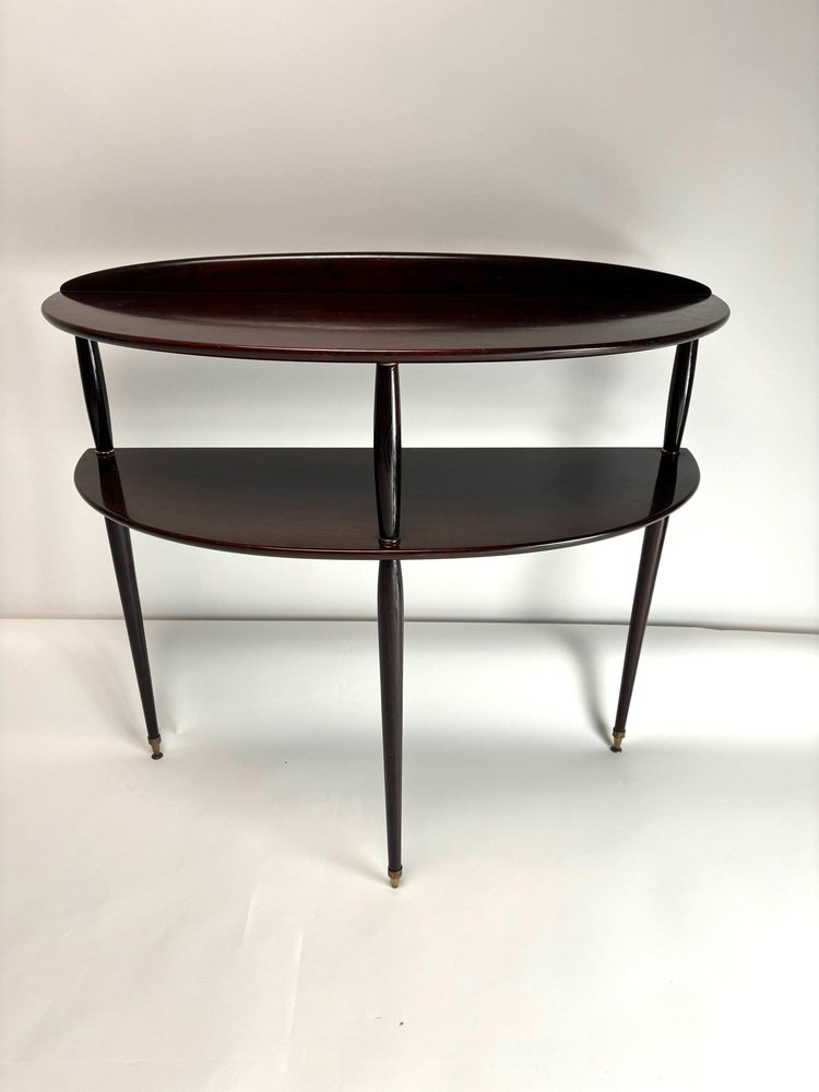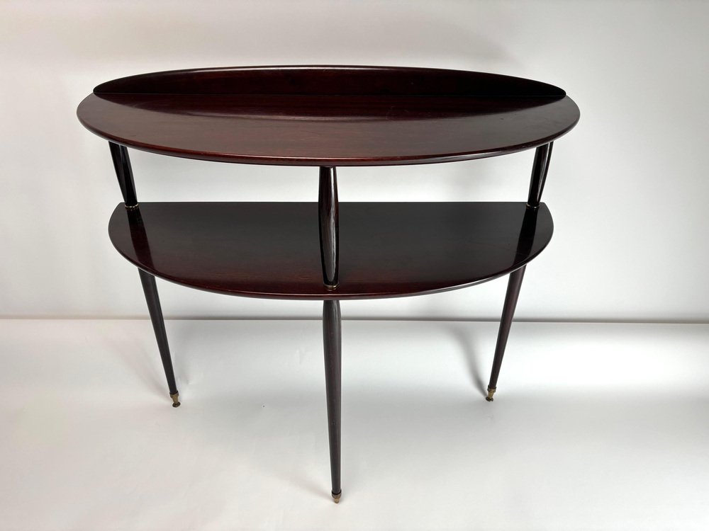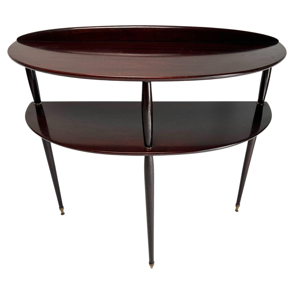 Consola italiana Mid-Century moderna de madera y latón, años 50