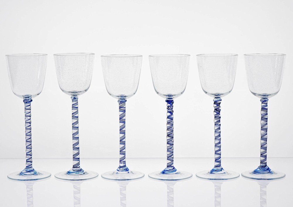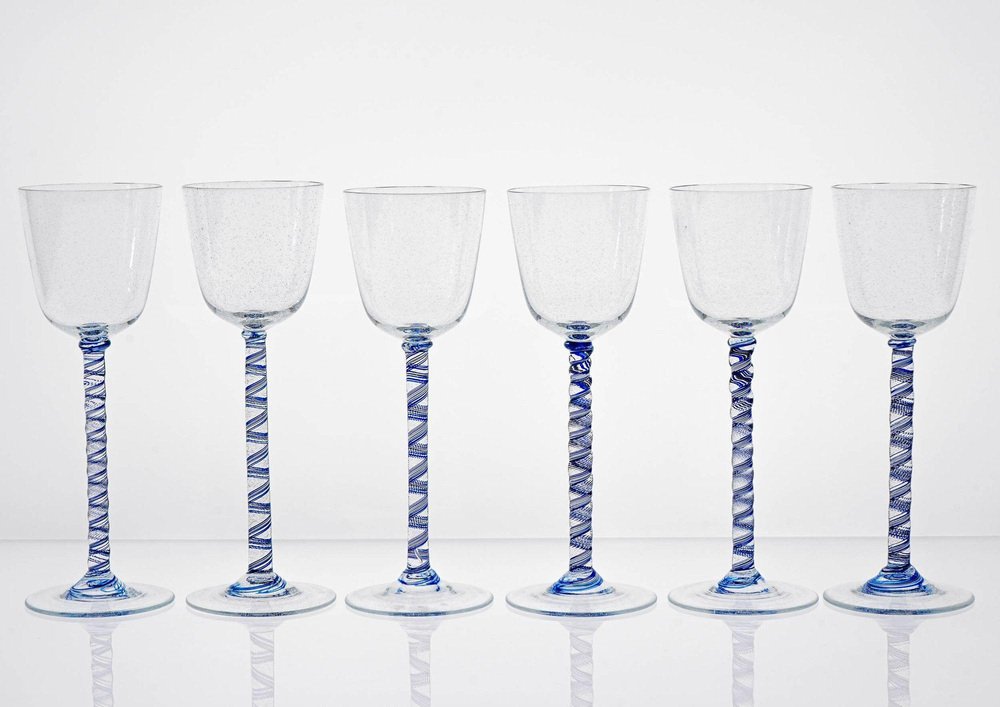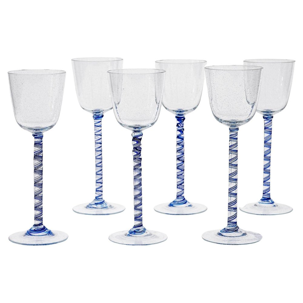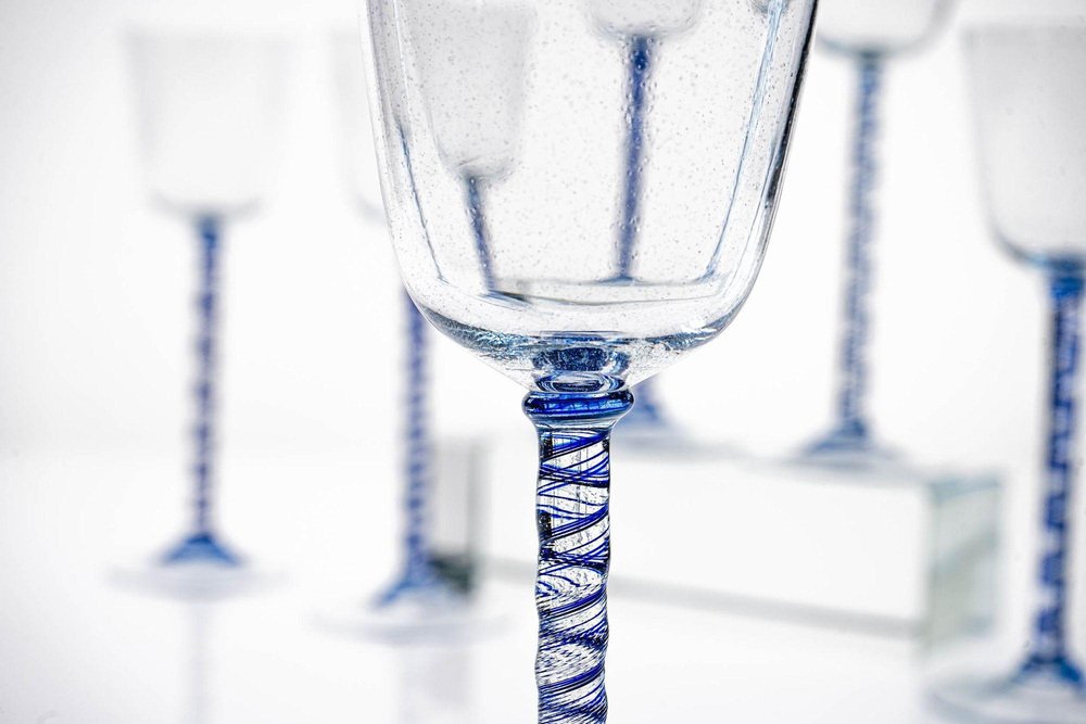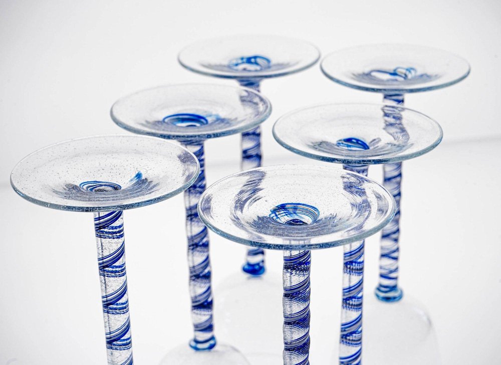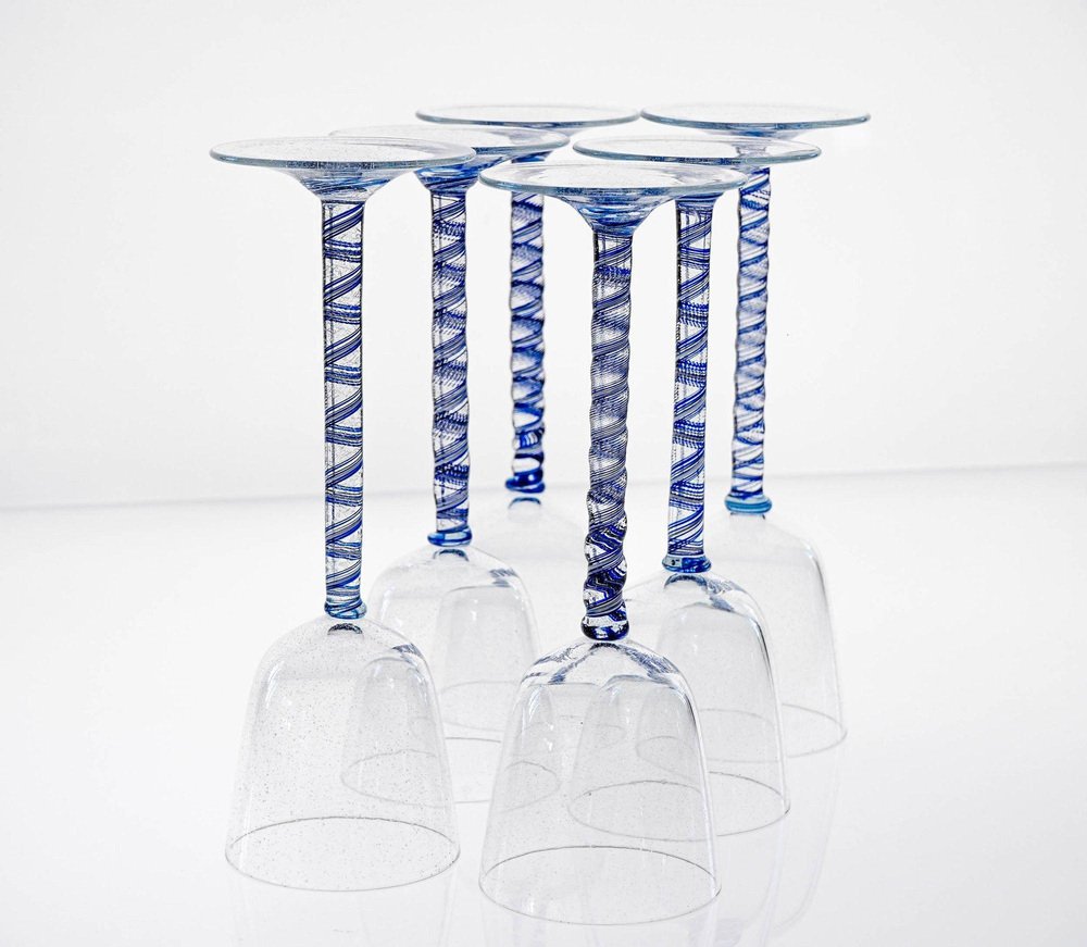 Cristal de Murano Cobalto y Pulegoso con tallos retorcidos de Cenedese, años 50. Juego de 6