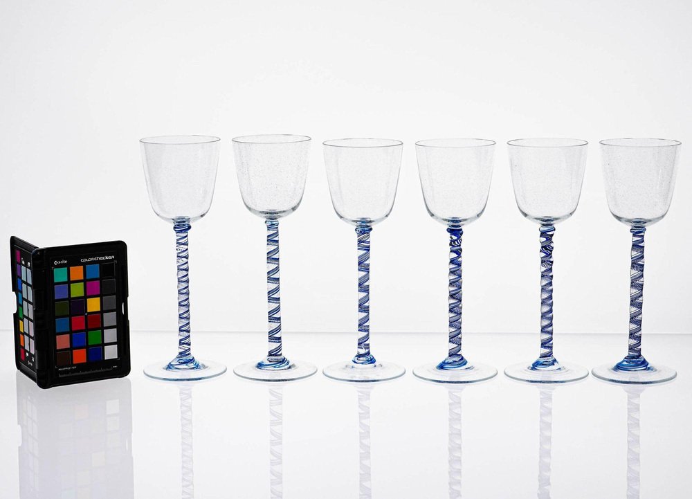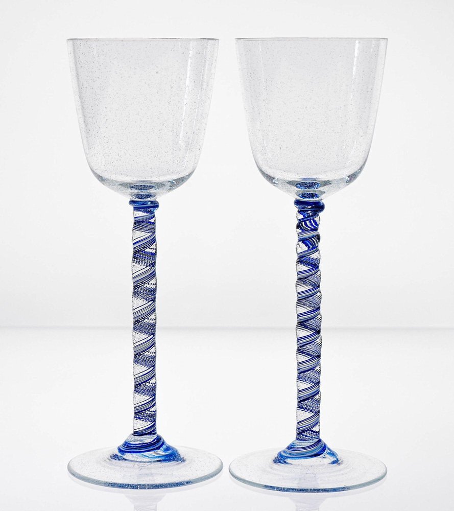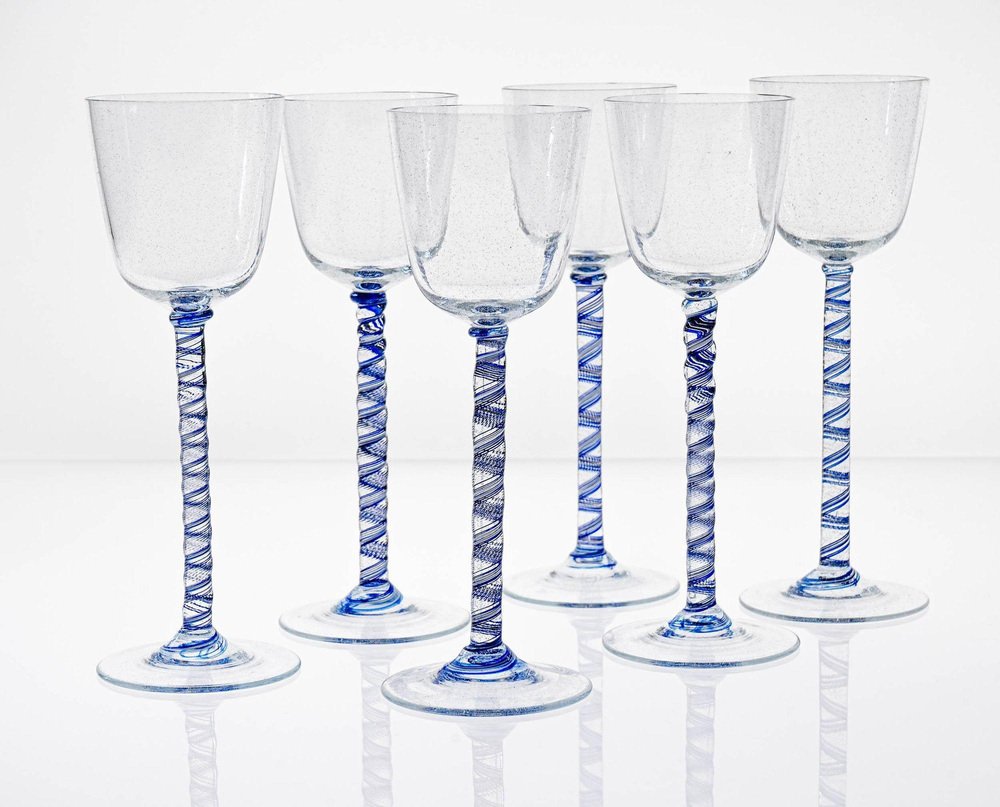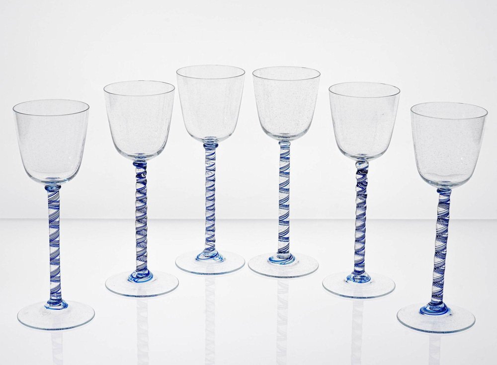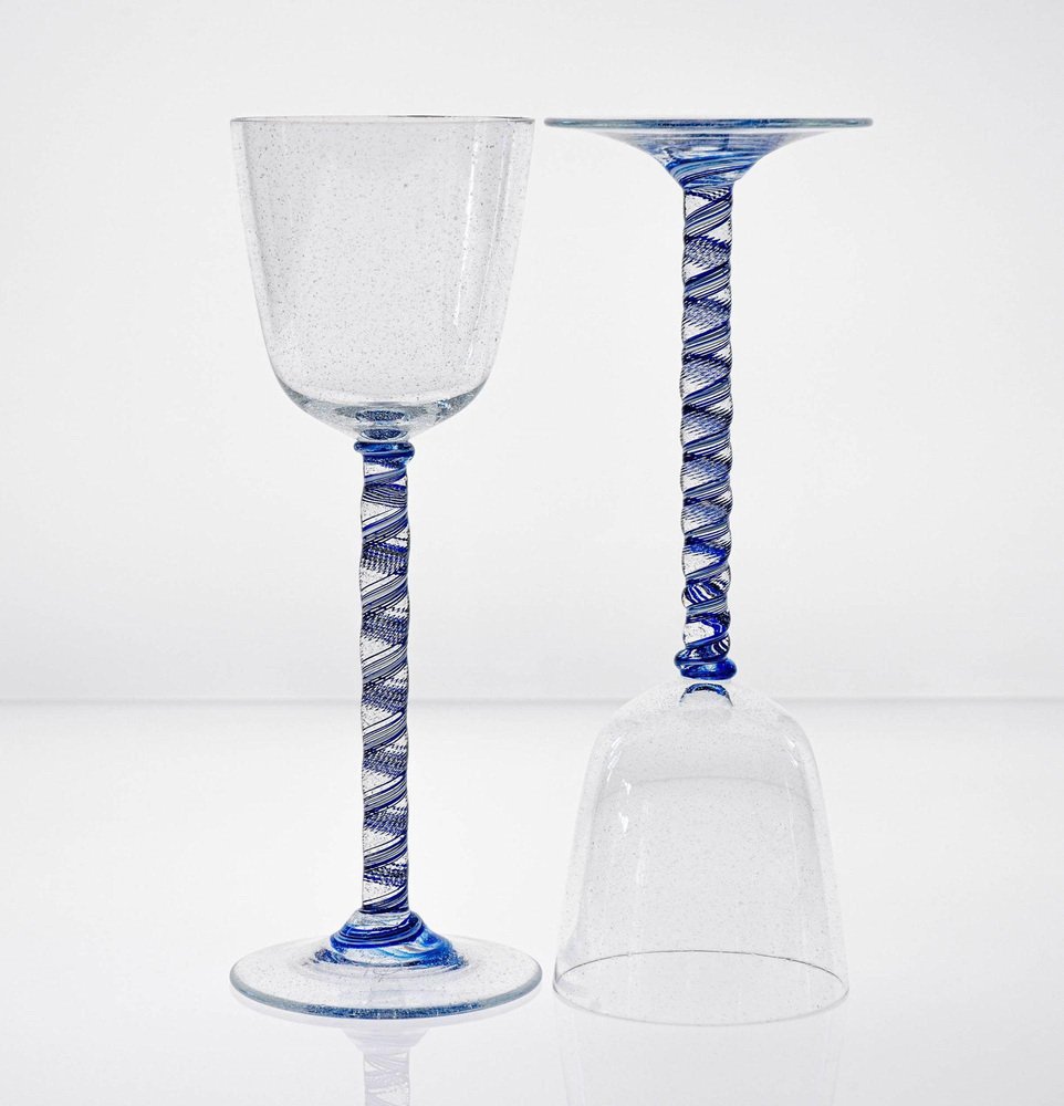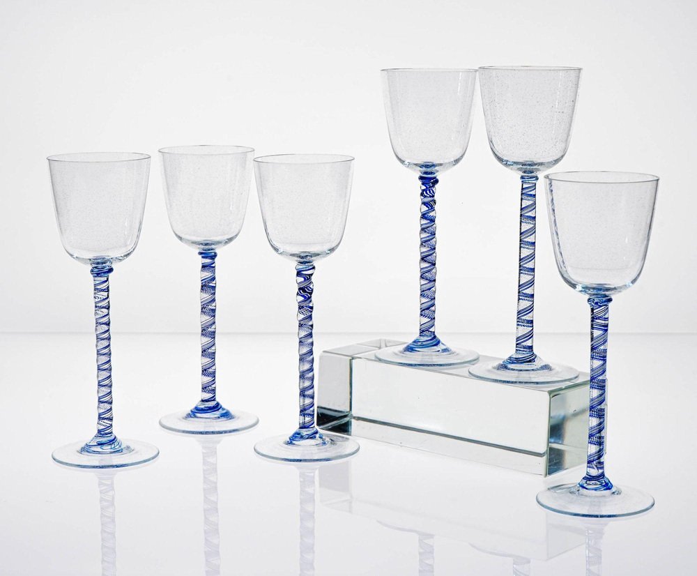 Cristal de Murano Cobalto y Pulegoso con tallos retorcidos de Cenedese, años 50. Juego de 6