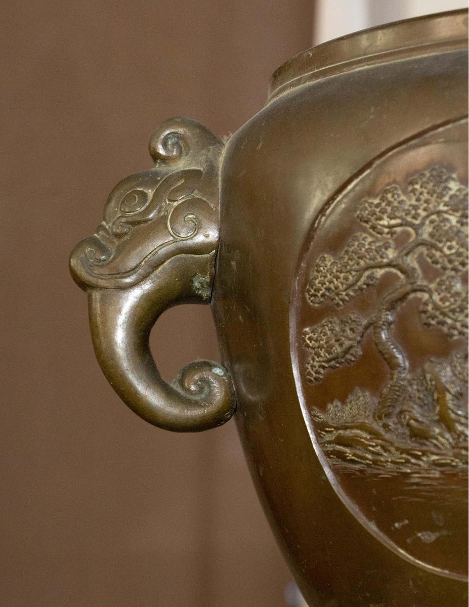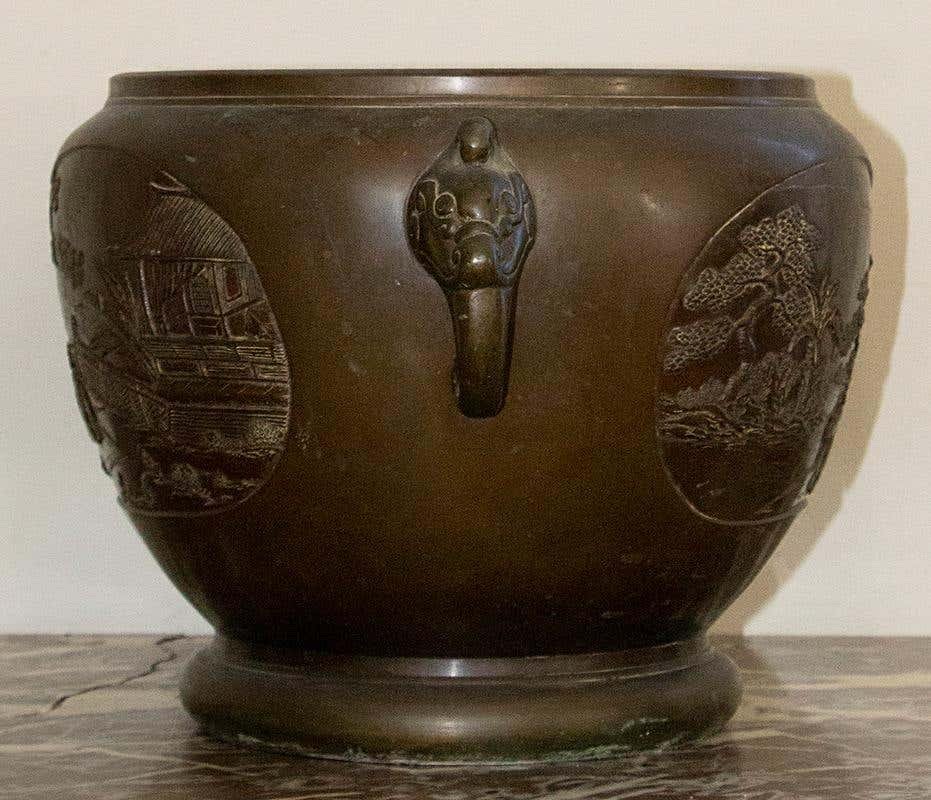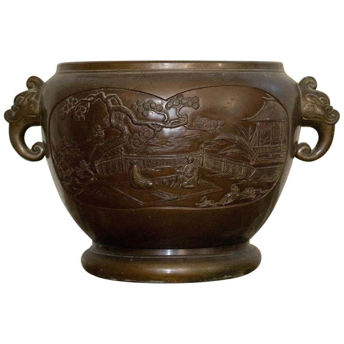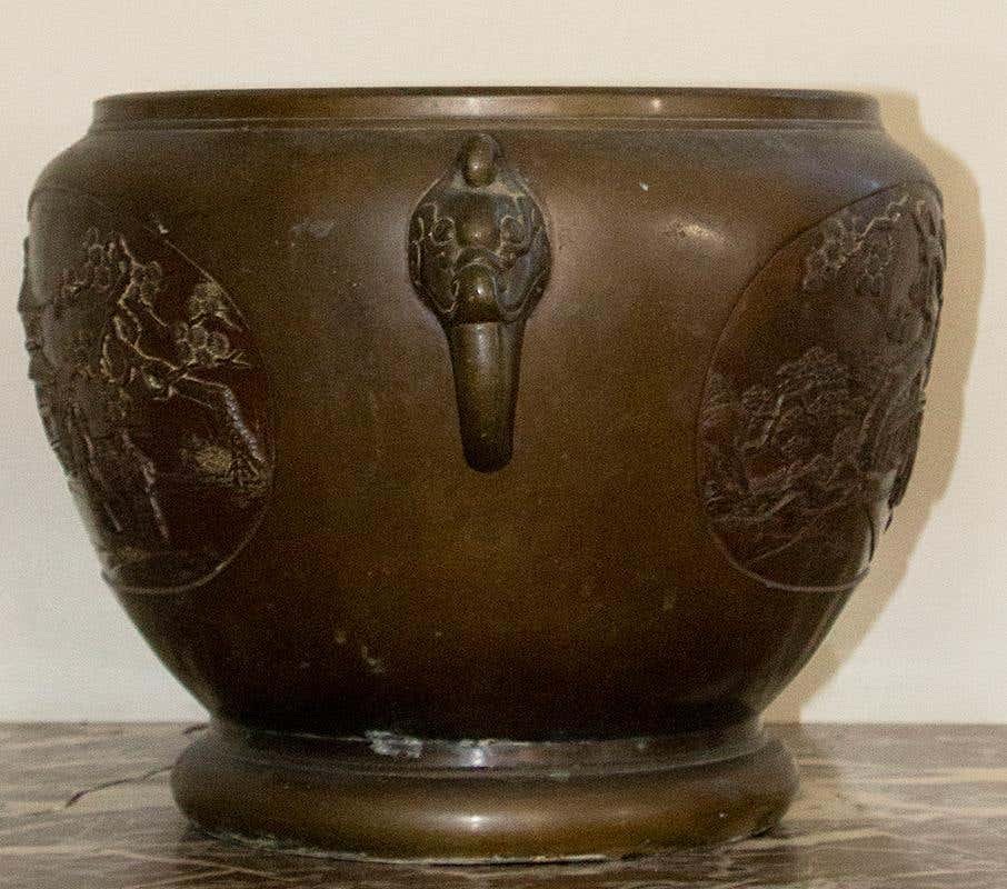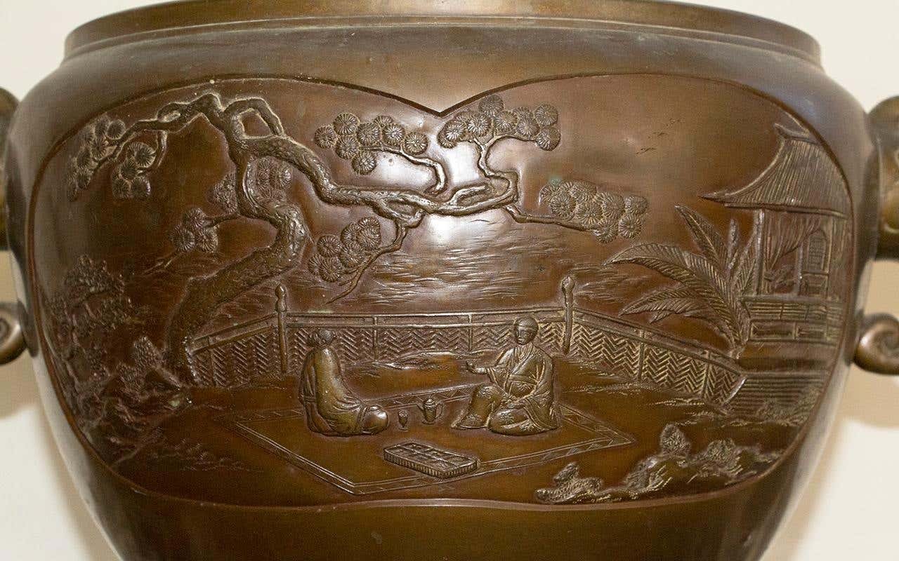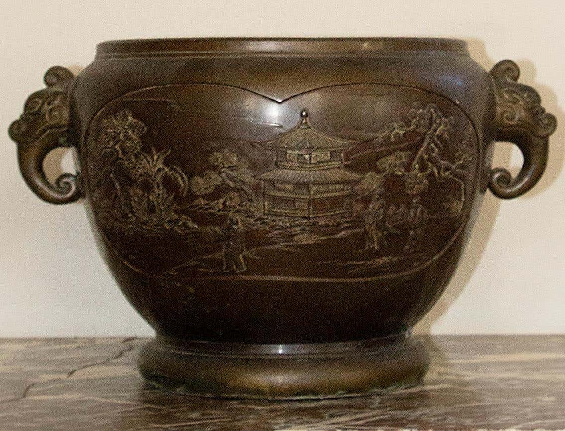 Cubierta de porcelana de bronce con escenas del patio del palacio, década de 1900