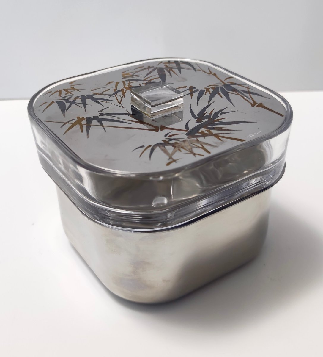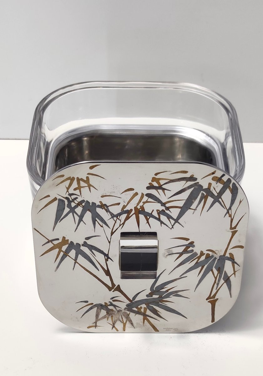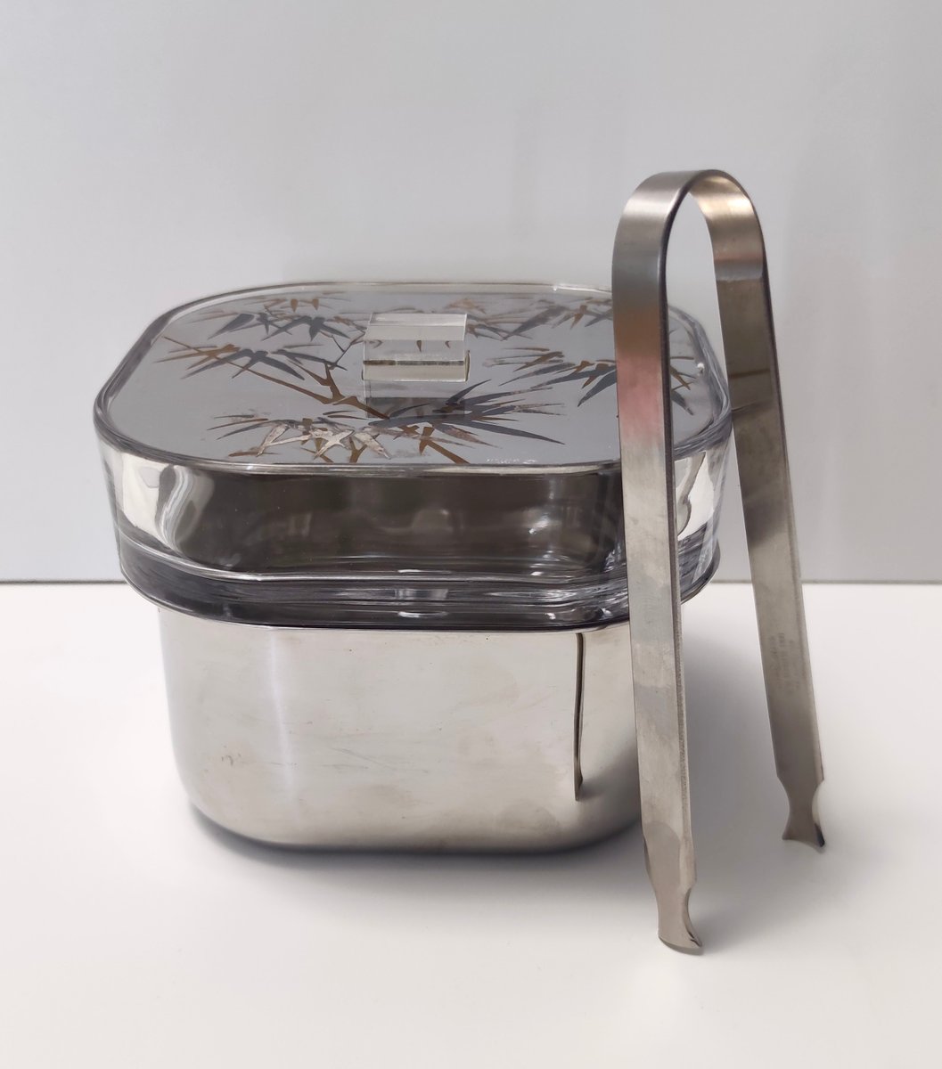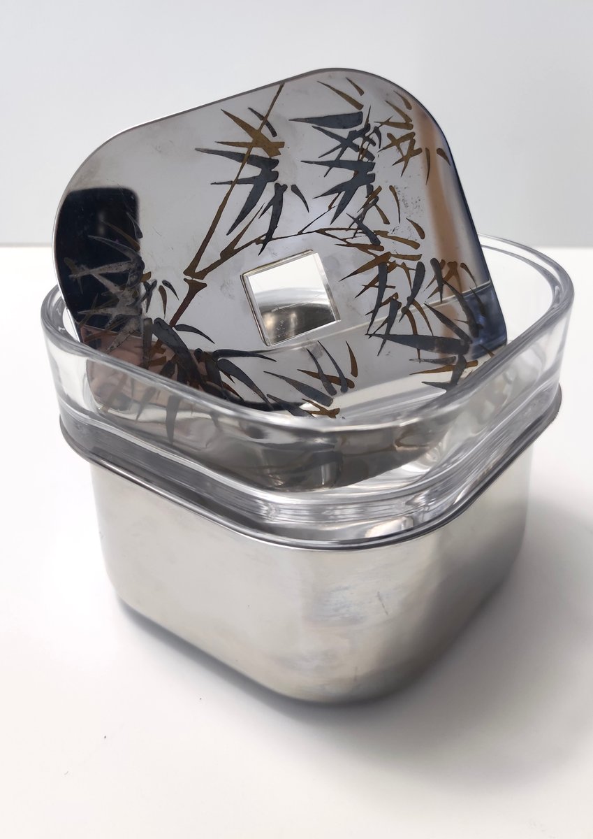 Cubitera posmoderna de vidrio y acero de Roberto Sambonet, Italia, años 70