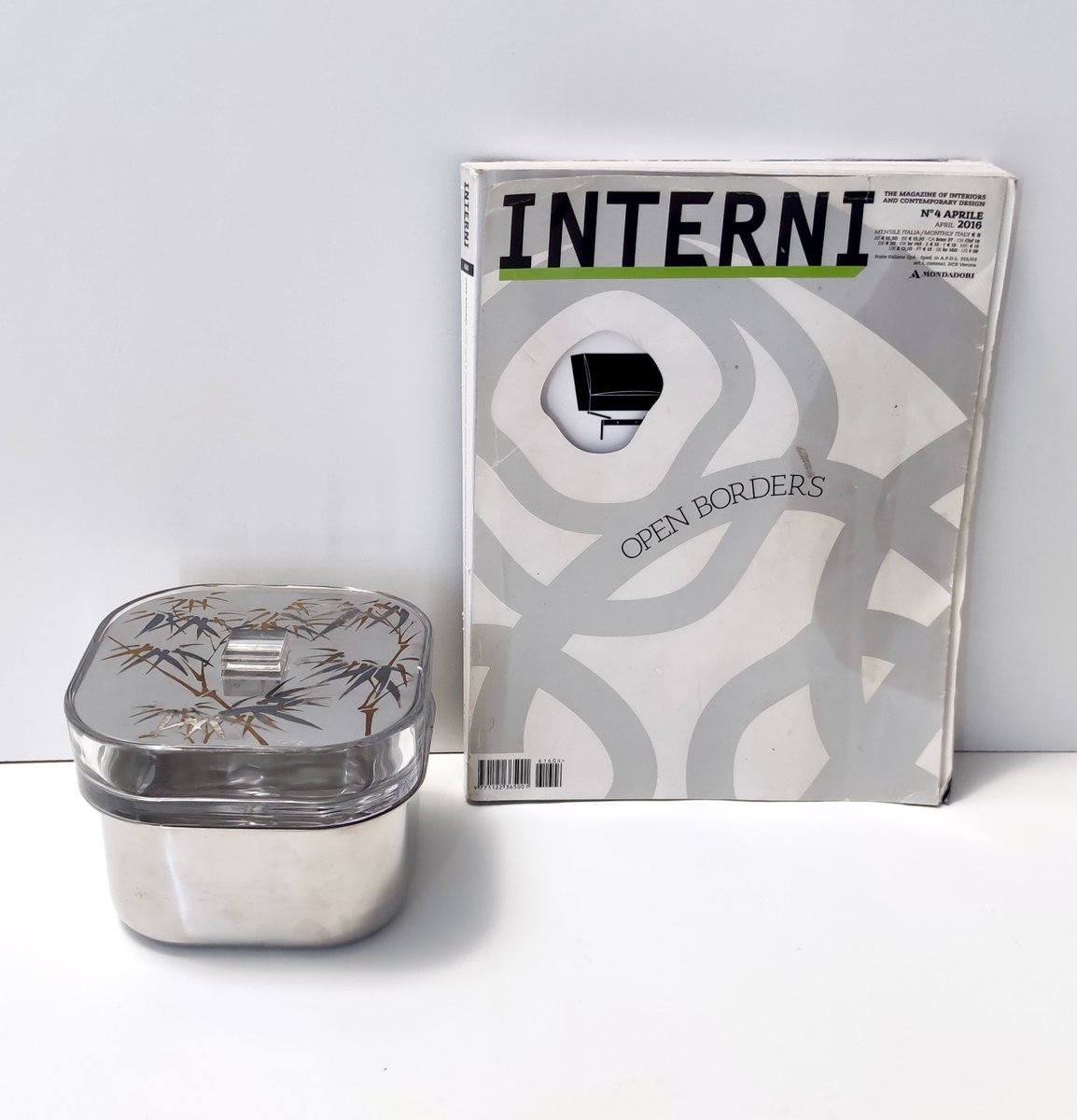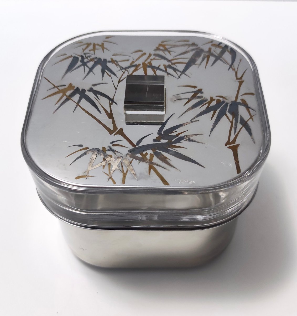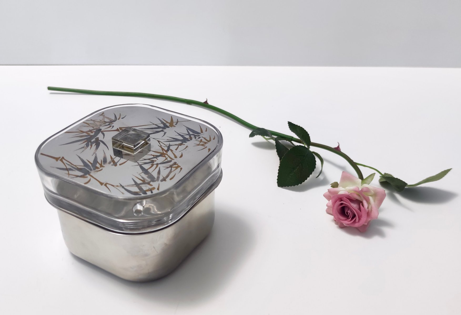 Cubitera posmoderna de vidrio y acero de Roberto Sambonet, Italia, años 70