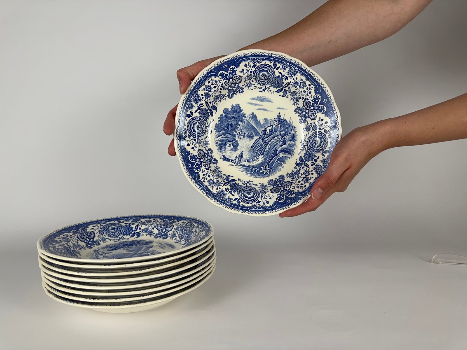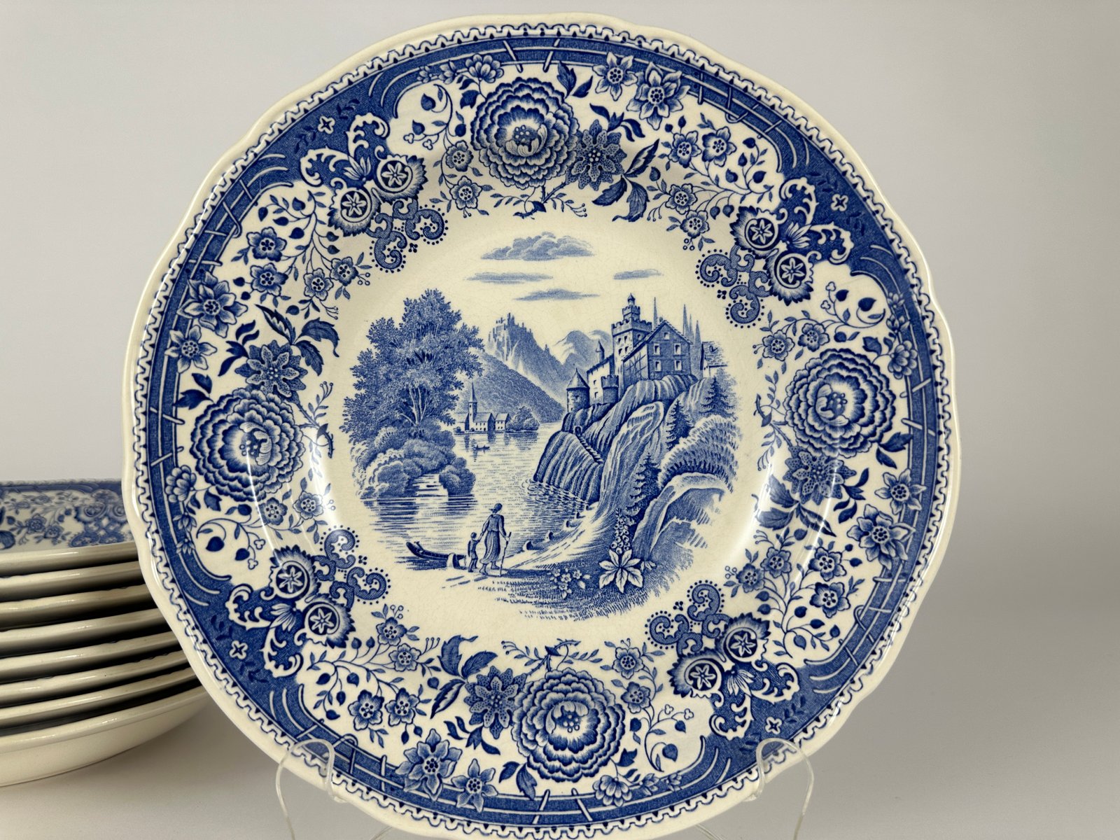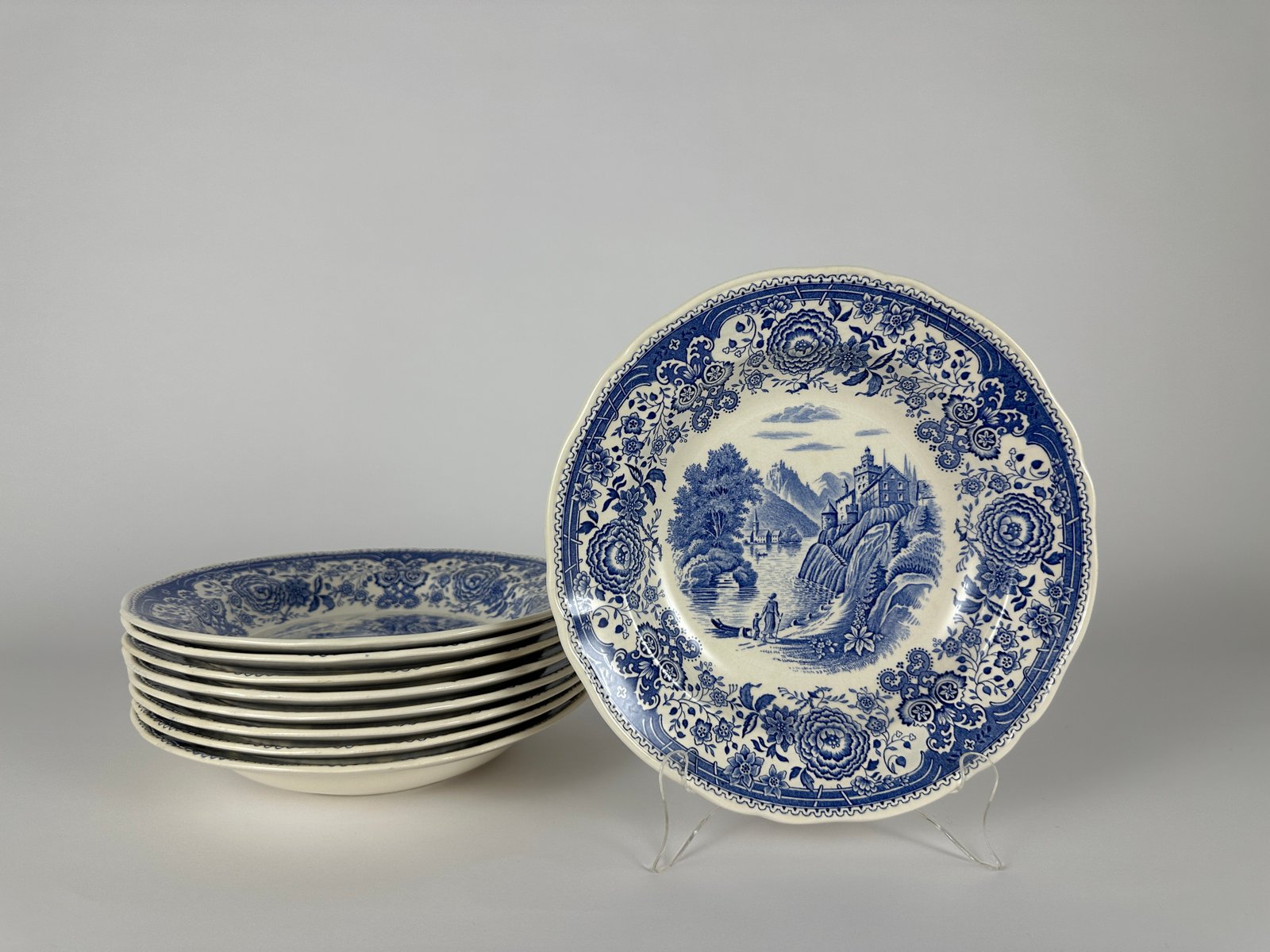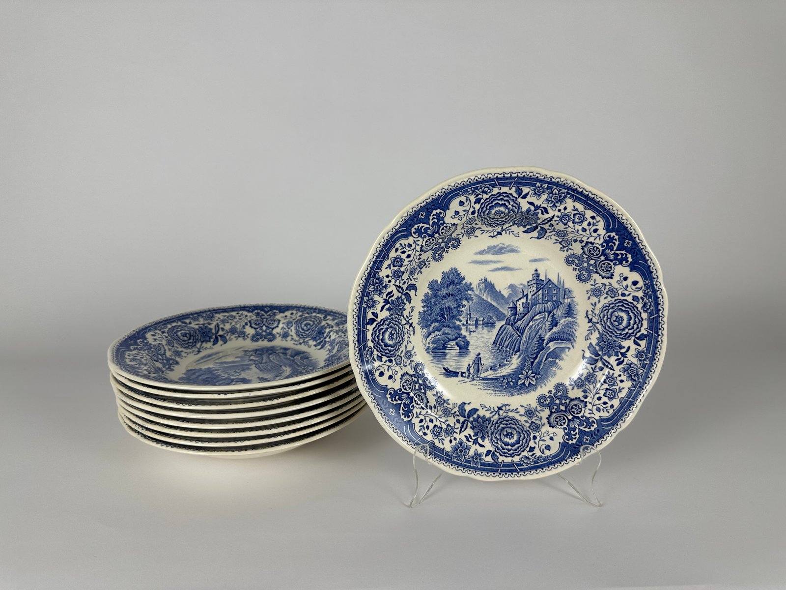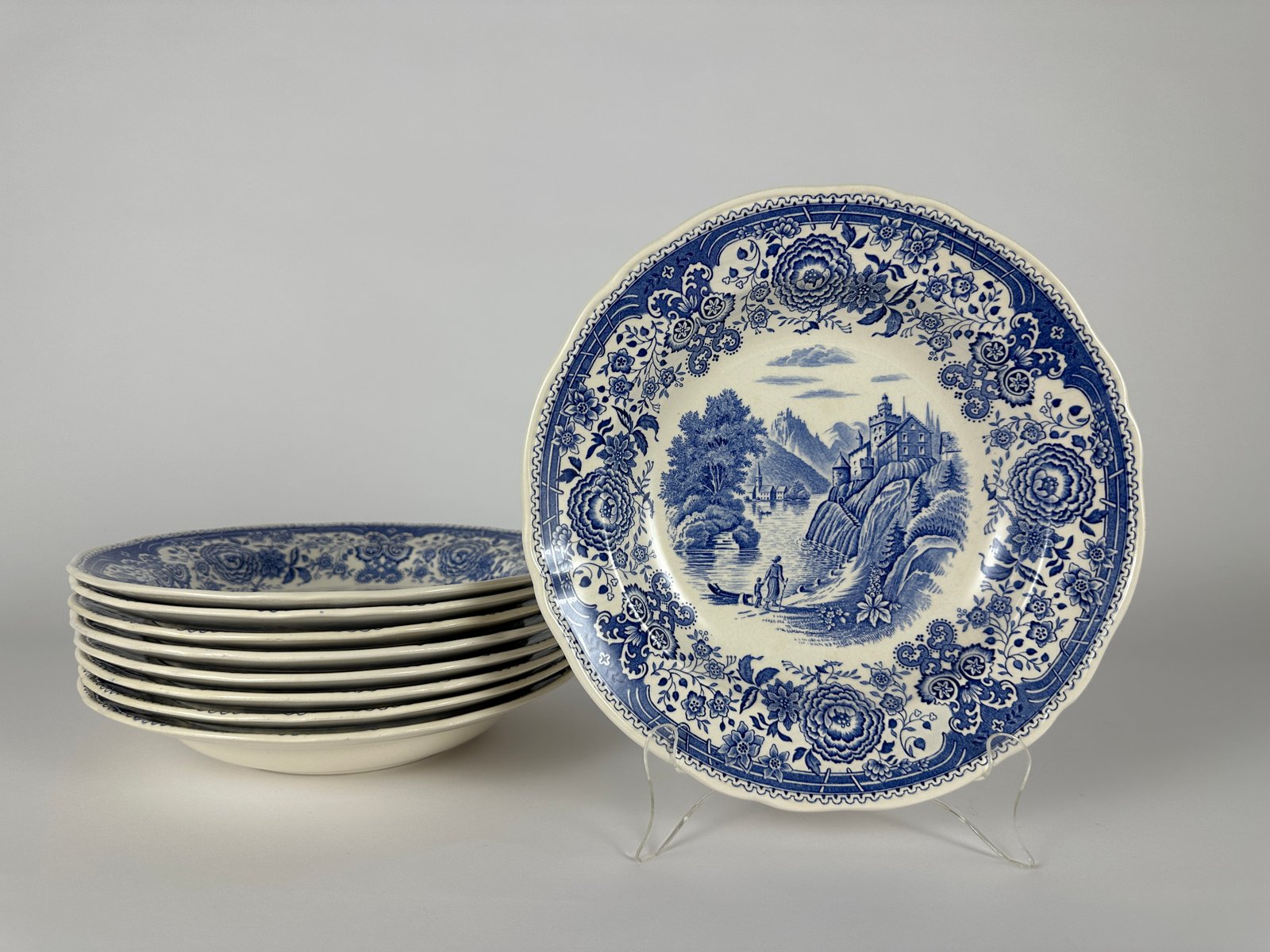 Villeroy & Boch, Germany, deep soup/pasta plates in Blue Burgenland Pattern.