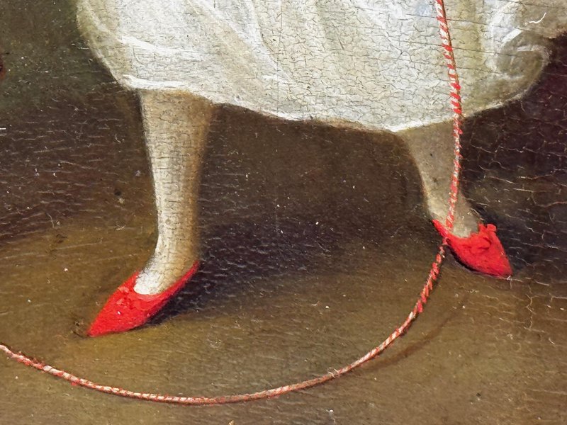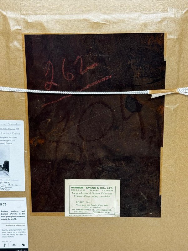 Obra maestra histórica de pintura al óleo Retrato de Louisa Cooke y «Mr. Quiz»: Hogar antes de la batalla de Trafalgar Retrato de la época de la Regencia con procedencia de Trafalgar, circa 1802 Escuela provincial británica, al estilo de George Romney (1734-1802) Descripción general Un retrato íntimo y poco común de principios del siglo XIX que representa a Louisa Cooke al aire libre con un vestido blanco de corte imperio y zapatillas rojas, acompañada por su perro, «Mr. Quiz», atado con una correa. Más allá de su encanto visual, se trata de una obra genuinamente narrativa: Mr. Quiz aparece documentado por su nombre en la correspondencia familiar, lo que crea un retrato inusualmente personal y anclado en la historia. Técnica y tamaño Técnica: Óleo sobre tabla. Tamaño de la tabla: 26,6 cm × 20,3 cm. Composición y estilo Una figura de cuerpo entero en pose elegante, situada en un paisaje de atmósfera suave. El luminoso vestido blanco contrasta con un fondo más oscuro, con una cuidadosa atención a los detalles del traje de la Regencia y una mirada directa y silenciosamente expresiva. El modelado sobrio y el acabado sincero se alinean con la refinada práctica del retrato provincial británico de alrededor de 1800, muy relacionada en espíritu con la elegancia doméstica y la escala humana de la generación de Romney. Contexto histórico Louisa Cooke fue la esposa —y más tarde viuda— del capitán John Cooke, RN (1762-1805), comandante del HMS Bellerophon, famoso por su destacado papel en la batalla de Trafalgar, donde murió el capitán Cooke. El HMS Bellerophon se hizo famoso más tarde por ser el barco en el que se rindió Napoleón. Este retrato captura el «frente doméstico» antes de que la historia diera un giro, un contrapunto emocionalmente resonante a la narrativa pública de la guerra naval. Compañero documentado: «Mr. Quiz» Mr. Quiz no es simplemente un animal de compañía incluido por efecto; aparece mencionado por su nombre en una carta de 1805 del capitán John Cooke a Louisa: «Espero que Mr. Quiz esté muy bien... y que no tengas intención de llevarlo contigo a Exeter. Creo que deberías dejarlo en casa para que cuide de ella». Este detalle personal verificable sitúa al cuadro en una categoría poco común de retratos en la que tanto el modelo como su compañero quedan preservados tanto en la pintura como en el texto conservado. Atribución Escuela provincial británica, circa 1802 Al estilo de George Romney (1734-1802) Firmado: Sin firmar (típico de la práctica retratística provincial e itinerante británica de la época) Marco Recientemente montado en un marco tradicional Larson-Juhl moldeado y dorado: Tamaño del marco: 40,0 cm (alto) × 33,3 cm (ancho) × 4,5 cm (profundidad) Acristalado con Artglass AR 70 para una mayor claridad y una protección de calidad museística. Procedencia Louisa Cooke (viuda del capitán Cooke); desde entonces, por descendencia hasta 1961/62; posteriormente, colección privada; Herbert Evans & Co. Ltd., 139 Commissioner Street, Johannesburgo (etiqueta en el reverso); más tarde gestionado por Sloane Street Auctions (Londres); comisariado por Cheshire Antiques Consultant LTD; expuesto en el famoso Lord Hill Museum. El reverso lleva los números de inventario/manipulación «262» y «804» escritos con tiza.
