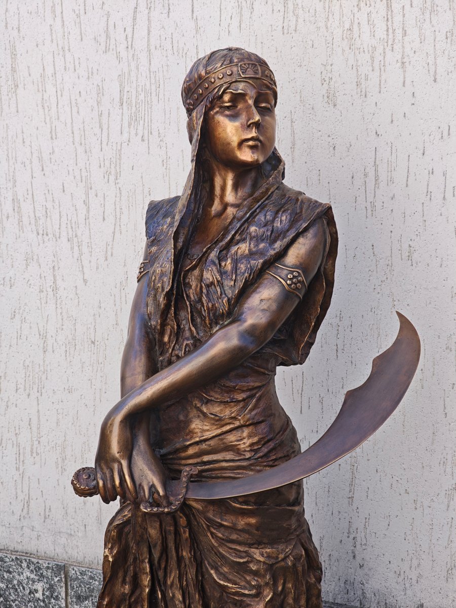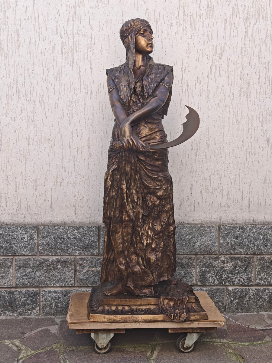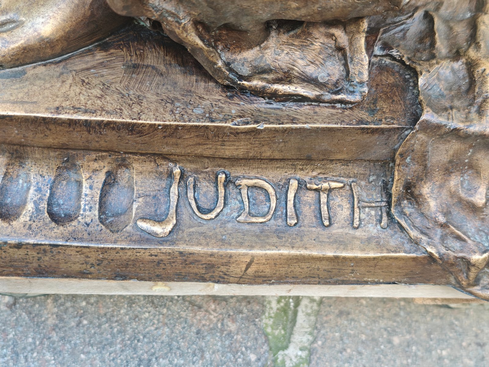 This one is a monumental sculpture of a very recurrent biblical subject since Renaissance: the Jewish heroin Judith, represented holding the sword she used for beheading the evil general Holofernes, felt asleep after being seduced by her.
