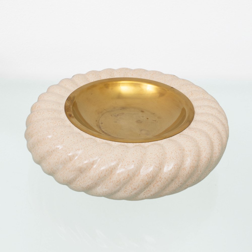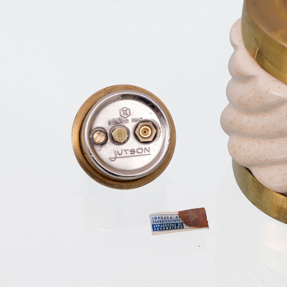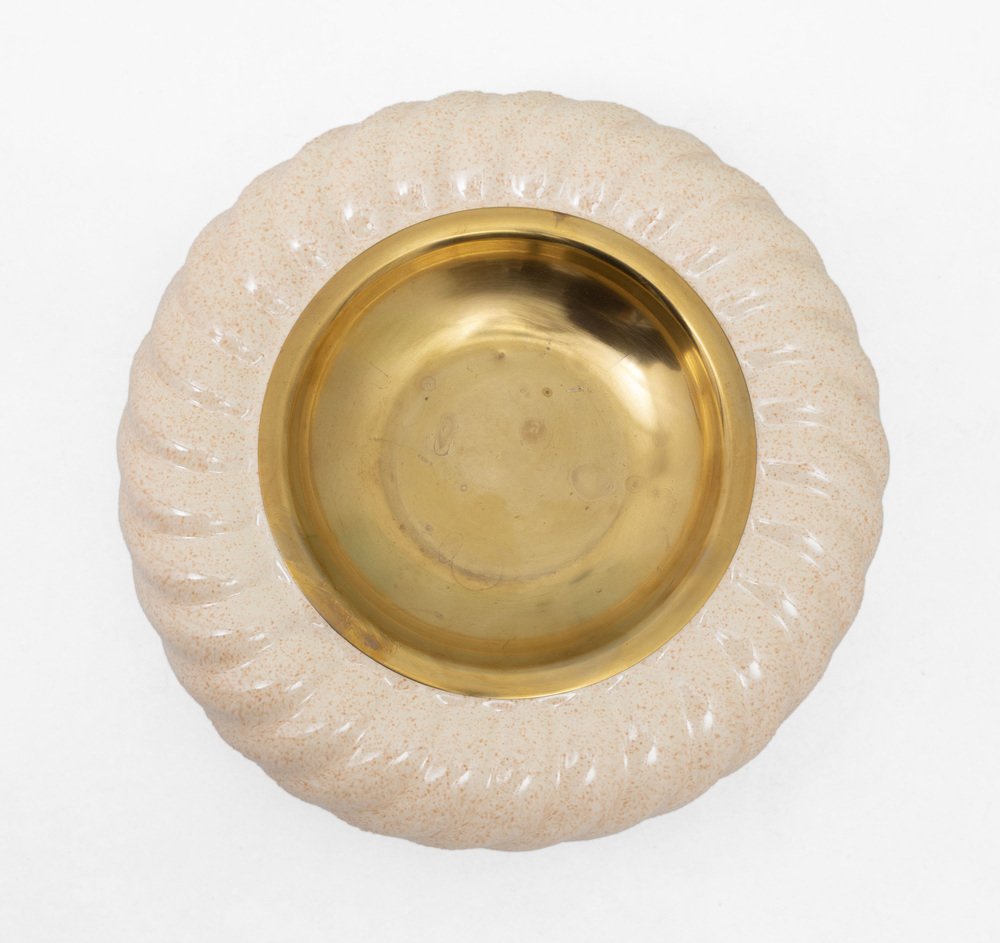 Encendedor y cenicero vintage de latón de cerámica de Tommaso Barbi, Italia, años 60. Juego de 2