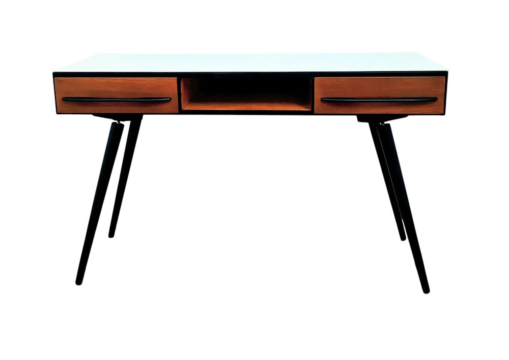 Born in 1903 in Koryčany, Halabala spent his formative years training as a cabinetmaker in his father’s joinery workshop before entering the state-owned woodworking school in Valašské Meziříčí in 1920. He completed his practical studies with woodworking company Associated Arts & Crafts Enterprises, known as UP (Spojené Uměleckoprůmyslové Závody), in Brno. Halabala subsequently studied at the Academy of Applied Arts in Prague under Czech modernist architect-designer Pavel Janák (1881-1956). After graduating in 1926, Halabala worked briefly at the studio of Bohumil Hübschmann in Prague, until he was hired by UP. Halabala quickly became the firm’s development manager, responsible for product promotion and sales strategy—a position he maintained until 1946. Believing that furniture should be fully functional, modular, mobile, and widely affordable, Halabala advocated for a new mass-market approach to furnishing, ultimately pioneering industrial furniture manufacturing in Czechoslovakia.