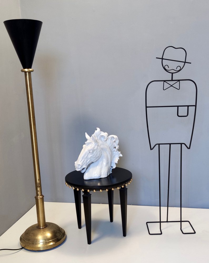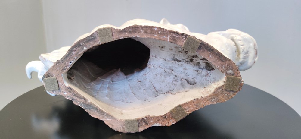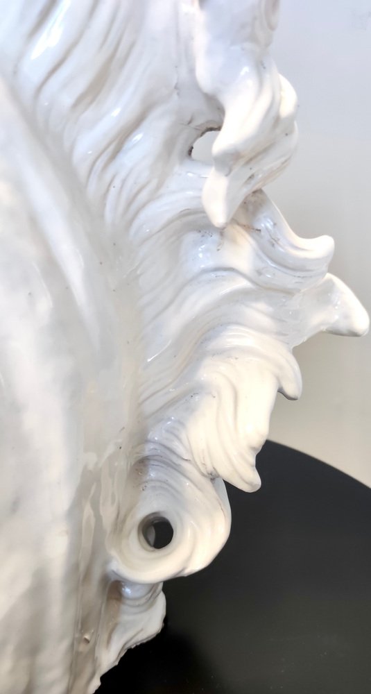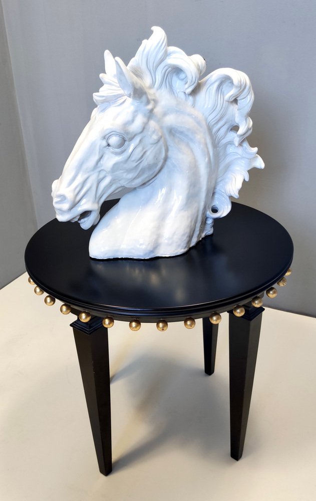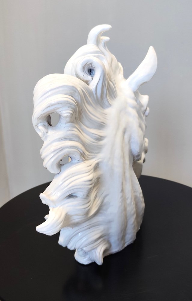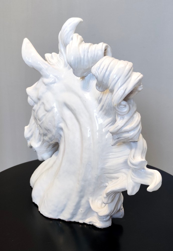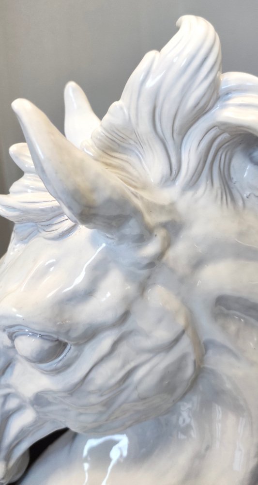 Escultura de cabeza de caballo vintage de loza lacada en blanco, años 80