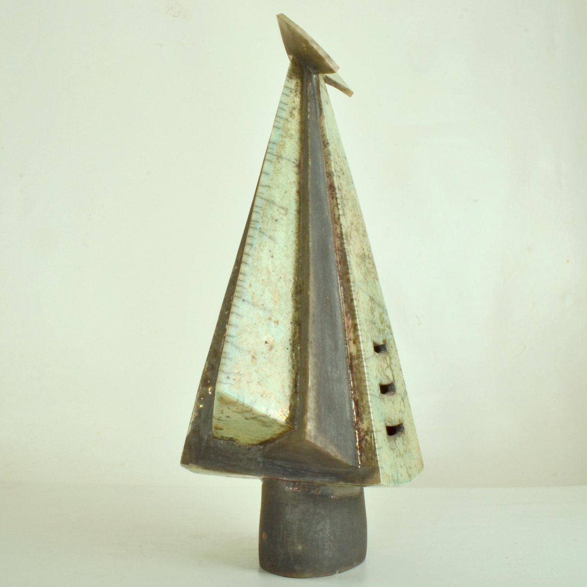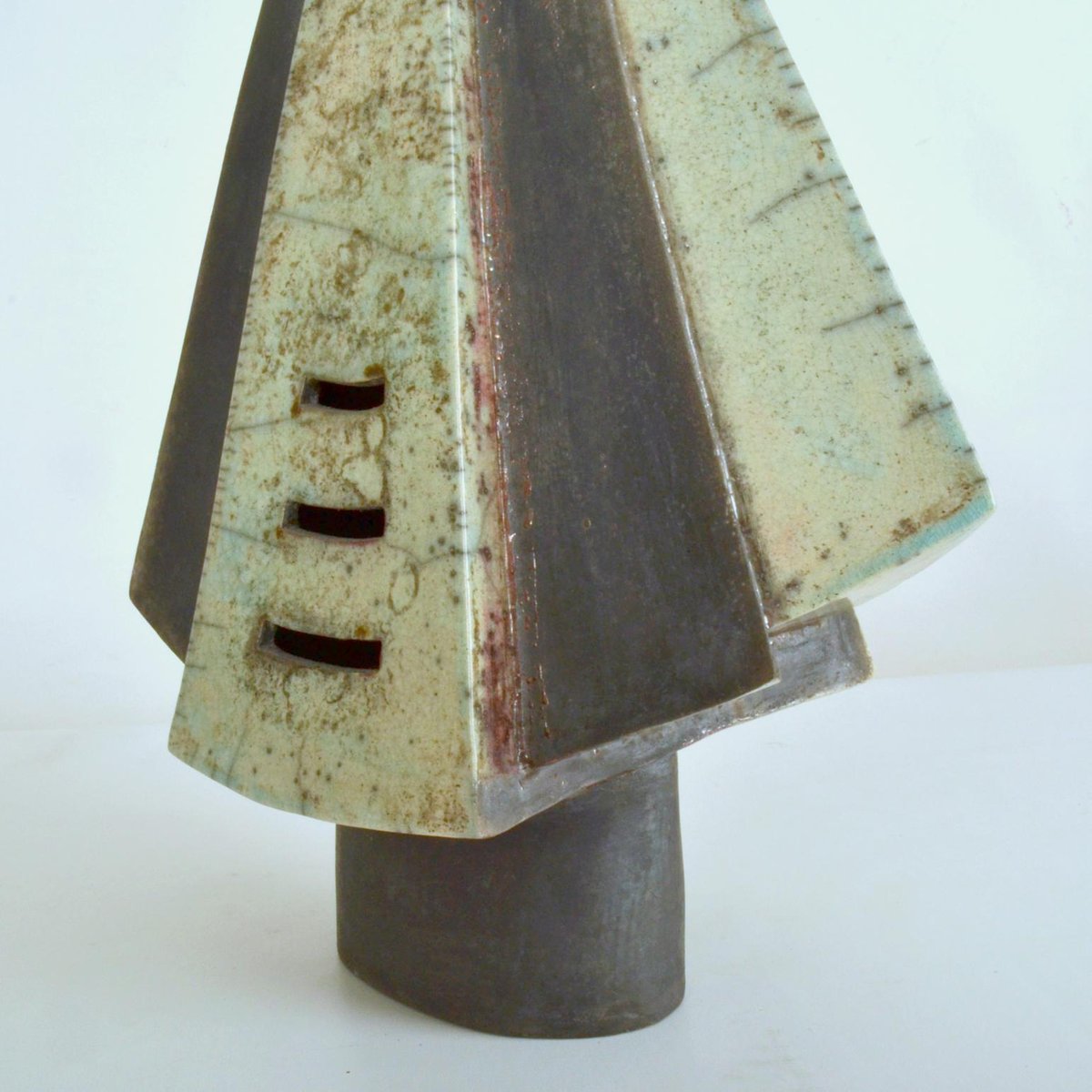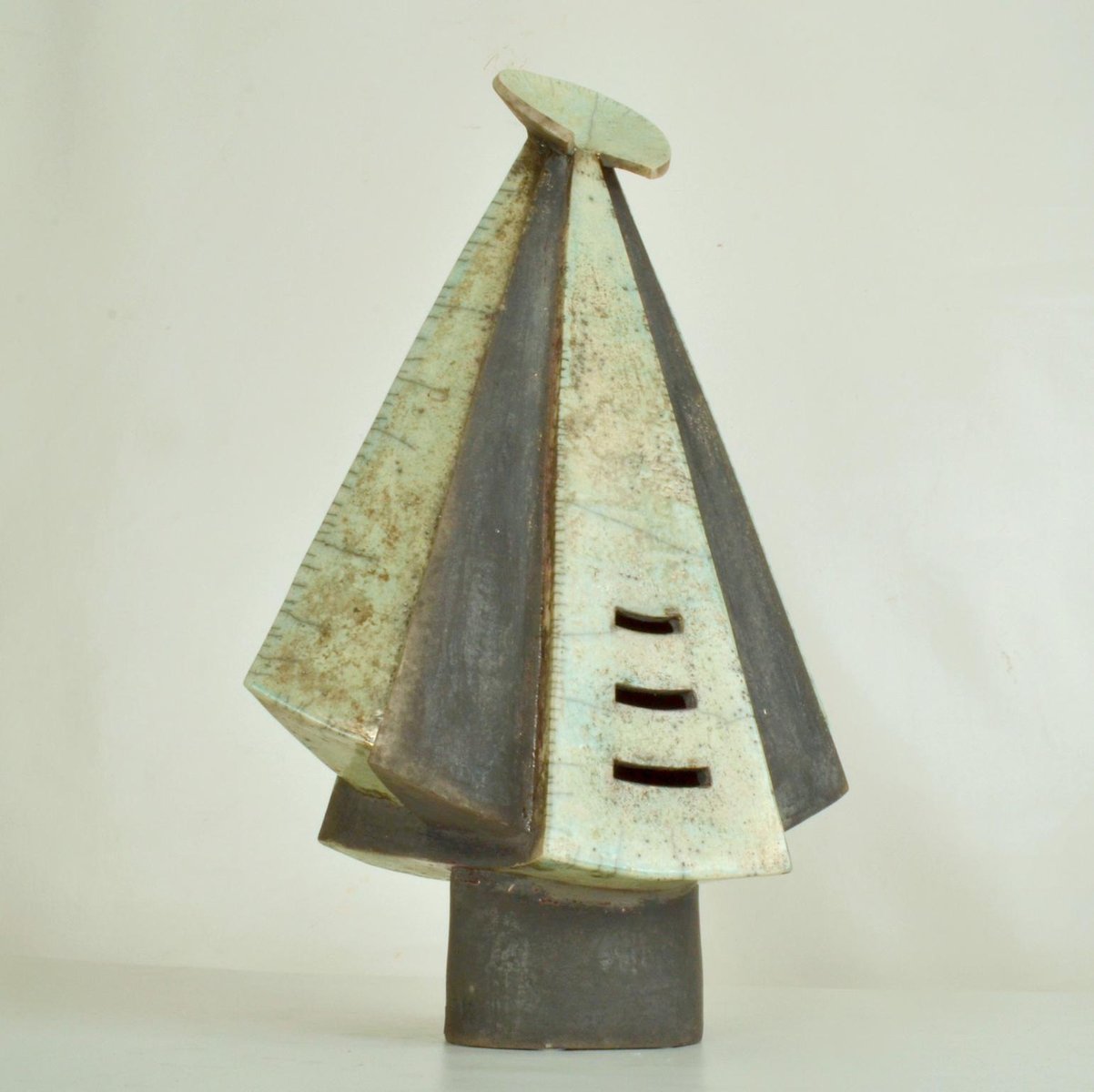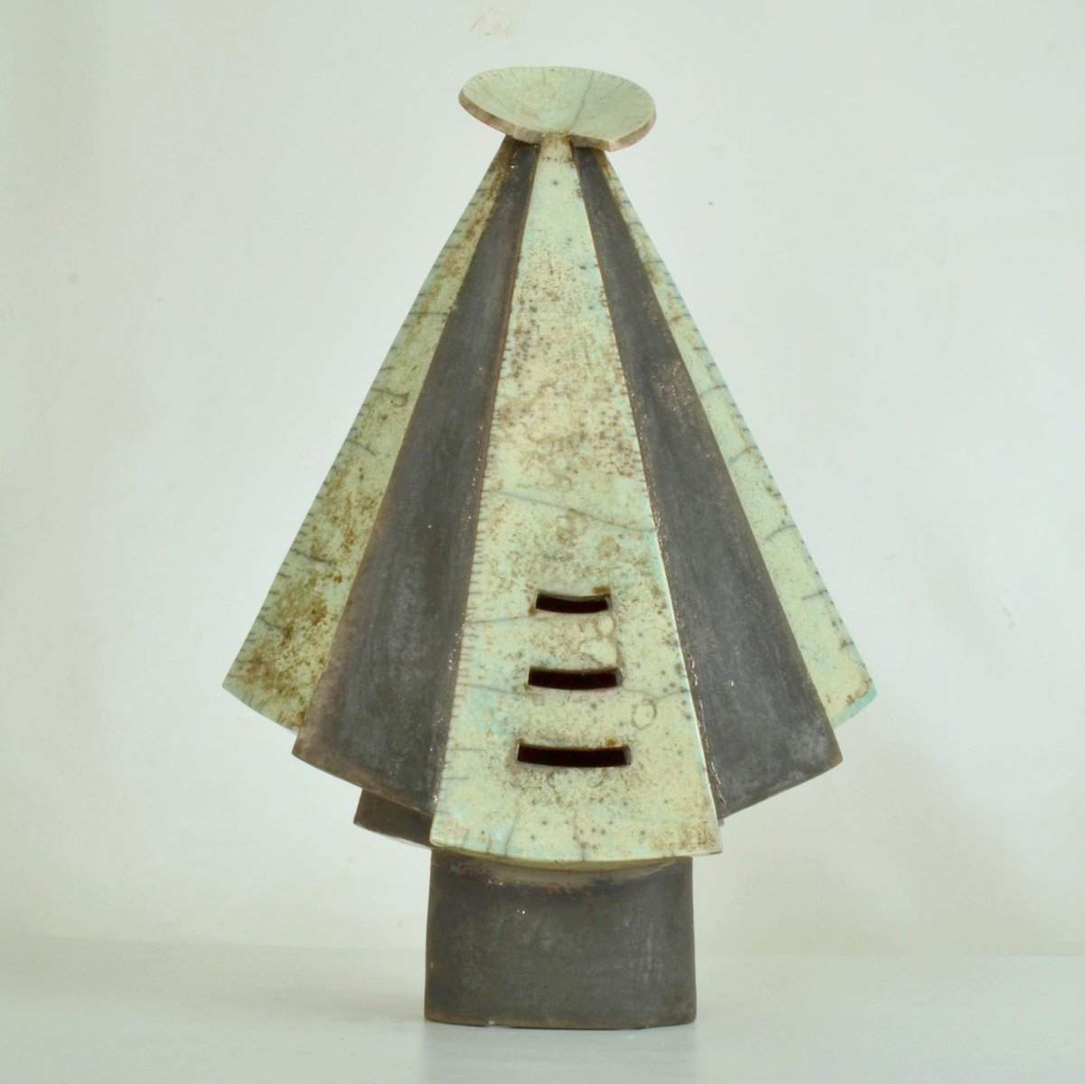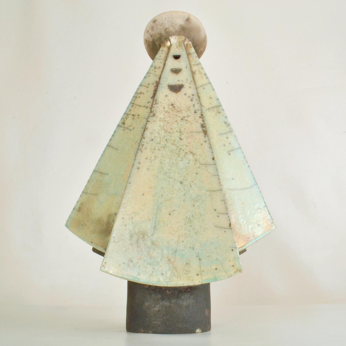 Escultura de figura encapuchada en cerámica