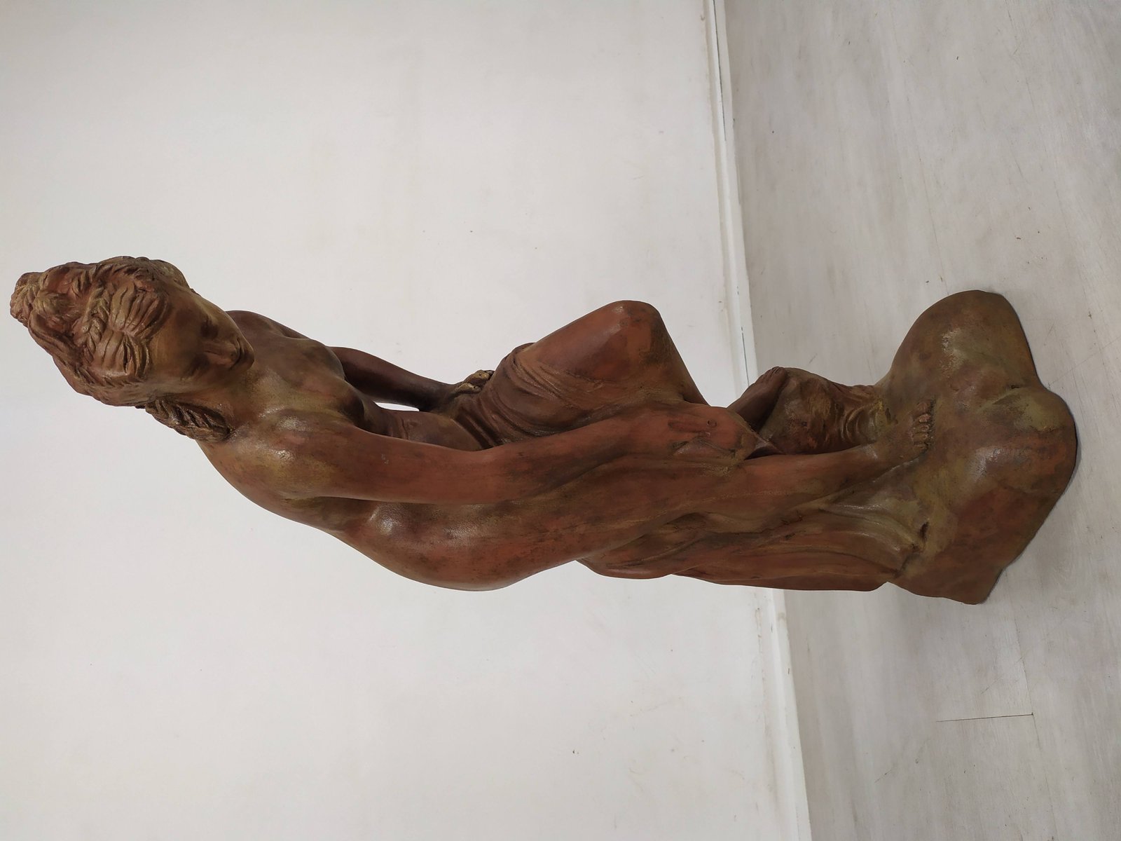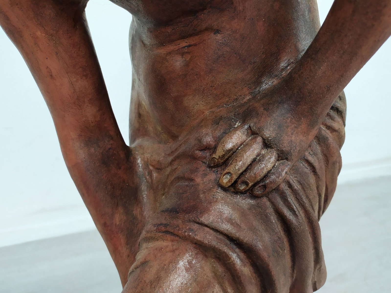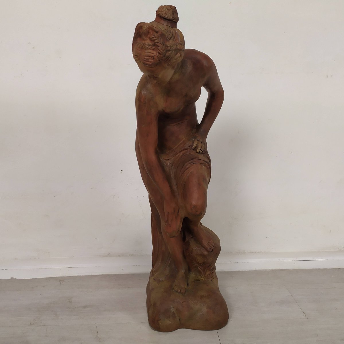 Escultura de jardín de bañista de terracota, años 20