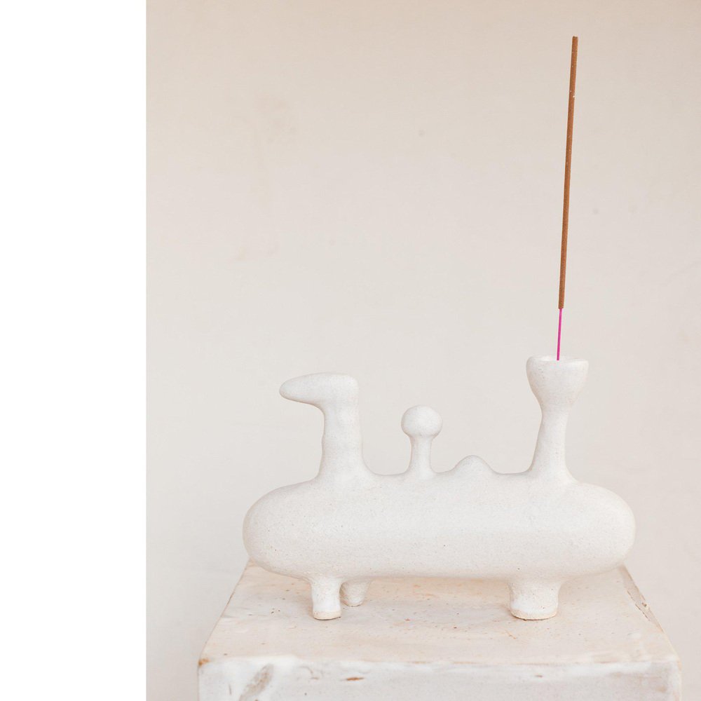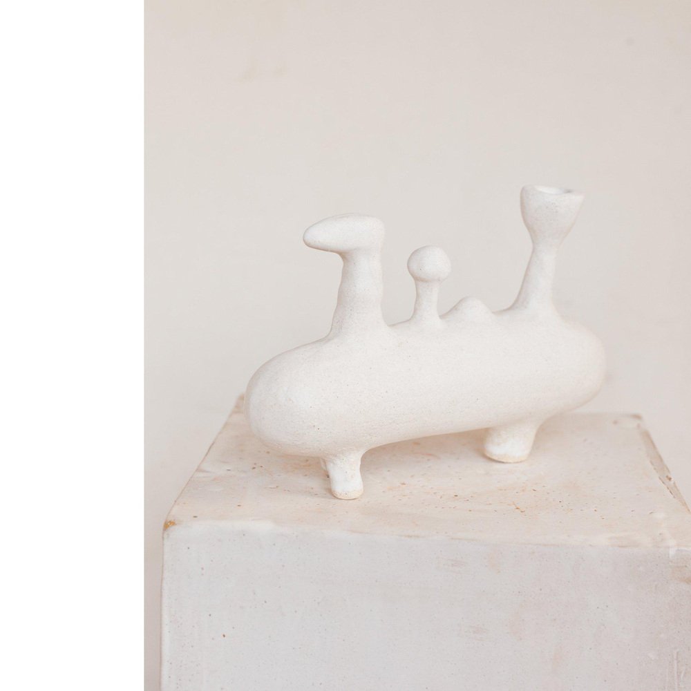 PROJECT SATORI "When Japanese Mountain Gods appear as children, they are known as Satori. Satori can read your mind. They can speak your thoughts faster than words fall from your lips. Should they hear you lie, they might kill, or even eat you. From an early age, I knew what their story meant - that every lie you tell brings your soul a little closer to death. In Japan, the death of your soul is worse than death itself. Growing up, there was a little Satori statue next to the front door of our family home. It reminded us not to lie, no matter how good a solution to suffering it might seem. It stood as a reminder for us to accept the truth, and the world, as it is - to let life unfold honestly around us. Most importantly, it told us not to lie to ourselves. I didn’t take this folktale seriously until my son, who just turned 3, started to lie. I was appalled. Someone I love so dearly learning to lie, to make his life more comfortable. I want my children not to lie . To tell them that although it does not always feel safe to speak the truth, the lie is much more dangerous. How could I explain? I recalled the story of the Satori, that ‘faith to the truth’ is the only way to make your soul indestructible. I took the opportunity to look at myself, really look - and discovered a million lies of my own. I had to stop, so my kids could FEEL what it’s like to have the courage not to lie. It’s not enough to tell them off, tell them how to behave, I must show them. So my journey to strengthen the soul began. Please join me if you like. Let’s really listen to what we say, lets FEEL the sensation of our words - and live truly, with Satori beside us, to keep us honest. Goodbye to the lie that makes you look good. Goodbye to the lie that says you’re ‘right’. Goodbye to the lie that entertains. Goodbye to the lie that keeps you agreeable, likeable. Goodbye to the lie that covers embarrassment, avoids punishment. Goodbye to the lie that protects other people, so you think. Goodbye to the lie that hides who you really are. Goodbye to the lie that protects you from conflict, so no one knows what you stand for, though it feels safe this way. Goodbye to the half-lie, that tempts you not to speak the entire truth. Goodbye to the lie that believes the truth does not work. Goodbye to the lie that controls what people think of you. Goodbye to the lie that takes care of now, yet ruins your future. Goodbye to the lie that divides you and your soul. Goodbye to the lie that makes your spirit weak. Goodbye to the lie that keeps you awake at night, because you know deep down you have betrayed yourself. Goodbye to the lie that you forget where it begins and ends, one day it will flood your life. Where these Goodbyes will take us, no one can tell. But tell no lies, and reality is on your side. There is nothing more powerful. My hope is for my Satori collection to stand as a reminder, to have the courage to tell the truth as carefully as we can. To accept what happens next is what should happen, in this situation, at this time. To let the world unfold around us. And live life as it is. Here’s to the truth. To the magic of telling it. And the adventure of not knowing where it will take us. Welcome to the world of truth. Where our souls are indestructible." - Noe Kuremoto 2022 White Stoneware Sculpture W:24 cm D : 7 cm H: 17cm ( approximately)
