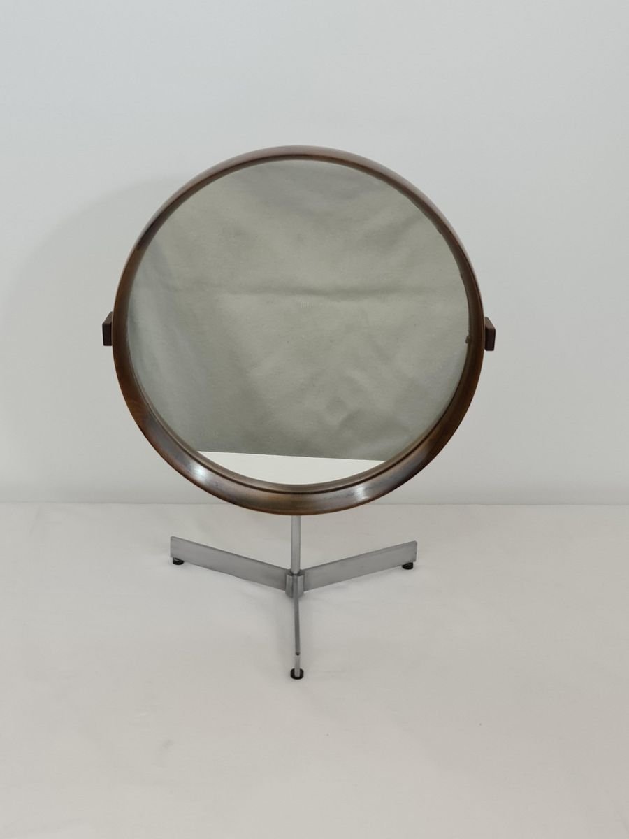 Espejo modernista ovalado de vidrio ahumado de Veca, Italia, años 70