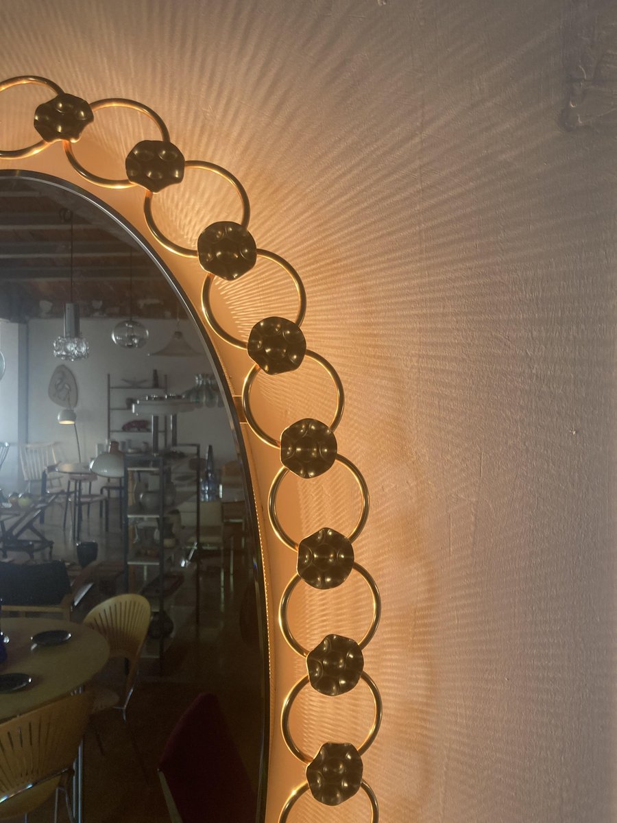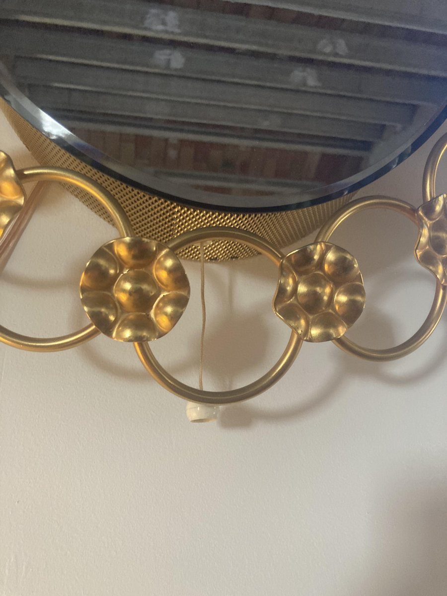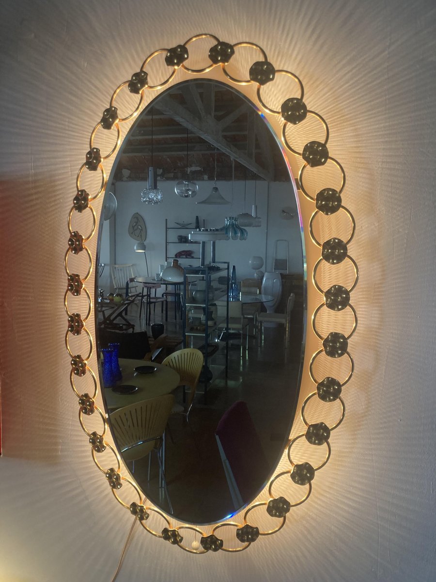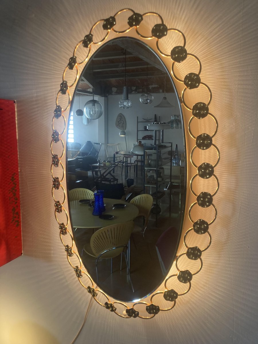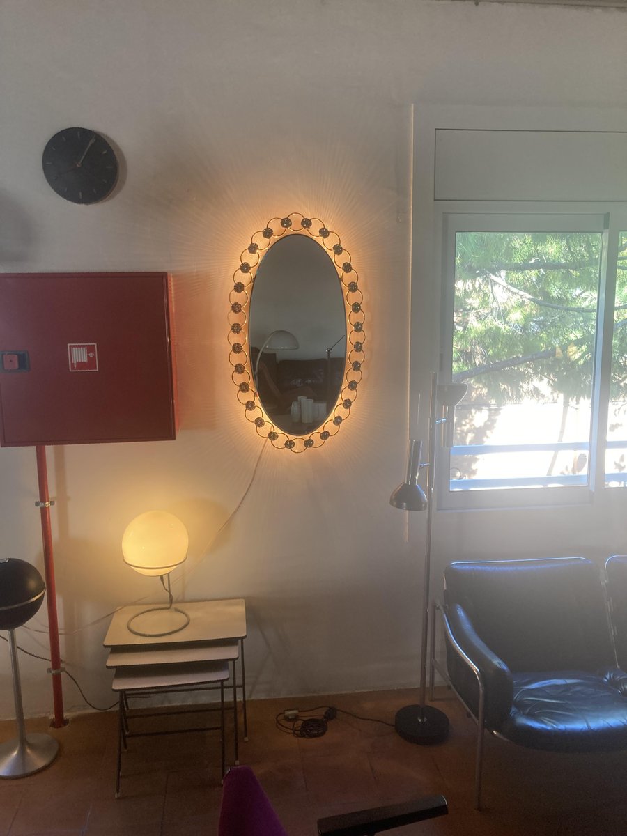 Espejo de pared Regency grande con luz de fondo, años 70