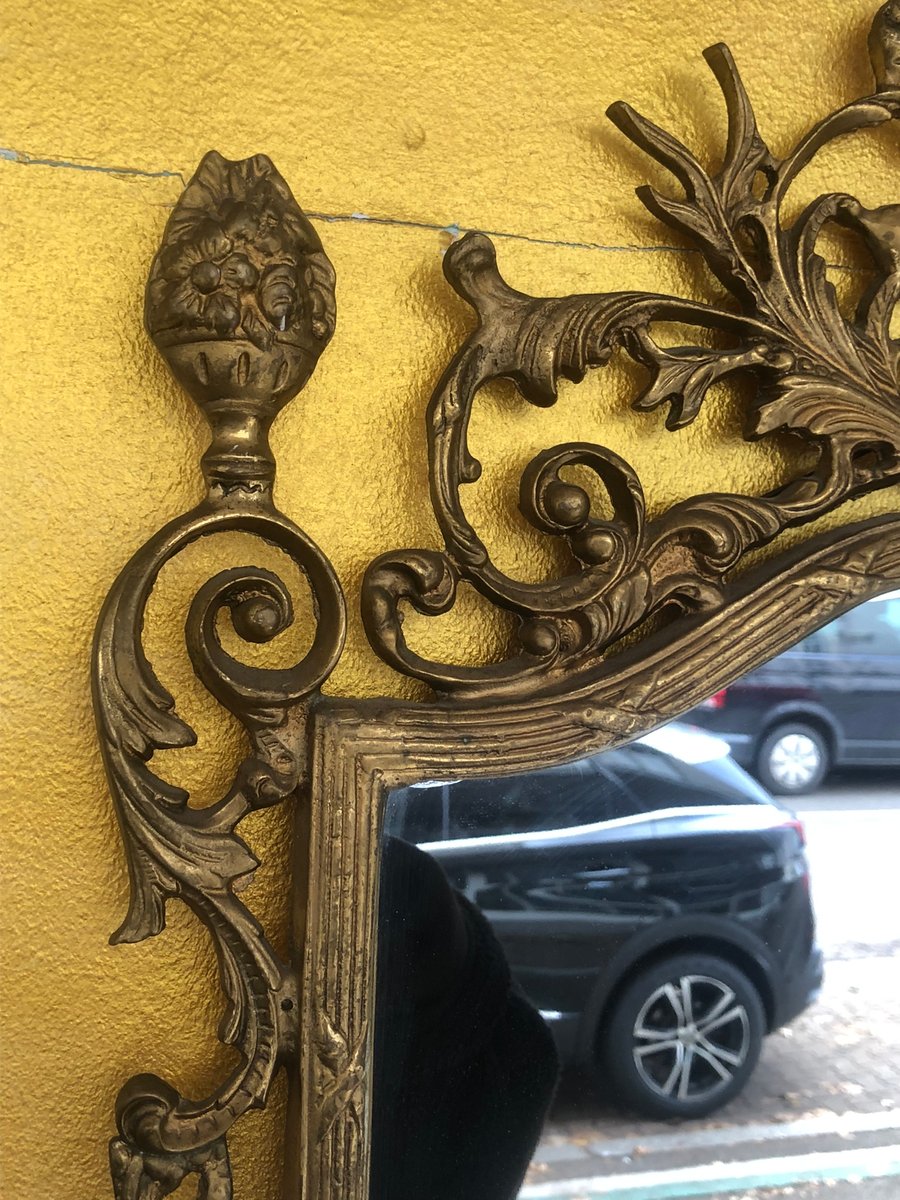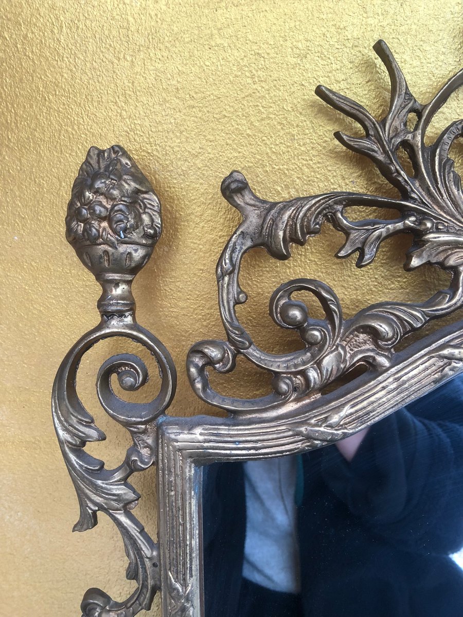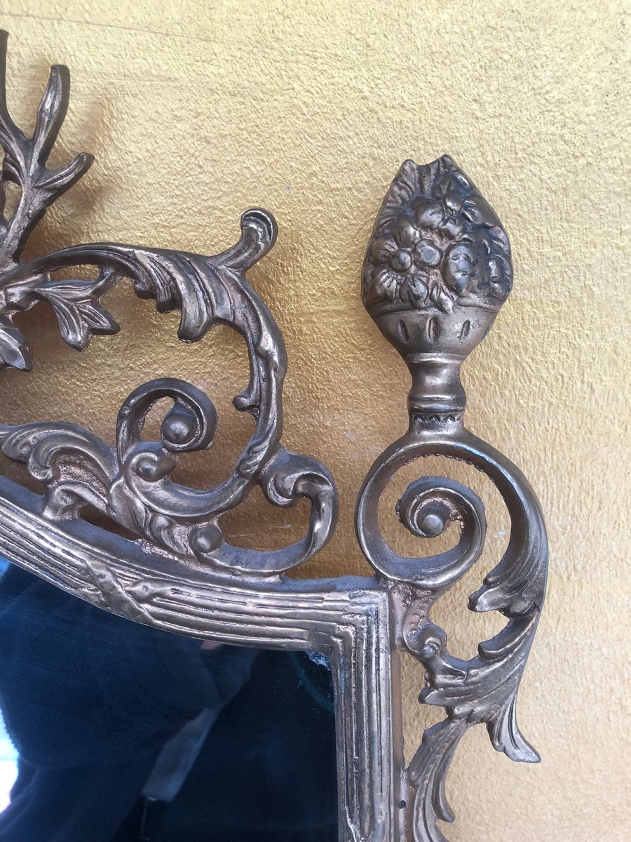 An exquisite, artfully designed wall mirror from Italy, made in the Baroque style, which reflects the opulent aesthetics of the 18th century. The frame is made of high quality cast brass, manufactured with the highest precision, which gives the mirror an exceptional shine. The detailed decorations, inspired by floral and classic ornaments, make this piece a timeless work of art that combines elegance and Italian craftsmanship. Perfect as an eye-catcher in classic or modern interiors.