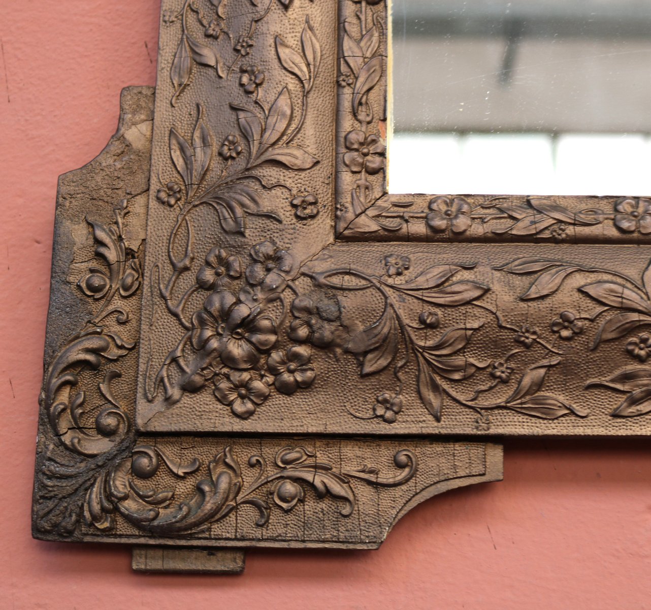 Espejo francés de madera dorada, siglo XIX