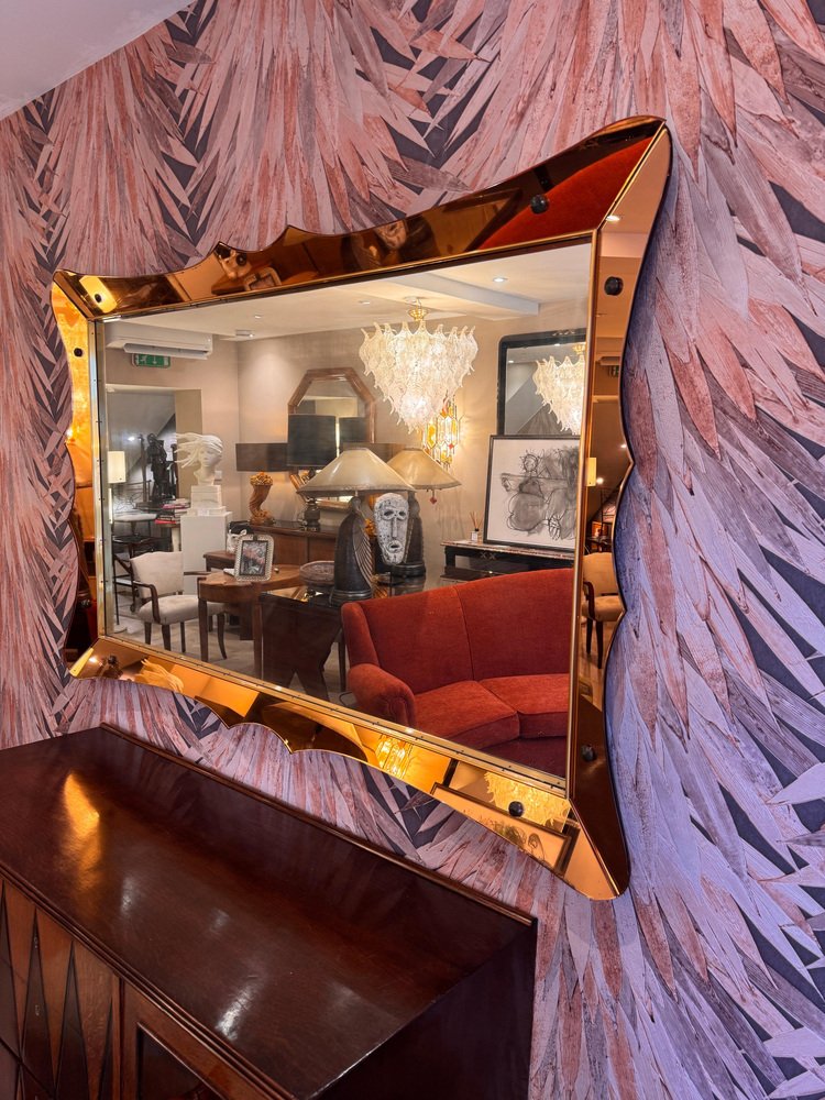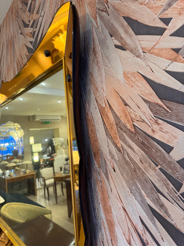 Espejo grande de vidrio dorado atribuido a Cristal Arte, años 50