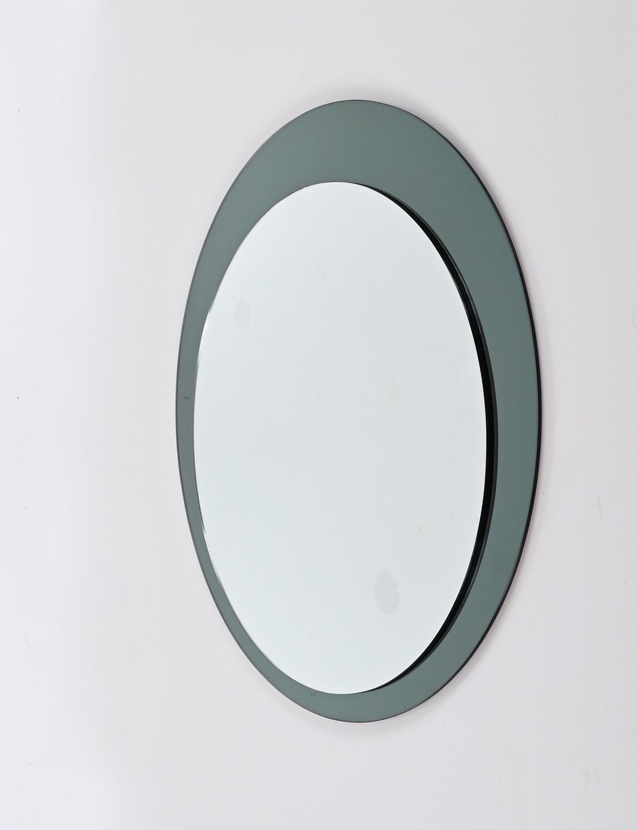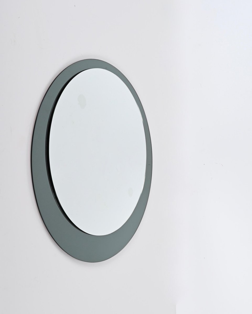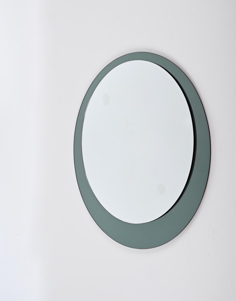 Espejo italiano Cristal Arte redondo con marco de cristal coloreado, años 60