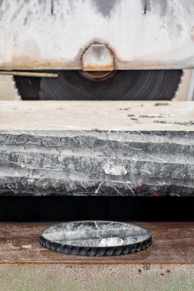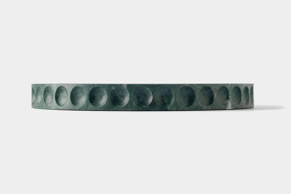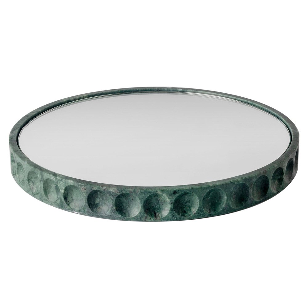 Mirage Specchio by Studio Intervallo Dimensions: D 30 x H 3.2 cm Materials: green Guatemala marble. Available in other stones. The Mirage collection comes from the monolithic materiality of stone. Shape and function coincide, creating an element without frills, which originates by subtracting materials. Full and empty spaces alternate each other and create dissolving shades of light thanks to the juxtaposition of decorations. It’s a container for objects full of its surroundings reflected on its surface. studiointervallo creates furniture and interior design. All its creations are painstakingly researched with a thorough use of full and empty spaces. For this reason, it could only exist between the fullness of the city of Milan and the emptiness of the countryside around it, in a place which is also ideal for meditating, as well as a stimulating anteroom to creative thinking. This unusual location’s aura successfully blends with the projects of studiointervallo, thus enriching them with nature in a final true epiphany which is the very soul of each single creation. Founded by Andrea Ghisoni, the studio pursues the perfect blending of essential lines with the brightness of the shapes and and the nobility of true craftsmanship; the overall goals would be to just make people happy.