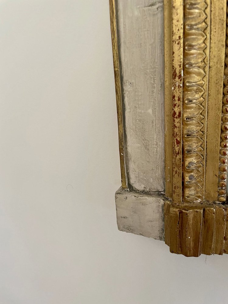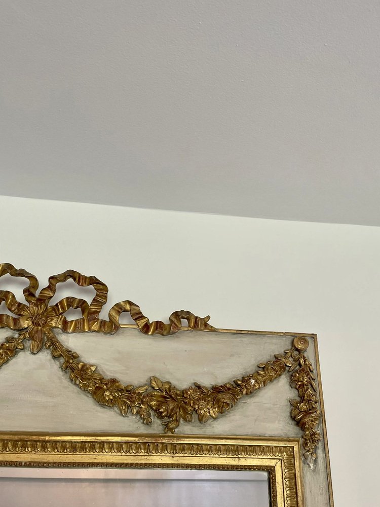 Espejo victoriano antiguo grande de madera dorada y pintado en blanco