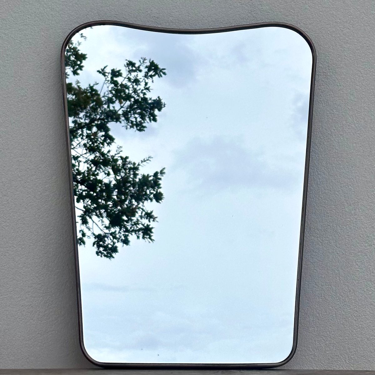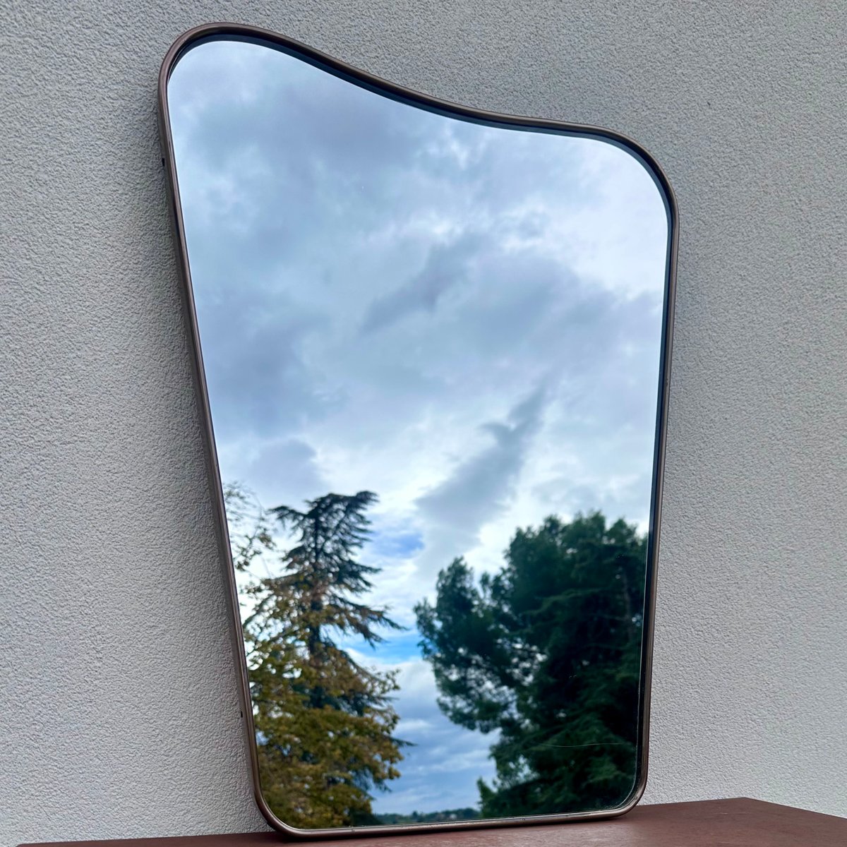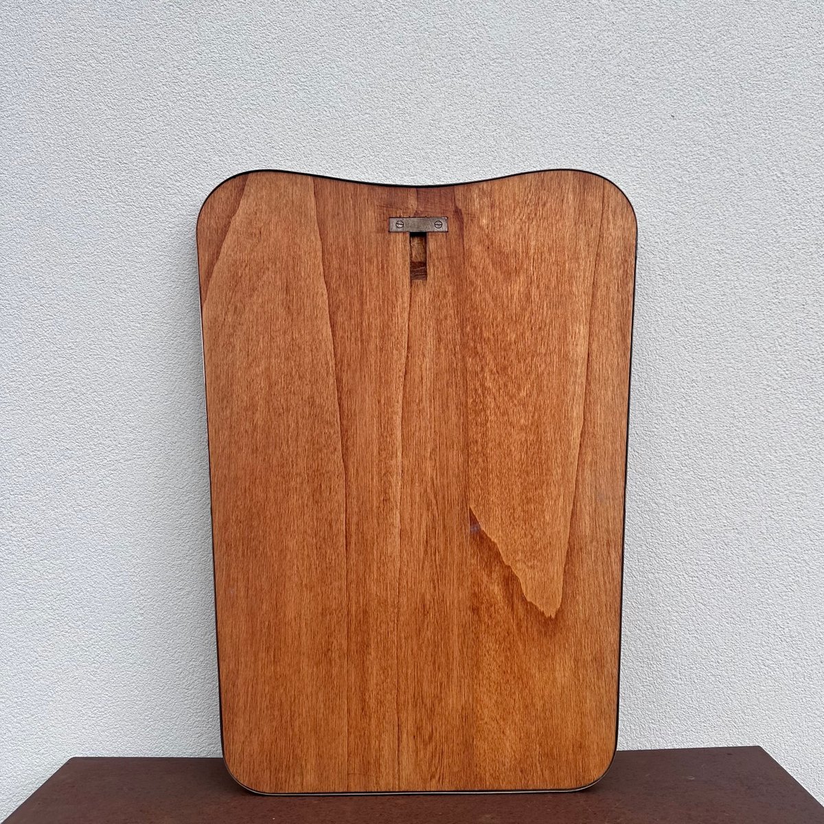 Espejo vintage de latón con vidrio y madera, años 50