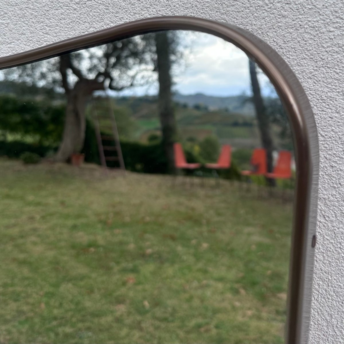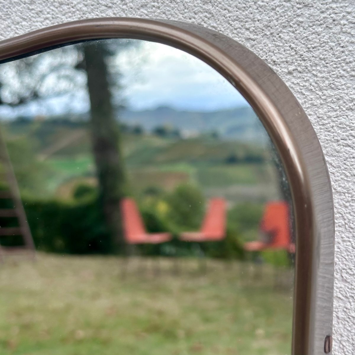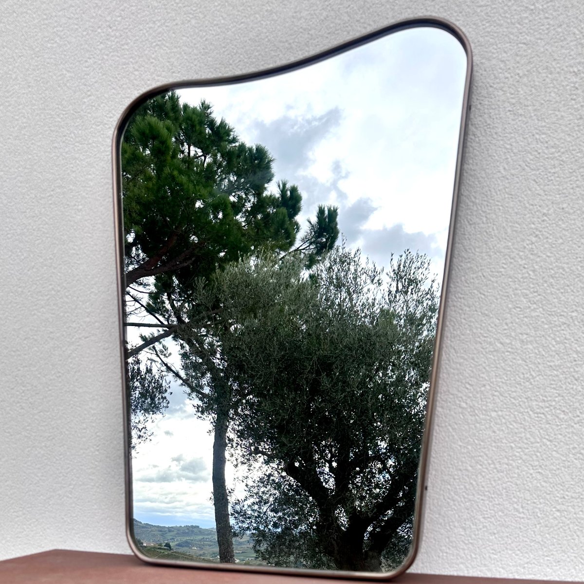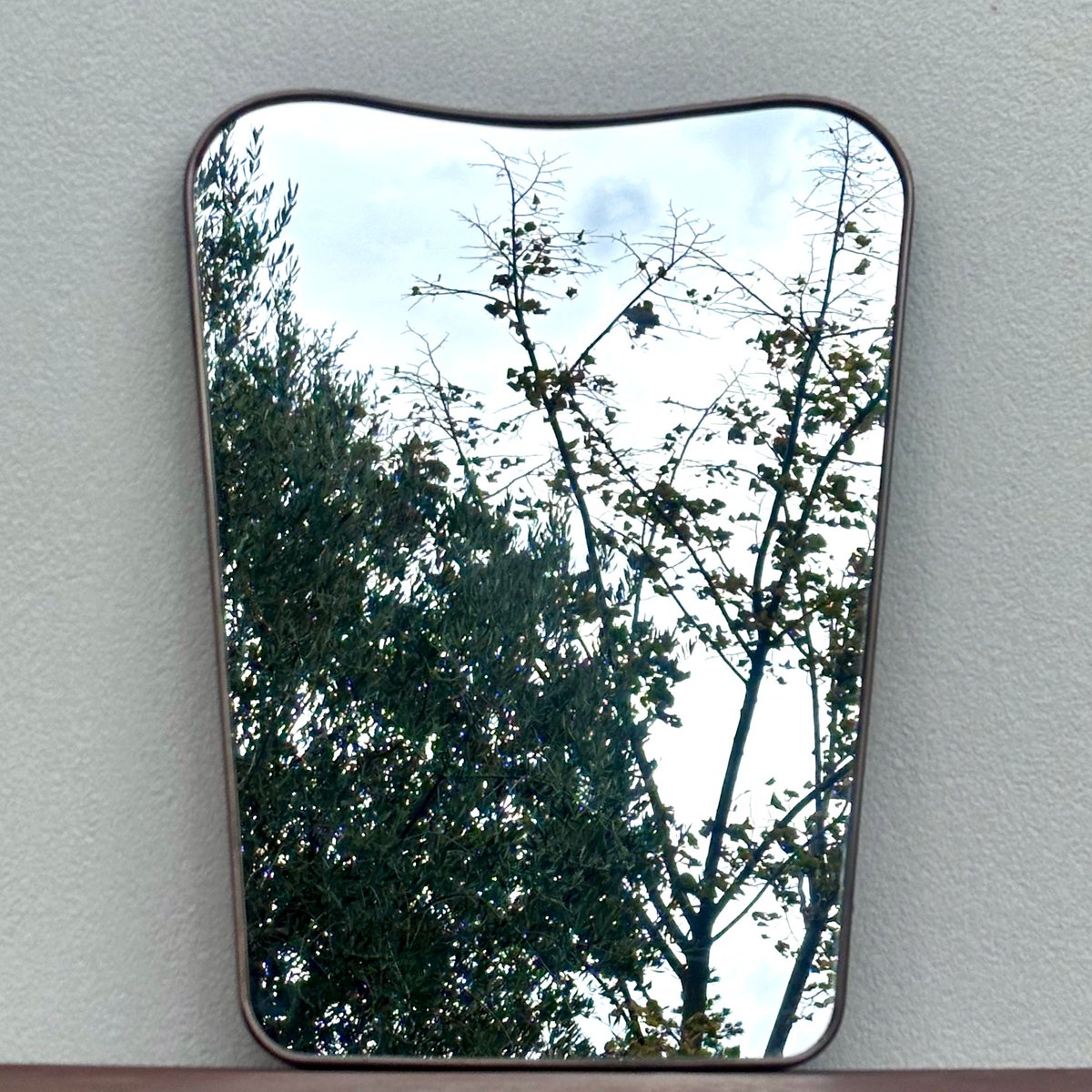 Espejo vintage de latón con vidrio y madera, años 50