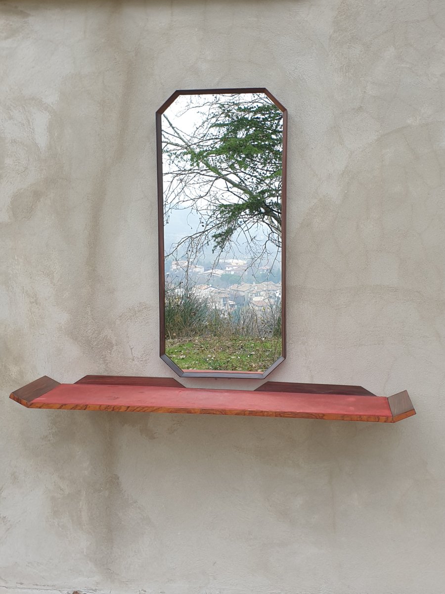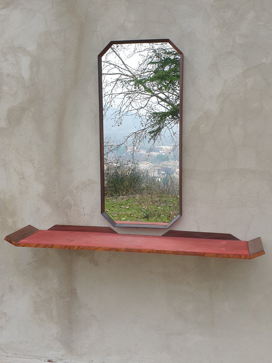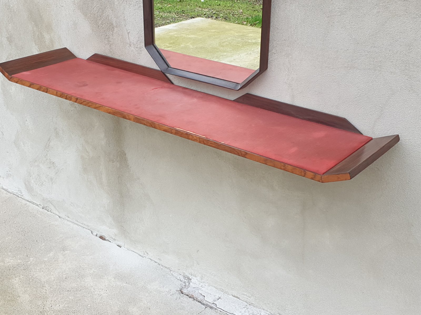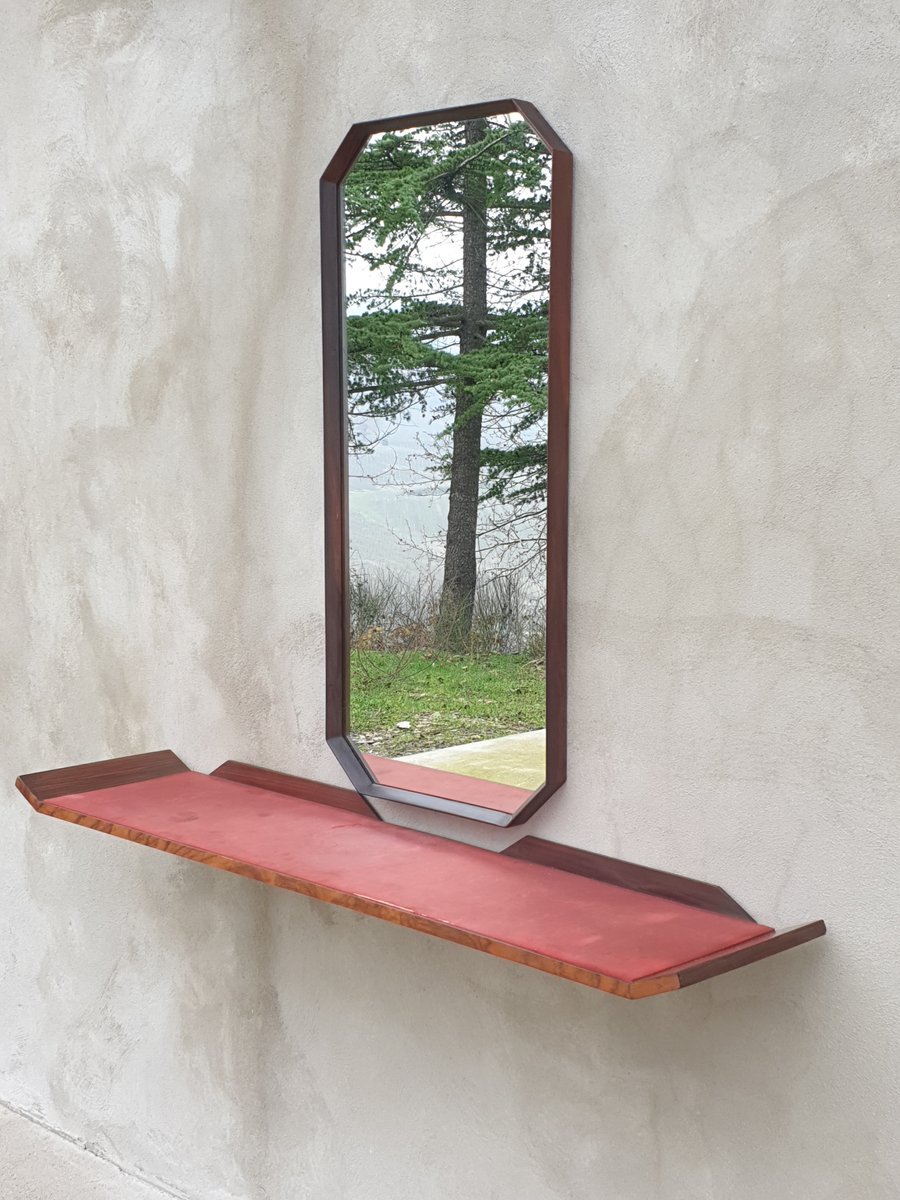 Espejo y consola de palisandro, Italia, años 60. Juego de 2