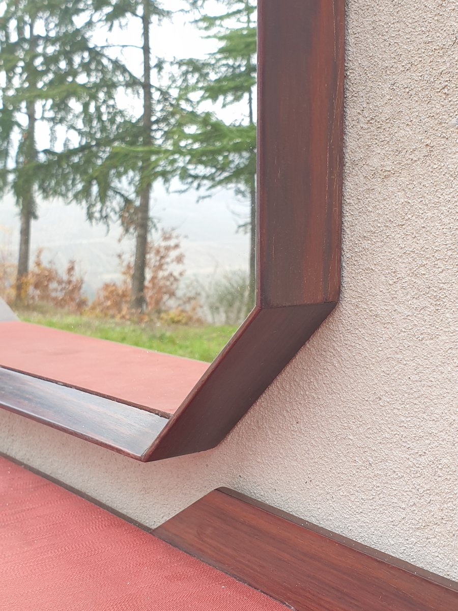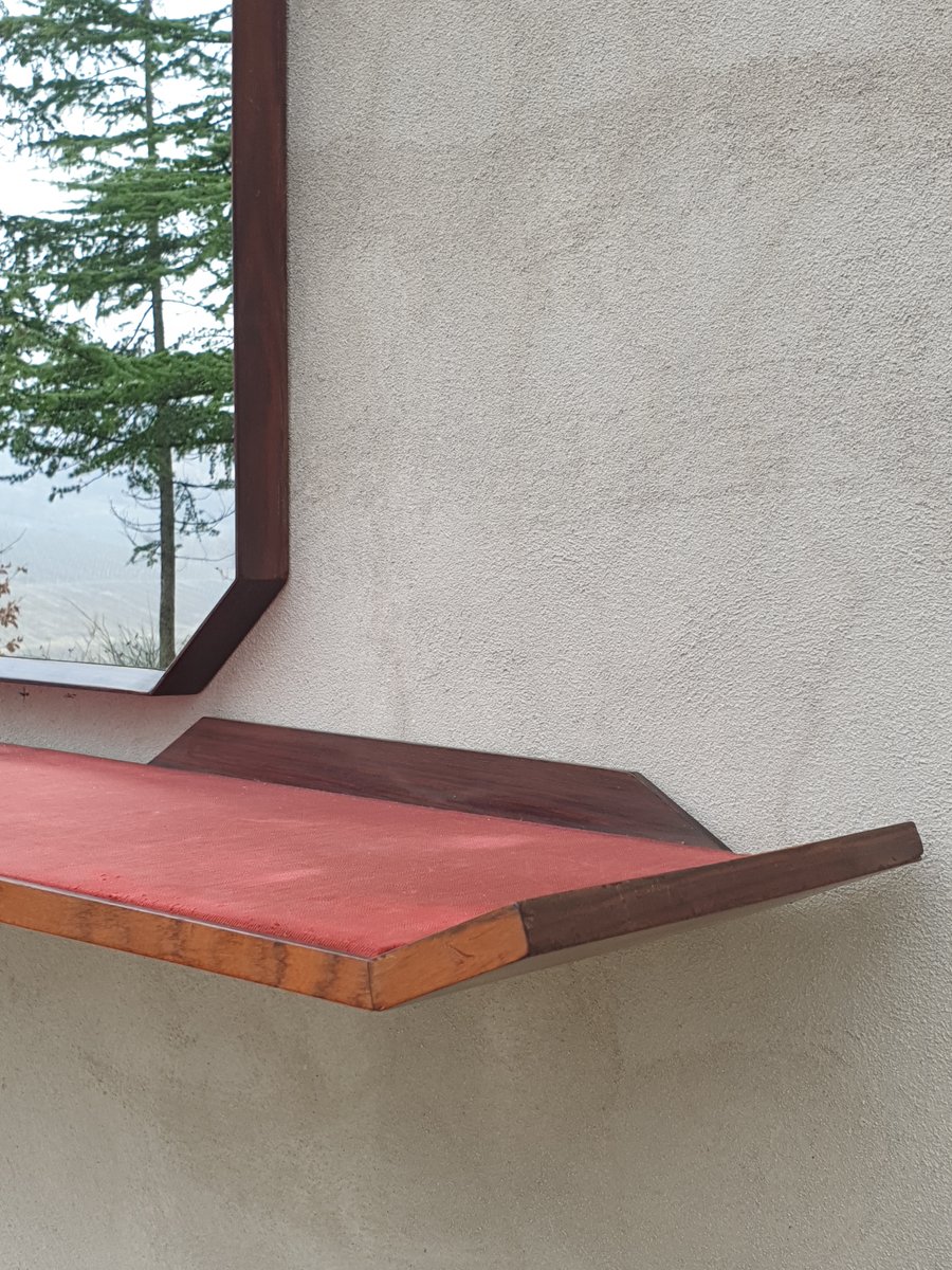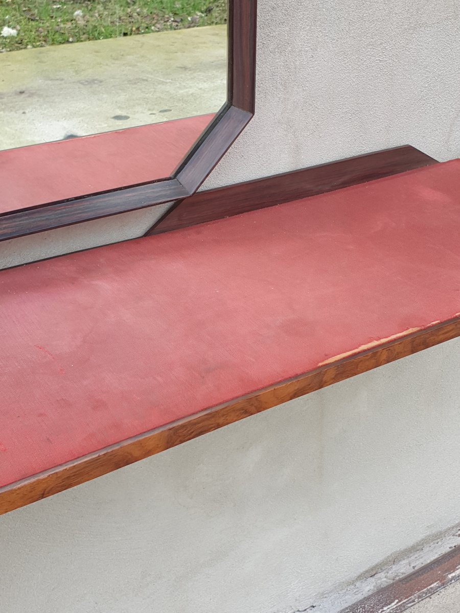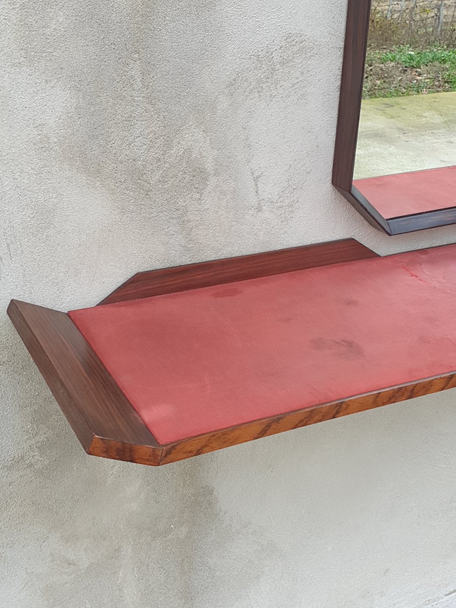 Espejo y consola de palisandro, Italia, años 60. Juego de 2