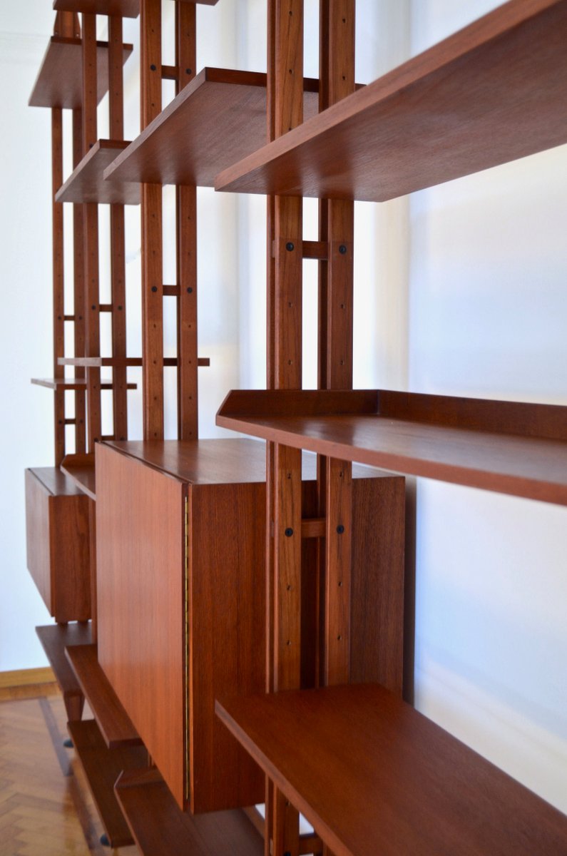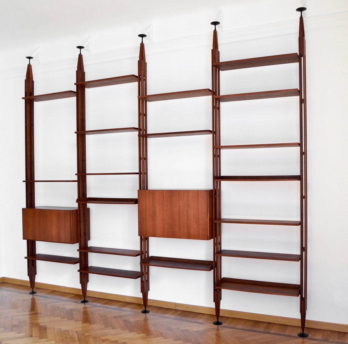 Estantería de pared de teca de Franco Albini para Poggi, años 50