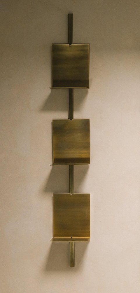 Estantería Kinko en latón de Zincutec Dimensiones: 17 cm de profundidad x 25 cm de ancho x 170 cm de alto. Materiales: latón. ZinCuTec es sinónimo de acabados metálicos excepcionales con alcance global. Procesos patentados, como la patinación, el azulado y la oxidación, confieren al latón, al cobre, al bronce y al acero inoxidable sus superficies distintivas. La soldadura precisa, el corte por láser, el canteado y el esmerilado permiten crear soluciones a medida para proyectos de arquitectura, diseño de interiores y arte. Nuestro trabajo es minimalista en su forma, rico en carácter y diseñado para espacios que perduran. Cada detalle está meticulosamente elaborado a mano, combinado con tecnología de vanguardia. Ya sea una pieza única o un proyecto a gran escala, creamos objetos que unen la estética y la funcionalidad en un todo atemporal. La visión del diseño se fusiona con la precisión para crear proyectos que no solo son bellos, sino que también encarnan la permanencia y la pasión. Cada pieza es una declaración de nuestros valores.
