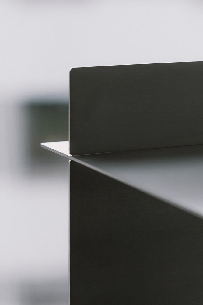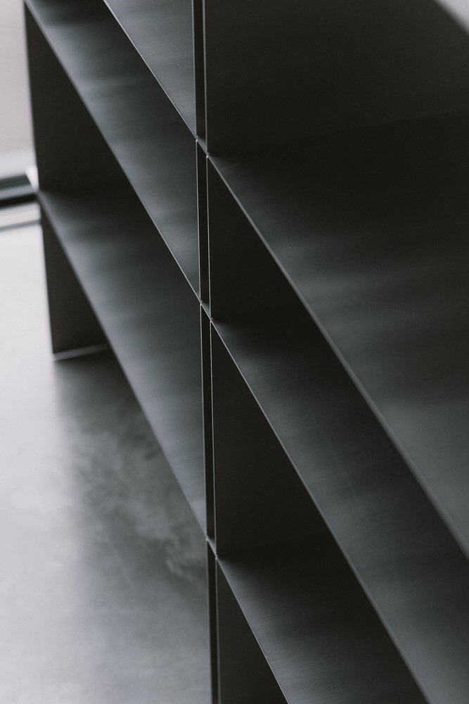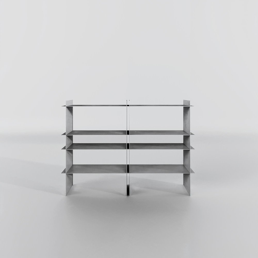 Taisho Stainless Steel Shelf by Zincutec Dimensions: W 140 x D 32 x H 100 cm Materials: Stainless Steel This shelf, crafted from brushed stainless steel, combines minimalist design with refined functionality. Clean lines and planar forms create a modern aesthetic that balances strength and simplicity. The open levels allow for flexible use; as a bookshelf, display for decorative objects, or practical storage solution. Handcrafted with precision, the piece impresses with its sturdy construction, easy-care surface, and subtle ability to reflect light. A design that offers both visual harmony and everyday utility. ZinCuTec aims to be a collective of artists who push metals and their surfaces to their limits. Specializing in the working of brass and copper, every person strives to find like-minded individuals who share the same passion. We endeavor to infuse this special feeling into our craft. As a community, anything is possible. We encourage our members to grow both personally and professionally and to expand our collective skills. At ZinCuTec, we are committed to creating a culture where everyone can thrive. ZinCuTec refines metal surfaces for architecture, interior design, and high-quality object construction. The focus is on specialized chemical processes such as patination, browning (or blackening), and oxidation, which are used to deliberately alter the color, texture, and feel of metals like brass, copper, or bronze. Controlled reaction processes create durable, characterful surfaces that vary in color and structure—from subtle nuances to expressive patinas. Each workpiece is crafted to the highest standards of material quality, dimensional accuracy, and surface aesthetics. Whether it’s a unique patina, a custom-made metal structure, or a fine polished finish, ZinCuTec combines craftsmanship, technical precision, and design understanding to create metal surfaces that are both visually and functionally enduring.