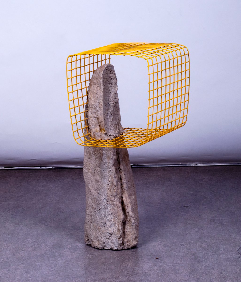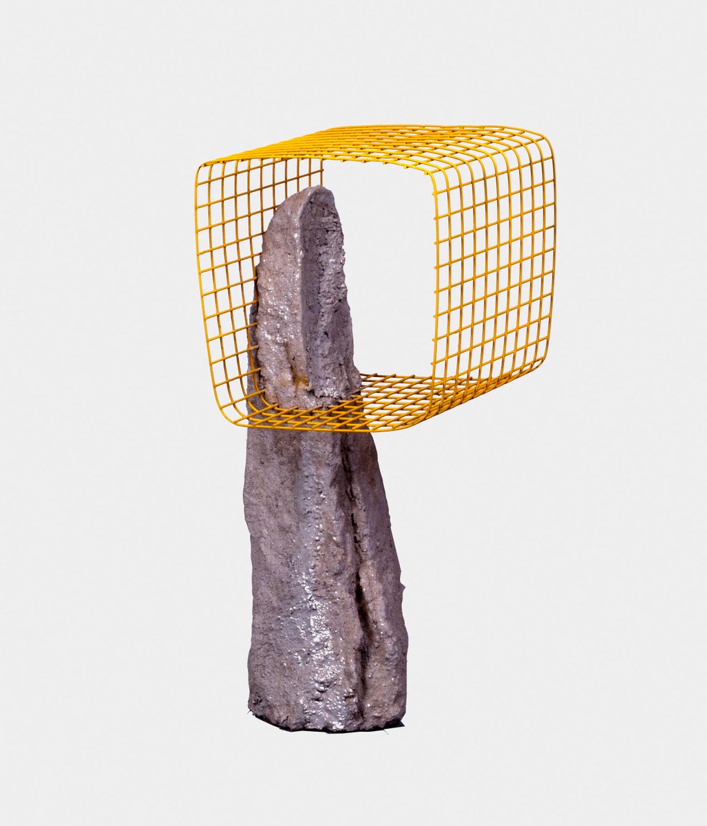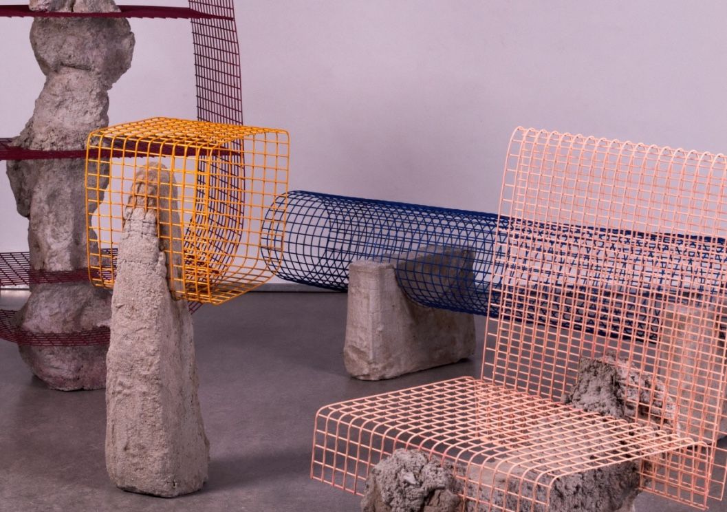 Reinforced concrete is a technique where concrete is cast around a metal grid. This connection gave humans the ability to work on an impressive big scale. It changed the world of architecture and thereby our surroundings. One element of this material is always hidden: Up until now, the steel reinforcement was hidden inside with one purpose only: to give the concrete strength. After experimentation, Willem van Hooff found a way to turn these roles inside out and bring the metal grid to the surface, giving it a complementary aesthetic, and a completely new function. The rough urban materials are now brought into our homes. Together the Elements of Construction pieces of furniture represent a city landscape, where Van Hooff's inspiration for this project started. Bringing the materials back to where they normally belong.