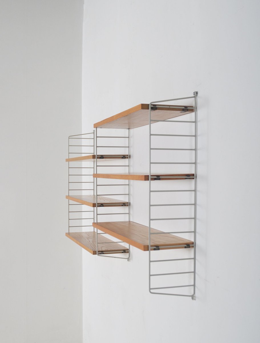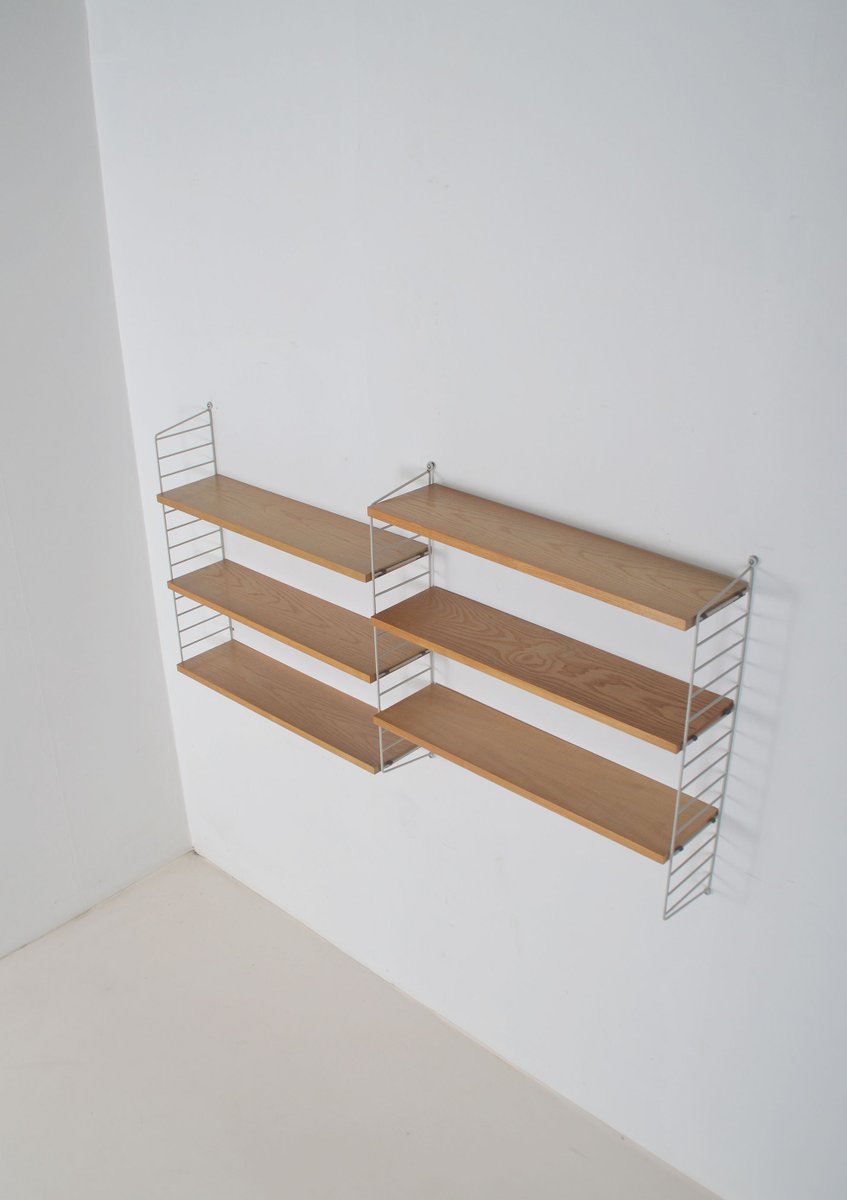Estantes suecos de pared doble de Kasja & Nils Nisse Strinning, años 50. Juego de 9