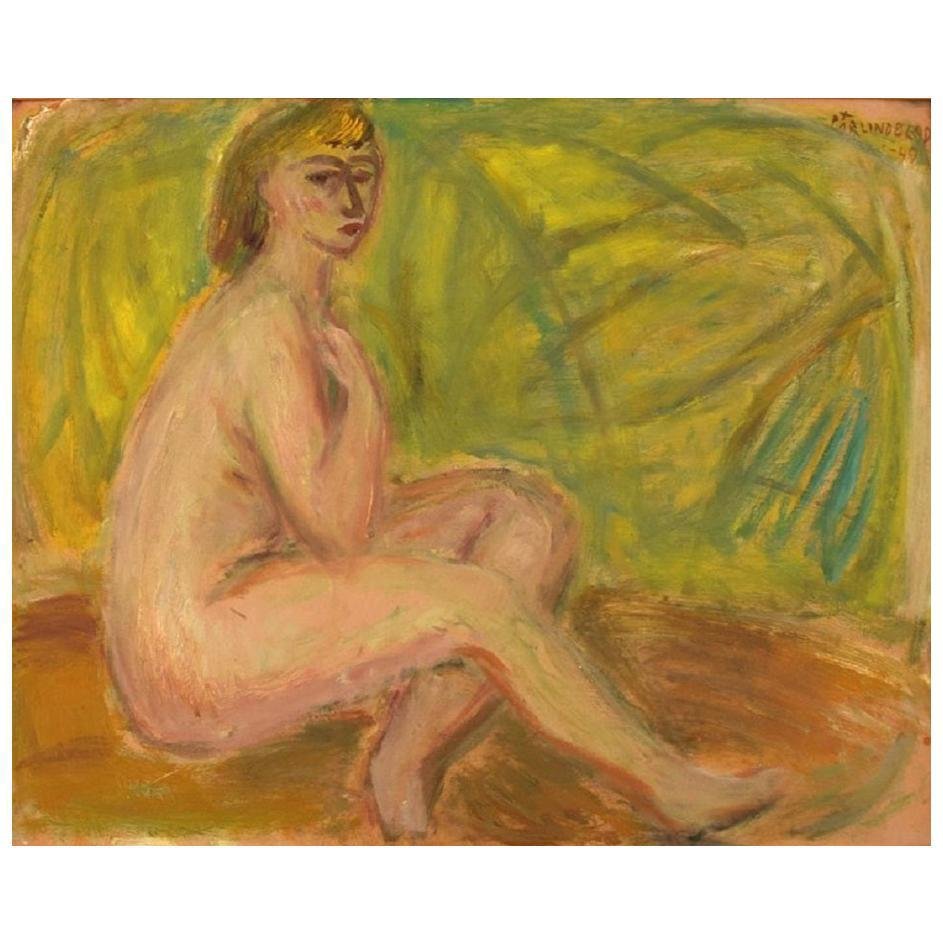 Estudio sueco modelo Nude Oil on Board de Pär Lindblad, 1949