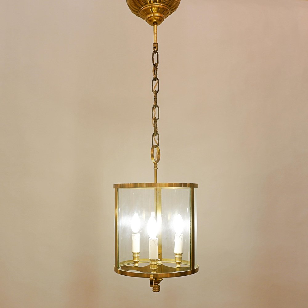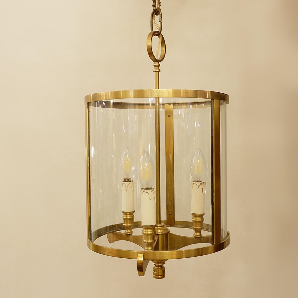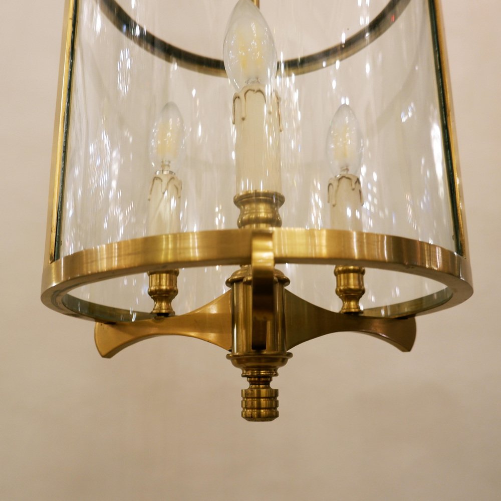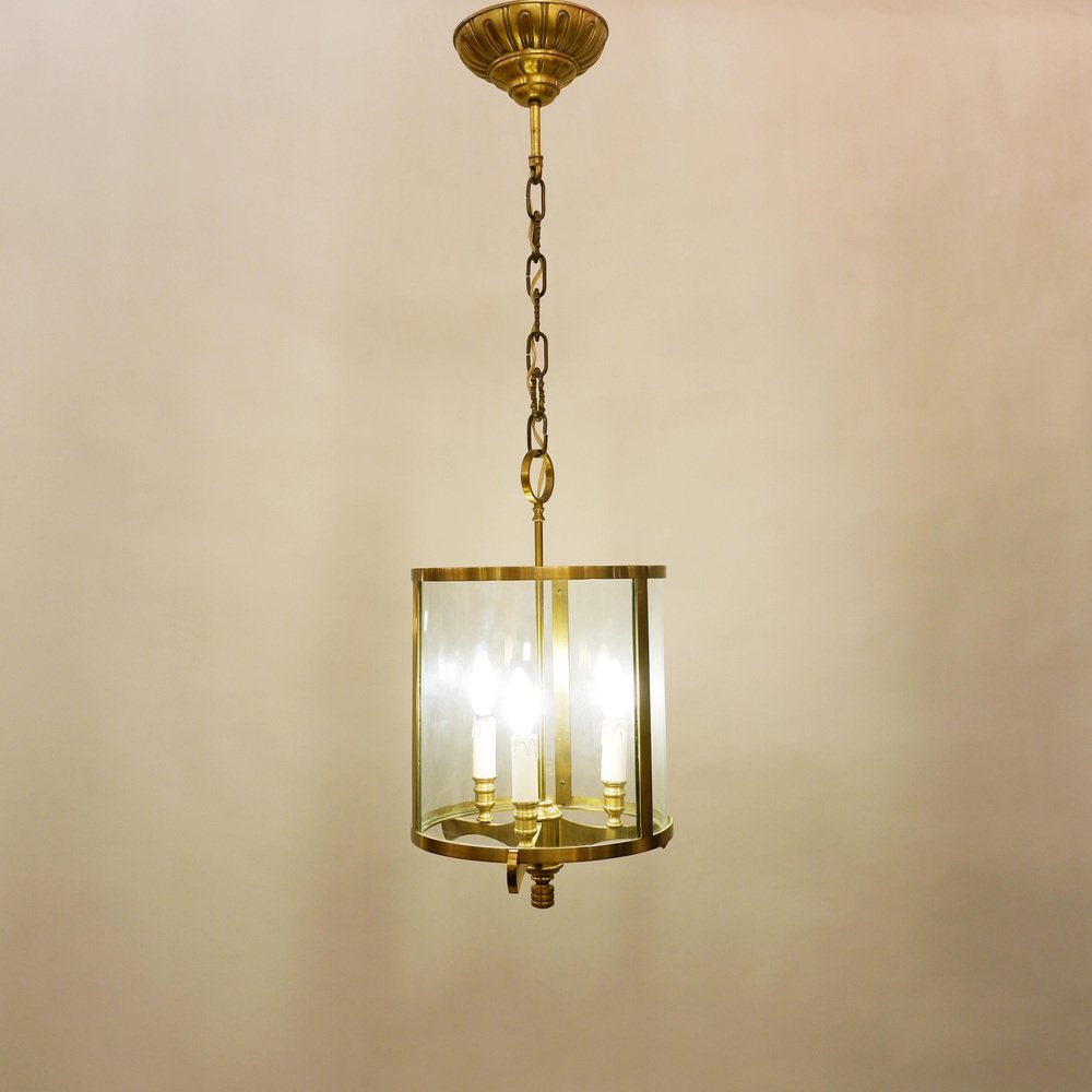 Farol de recibidor de bronce y vidrio con cuatro luces
