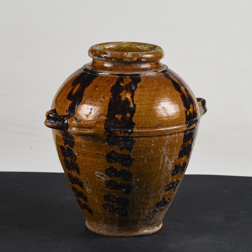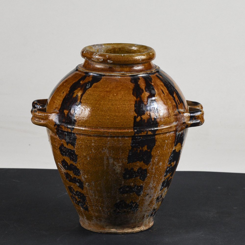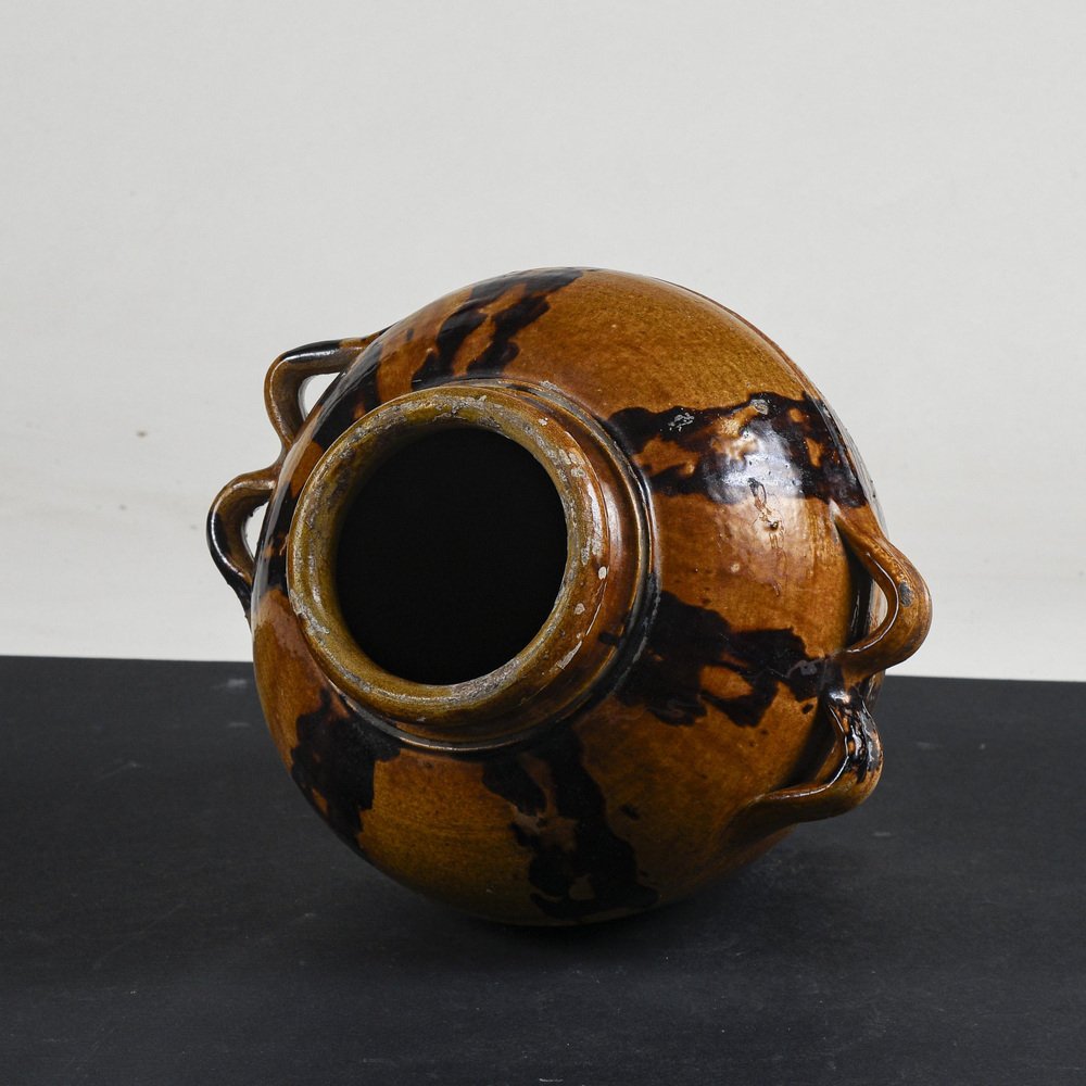 Frasco de terracota esmaltada con asas dobles, década de 1900