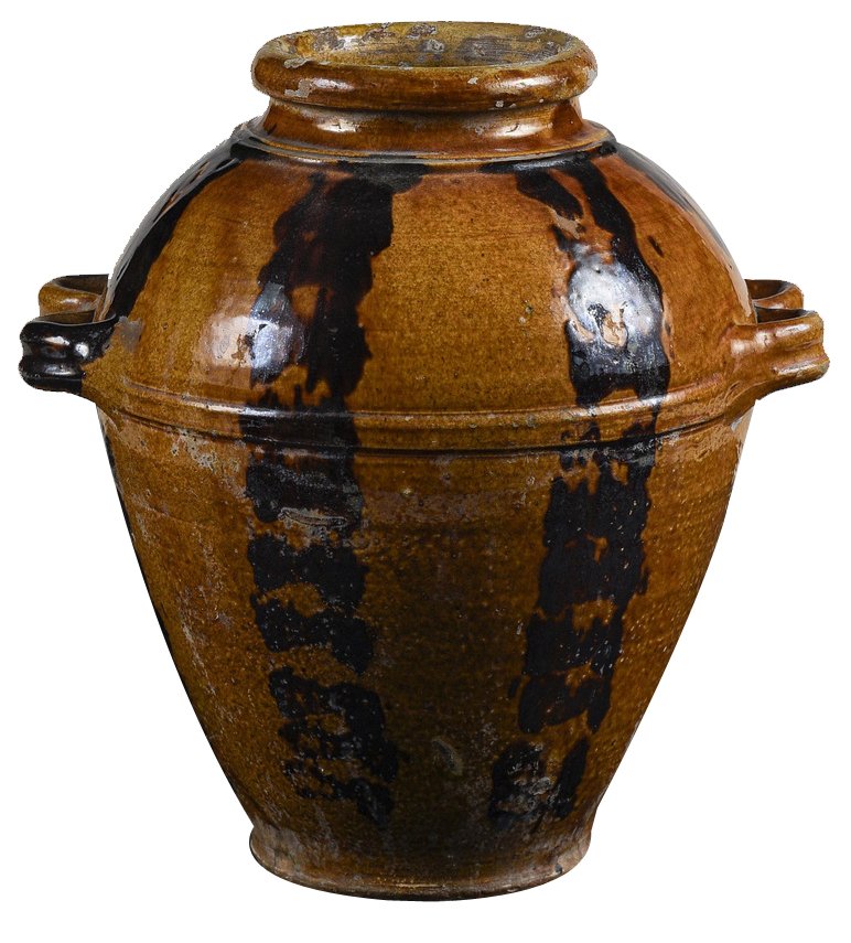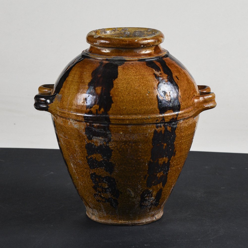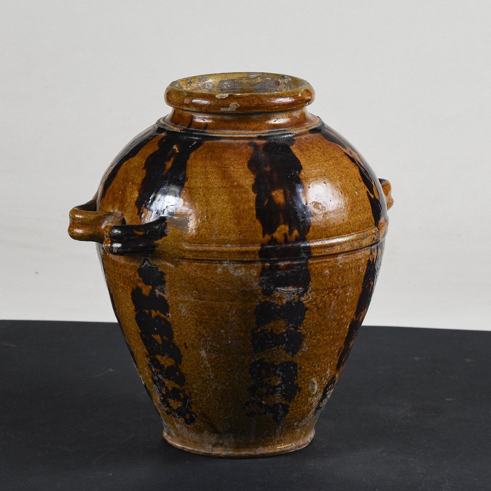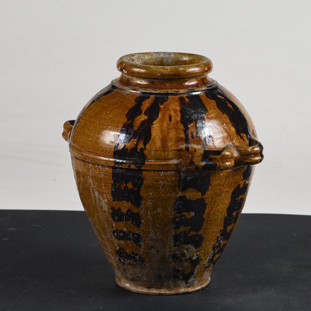 Frasco de terracota esmaltada con asas dobles, década de 1900