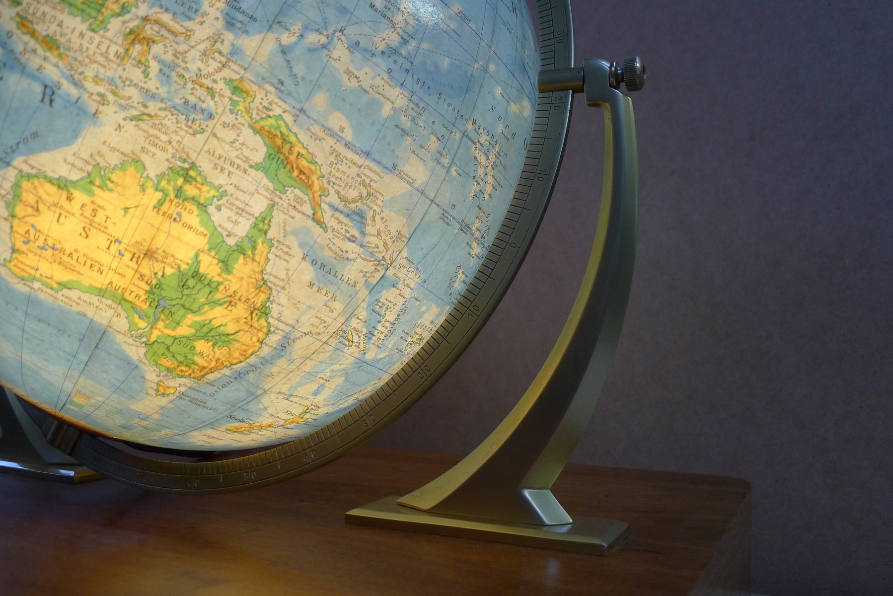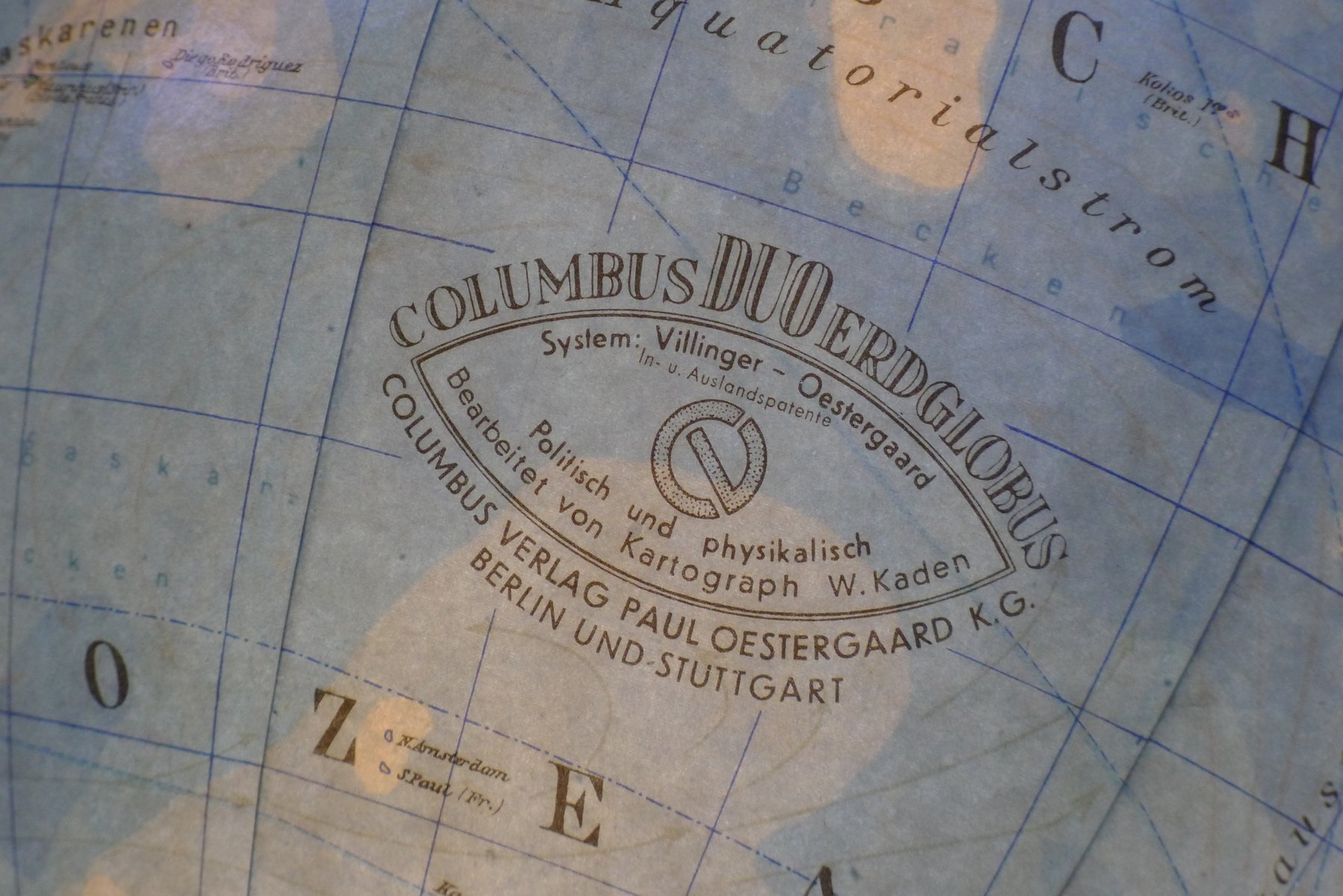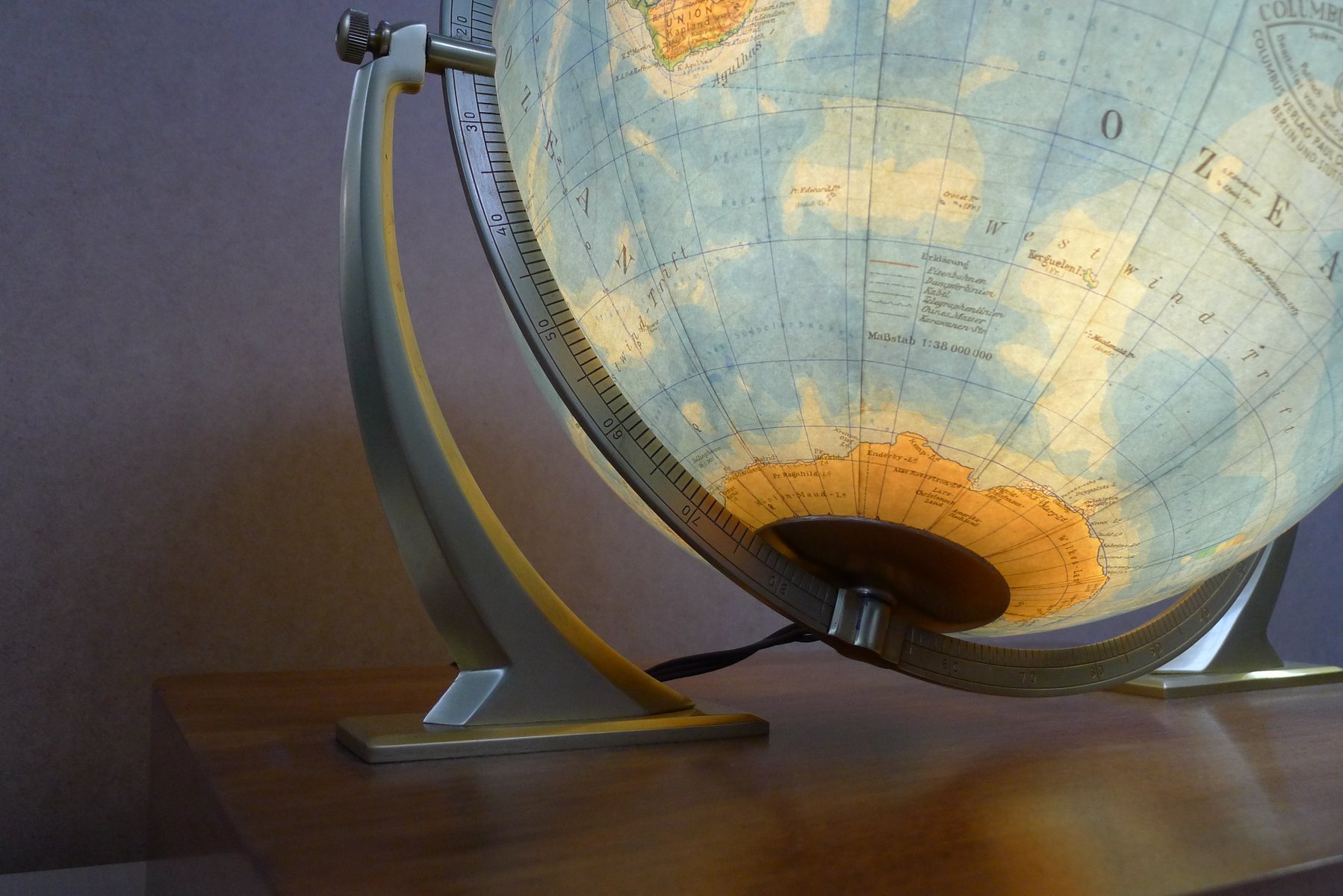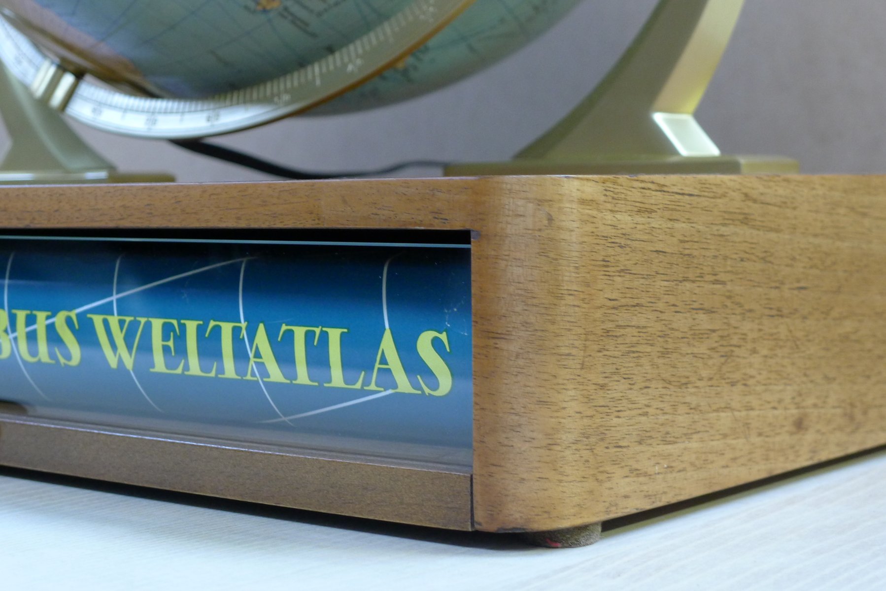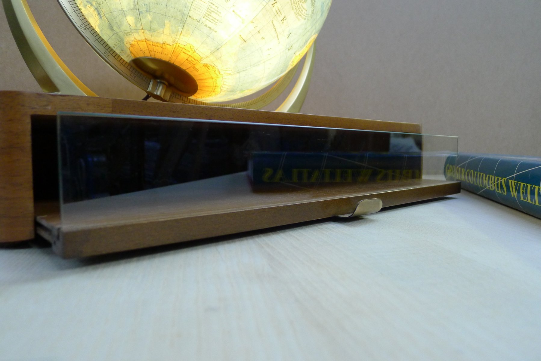 Globo terráqueo iluminado con suspensión Semi-Gimbal y cajón atlas grande de Columbus Oestergaard, años 60