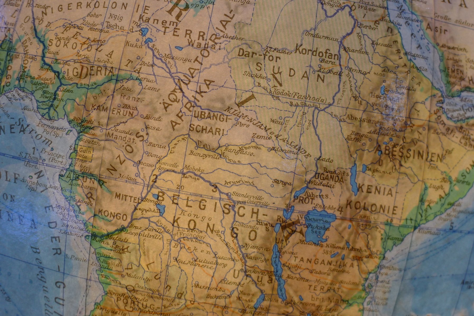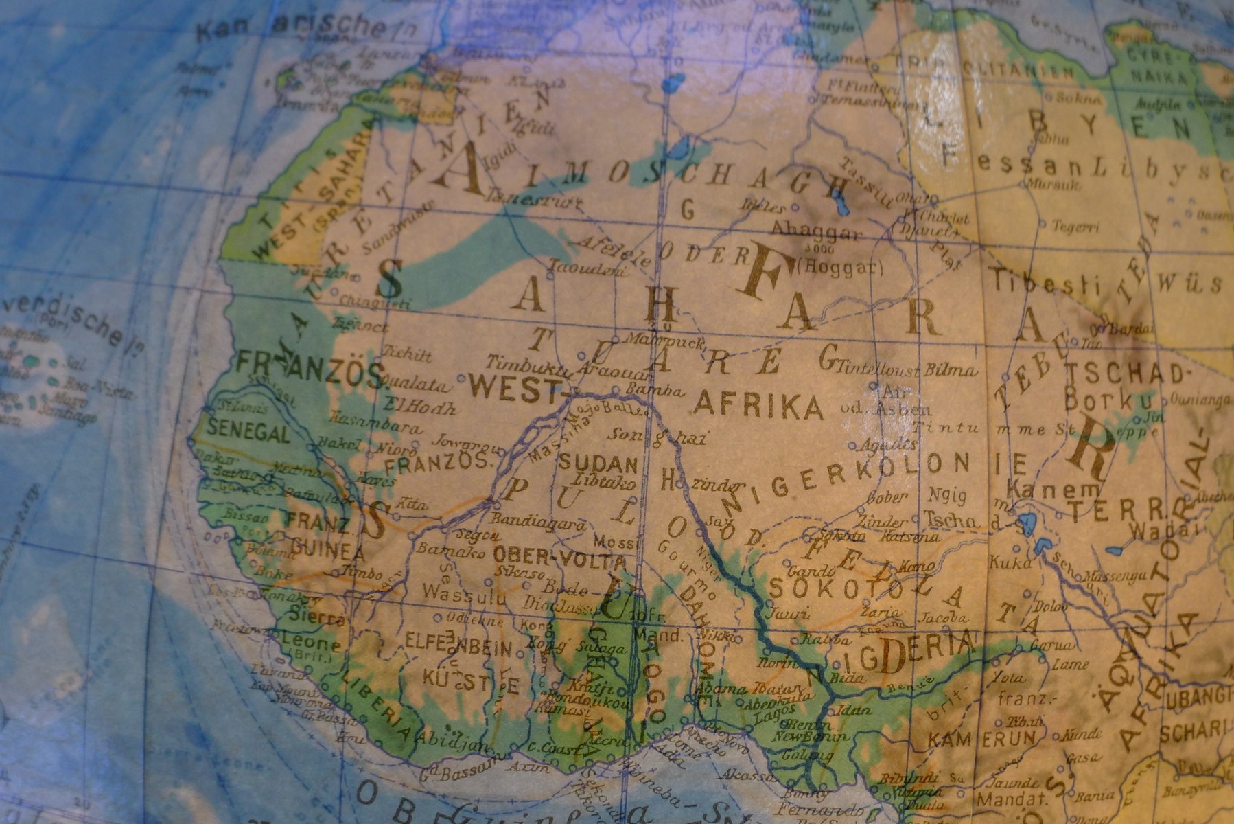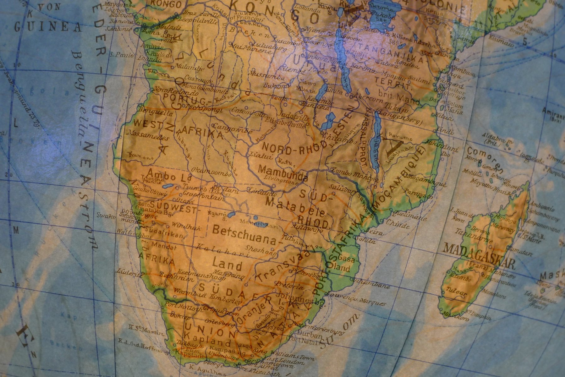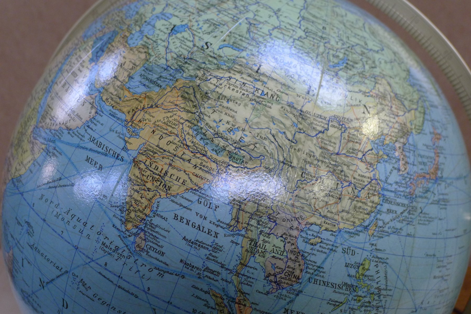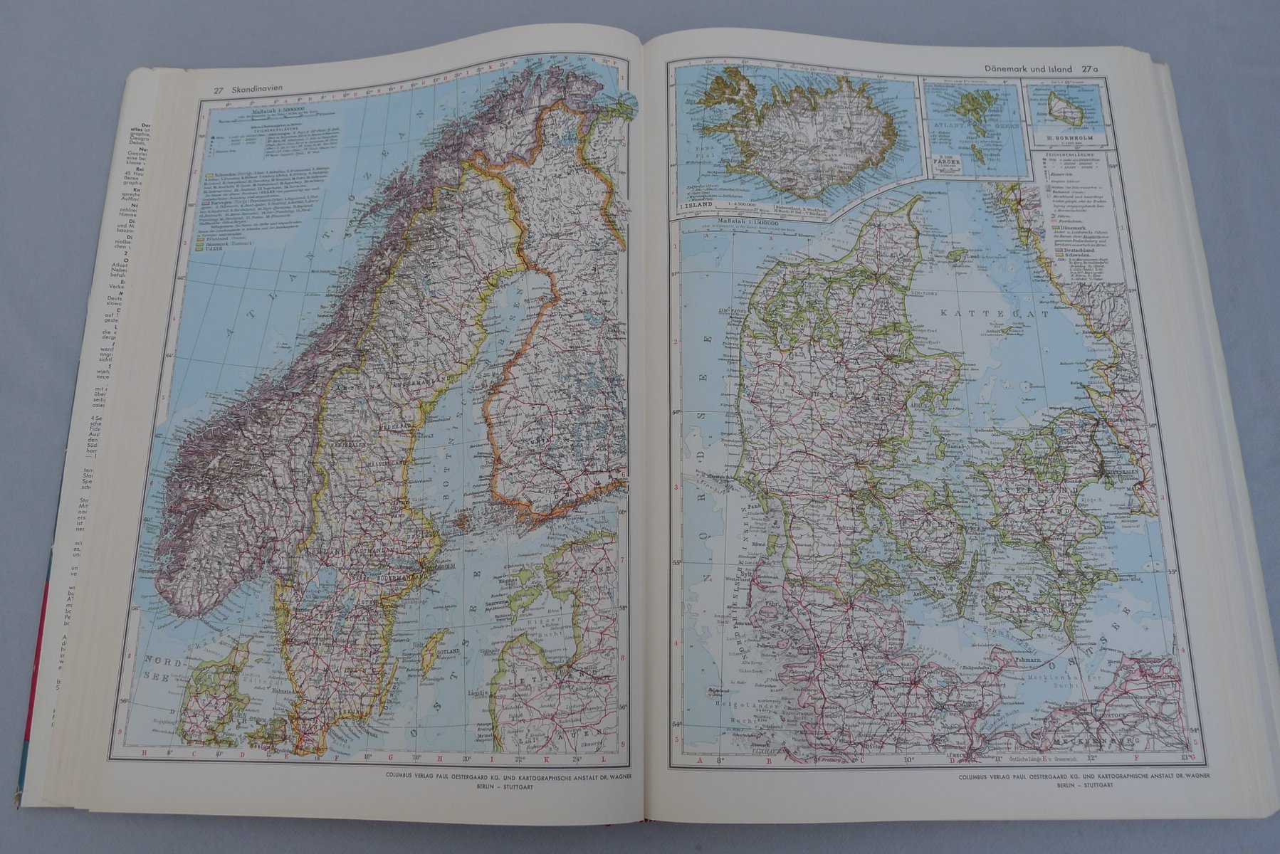 Globo terráqueo iluminado con suspensión Semi-Gimbal y cajón atlas grande de Columbus Oestergaard, años 60